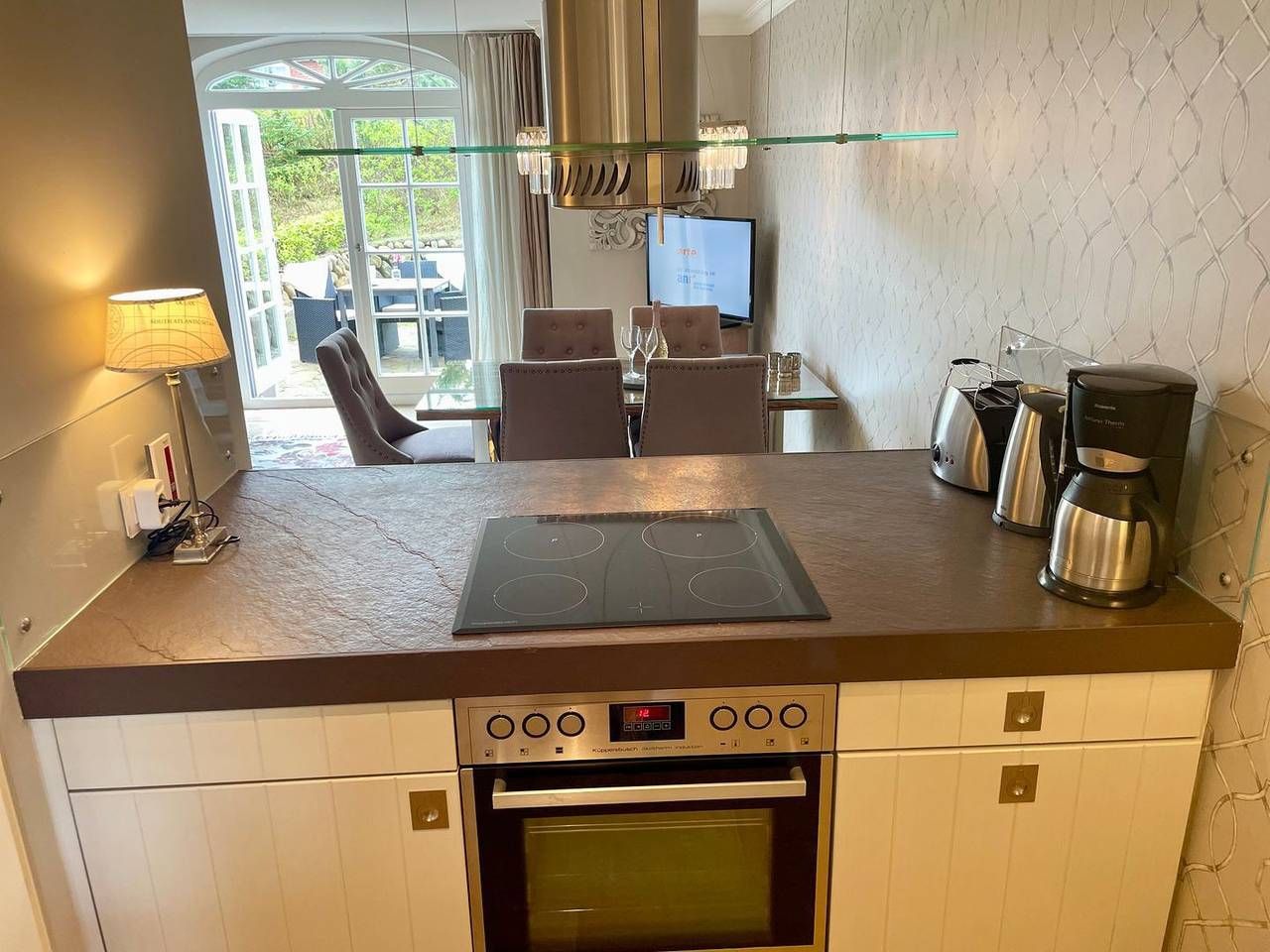Freuen Sie sich bereits auf ein modernes, stilvolles und liebevoll eingerichtetes hochwertiges Anwesen in bester Lage Rantums! Lassen Sie die Seele in einer der ruhigsten Ecken Sylts baumeln und freuen sich auf einen Urlaub in einer hochwertig eingerichteten Doppelhaushälfte unter Reet. Das "Landhaus Seaside III" gehört zu der Rantumer Appartementanlage Seaside, nahe dem Hotel Düne. 107qm auf 3 Etagen für bis zu 6 Personen lassen keine Wünsche offen. Das charmante Haus liegt nicht unweit unzähliger Einkaufsmöglichkeiten in Rantum. Trotz der sehr ruhigen Lage finden Sie eine Bäckerei und Restaurants in der unmittelbaren Umgebung. Flanieren Sie entlang der Hörnumer Straße oder erkunden Sie die Insel mit einem ausgeliehenen Fahrrad und lassen sich von der facettenreichen Umgebung der Dünen und dem grenznahen Wasser verzaubern. Lohnenswert sind auch lange Abendspaziergänge an der Strandpromenade, um die Sorgen des Alltags hinter sich zu lassen und einfach nur zu genießen. Die luxuriös eingerichtete Doppelhaushälfte wurde in 2024 renoviert. Über 3 Etagen finden Sie auf 107qm liebevoll eingerichtete Räume, die zum Entspannen einladen. Das groß geschnittene Wohnzimmer mit Eckcouch lädt mit dem Kamin bei entspannten Abendstunden zum relaxen ein. Am großen Esstisch lässt es sich genüsslich speisen. Mit drei Schlafzimmern (OG: Doppelbett 180x210, UG: Doppelbett 160x200, sowie UG: 2 Einzelbetten 80x200) ist das Haus perfekt für die ganze Familie. Zwei Duschbäder mit jeweils separatem WC, sowie einem zusätzlichen Gäste WC im Erdgeschoss runden dieses Angebot ab. Lassen Sie den Tag nach einem langen Strandspaziergang in der hauseigenen Sauna ausklingen oder genießen Sie einen Sundowner auf der eigenen Terrasse. Waschmaschine und Trockner stehen Ihnen zur Gemeinschaftsnutzung mit den anderen Hausteilen zur Verfügung. Ein gut erzogener Hund ist in diesem Objekt ebenfalls ein gern gesehener Gast (Zusatzkosten). Für weitere Fragen, steht Ihnen sehr gerne die Vermietung "Appartements Eberhardt" zur Verfügung.
