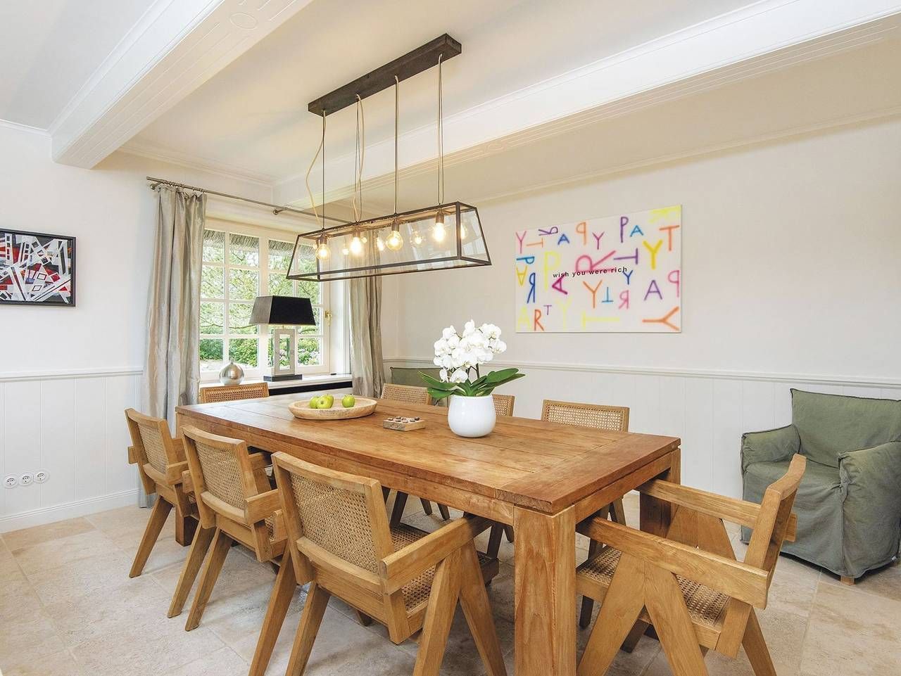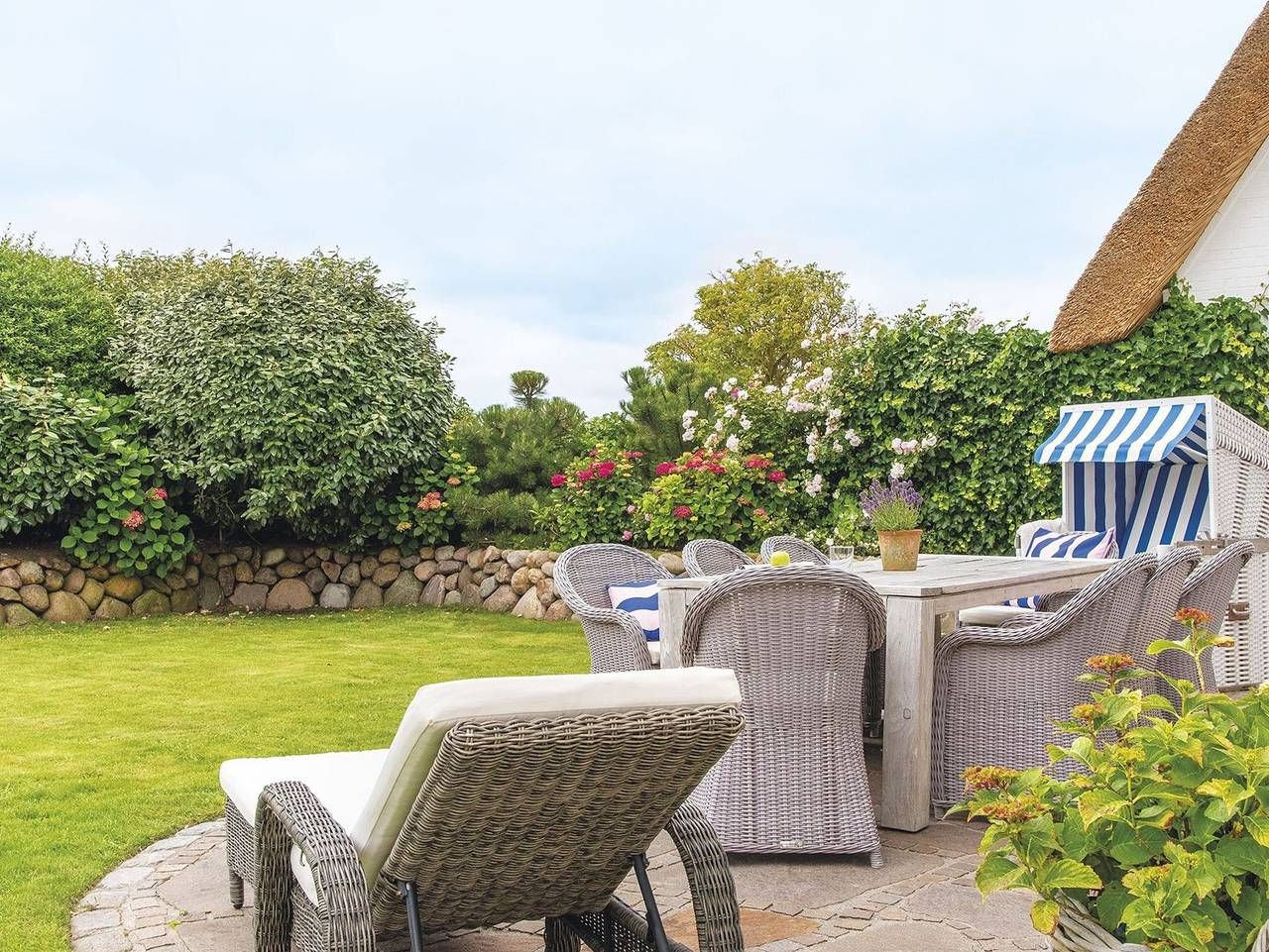 Schlichte Eleganz trifft Wohnlichkeit - hier erwartet Sie von allem nur das Beste. Durch das luftige Entrée erreichen Sie den lichtdurchfluteten und überaus großzügigen Wohn- und Essbereich. Bodentiefe Fensterfronten mit gleich zwei Terrassentüren ermöglichen den grandiosen Blick in den umzäunten Garten Richtung Süden über die Felder bis zum Kampener Leuchtturm Langer Christian. Gleich zwei Tafeln für sechs bzw acht Personen, eine davon in der offenen voll ausgestatteten Küche, laden zu geselligen Runden ein. Außerdem sorgen ein Kachelofen und elegante Sofas nebst großem TV für den Gemütlichkeitsfaktor. Über einen kleinen Flur gelangen Sie zu den zwei schönen Doppelschlafzimmern im Erdgeschoss - eine Seltenheit in Kampen! Eines mit Schreibtisch und Terrassenaustritt nach Westen, beide mit geräumigen Einbauschränken, natürlich nebst ebenerdigem Duschbad. Im Obergeschoss fällt die Wahl schwer zwischen den zwei großzügigen Doppelschlafzimmern jeweils mit begehbarem Kleiderschrank und DuschWannenbad en suite, eines mit atemberaubenden Blick vorbei am Leuchtturm bis nach Wenningstedt, das andere erfreut das Auge mit den beschaulichen Reetdächern Kampens. Im Untergeschoss wird Wellness groß geschrieben. Eine Whirlwanne über Eck, eine gemauerte Dusche und die Sauna für bis zu Vier, sowie zwei Relaxliegen samt TV lassen keine Wünsche offen. Zudem befinden sich auf dieser Etage noch je ein Doppel- und ein Einzelschlafzimmer, sowie ein Duschbad. Ein großzügiges Quartier für Familien und alle mit Sinn für Schönes. Die kleine Gemeinde Kampen auf der nordfriesischen Insel Sylt gilt als das bekannteste und schönste Dorf in Deutschland. Ein besonderer Anziehungspunkt sind die zahlreichen Gaststätten, Bistros und Restaurants, in denen die Sylter Spezialitäten vom einfachen Gericht bis zur Haute Cuisine angeboten werden. Für das Nachtleben ist ebenfalls gesorgt. In den Bars tobt nachts das Leben und macht einen Sylturlaub zu einem Erlebnis. Viele Geschäfte laden zu ausgedehnten Einkaufsbummeln ein, für den notwendigen Luxus sorgen Juweliere und Boutiquen. Auch der Sport kommt nicht zu kurz. Für Golfer steht ein großer Golfplatz bereit. Nordic Walking, Jogging und Reiten am Strand oder Surfen im Meer sind bei Touristen besonders beliebt. Und nicht zu vergessen Natur und Meer so oft und viel Sie mögen.' Alle Verbrauchskosten sind bereits inklusive. Eine Kaution wird nicht erhoben.