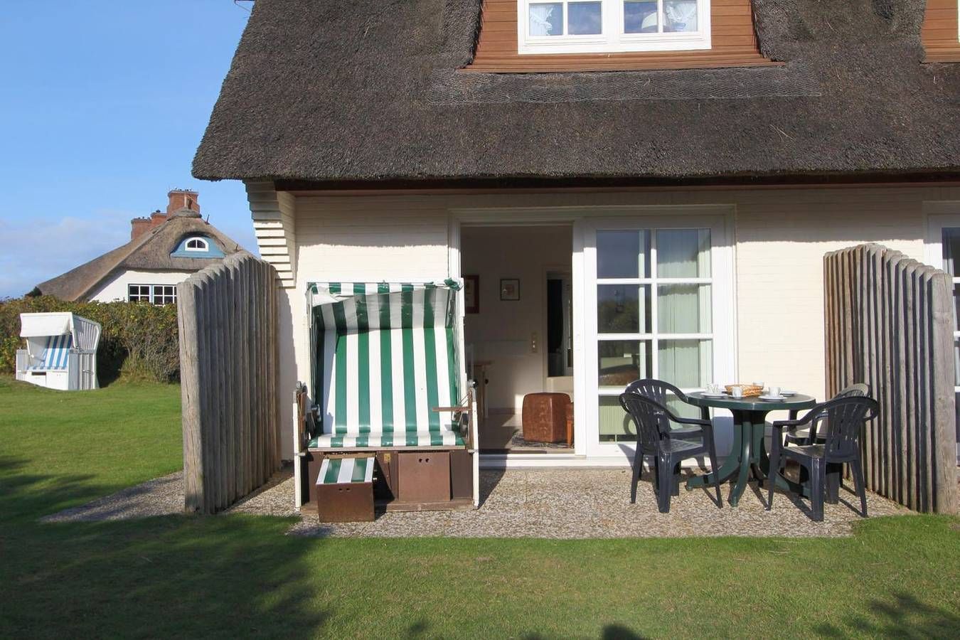 Das reetgedeckte Haus „Dünenblick II“ bietet tolle Ferienappartements im Erd- und Untergeschoss oder Ober- und Dachgeschoss in absolut strandnaher Lage! Hier weht Ihnen bereits vor der Haustür die Meeresbrise um die Nase. Direkt hinter den Dünen gelegen macht das Haus seinem Namen alle Ehre und ist ebenfalls dicht an der modernen Kurpromenade von Wenningstedt gelegen, wo Sie Einkaufsmöglichkeiten und Restaurants finden. Zu jeder Wohnung gehört ein Pkw-Stellplatz. Wohnbereich Im Wohnbereich im Erdgeschoss können Sie auf den bequemen Ledersofas ideal entspannen. Genießen Sie den herrlichen Ausblick auf die Terrasse und das von Heckenrosen umsäumte Grundstück. Essen & Kochen Die Küche ist vom Wohnbereich separiert und bietet die Möglichkeit, sich gut selbst zu versorgen. Der Essbereich grenzt direkt an den Wohnraum an. Schlafen Sie nächtigen in einem komfortablen Doppelbett im Erdgeschoss. Des Weiteren steht im Untergeschoss ein Einzelbett plus Schlafcouch zur Verfügung. Bad Ebenfalls im Untergeschoss finden Sie das Duschbad mit WC. Auf der gleichen Ebene befindet sich ein separates Gäste-WC. Außerdem befinden sich eine Münz-Waschmaschine und ein Münz-Trockner im Mieterkeller. Balkon/Terrasse Genießen Sie auf der Süd-Terrasse den ganzen Tag die Sonne. Hier können Sie mit einem ausgiebigen Frühstück unter freiem Himmel optimal in einen neuen Urlaubstag auf Sylt starten.