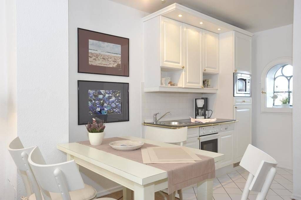 LIEBEVOLL EINGERICHTETE 2-ZIMMER-FERIENWOHNUNG UNTER REET IM "ALTSTADTTOR IM FRIESENPARK" Diese charmante 2-Zimmer-Ferienwohnung befindet sich im Haus "Altstadttor im Friesenpark" und erstreckt sich über ca. 63 qm auf zwei Ebenen (Erdgeschoss und Untergeschoss). Die hochwertig eingerichtete Wohnung ist ideal für Paare, die einen ruhigen und komfortablen Aufenthalt auf Sylt genießen möchten. Zentrale Lage in Westerland, nur wenige Gehminuten von Strand und Stadt entfernt. Diese Wohnung bietet moderne Annehmlichkeiten und ein gemütliches Ambiente. **WOHN- UND ESSBEREICH MIT SÜD-WEST-TERRASSE** Das helle Wohnzimmer ist mit einem bequemen Polstersofa für 2 Personen, zwei Sesseln, einem TV und einem Esstisch mit 4 Stühlen ausgestattet. Der direkte Zugang zur möblierten Süd-West-Terrasse macht diesen Bereich zu einem perfekten Ort, um die frische Meeresluft zu genießen. **OFFENE KÜCHE MIT KOMFORT** Die offene Küche ist voll ausgestattet und bietet alles, was Sie für Ihren Aufenthalt benötigen, darunter einen Geschirrspüler und eine Krups Nespresso-Maschine, um sich bequem selbst zu versorgen. **SCHLAFZIMMER UND BAD** Das Schlafzimmer ist mit einem komfortablen Doppelbett (2x 90x200 cm), einem Kleiderschrank und einer Vitrine eingerichtet, um Ihnen genügend Stauraum zu bieten. Das moderne Badezimmer verfügt über eine Dusche, ein WC, einen Föhn und Tageslicht – ideal für einen erfrischenden Start in den Tag. **PRAKTISCHE EXTRAS** Die Wohnung verfügt über eine Abstellkammer und einen Waschtrockner für zusätzlichen Komfort. Ein PKW-Stellplatz ist ebenfalls vorhanden, und WLAN (ohne Gewähr) sorgt dafür, dass Sie auch im Urlaub vernetzt bleiben können. Haustiere sind nicht gestattet.