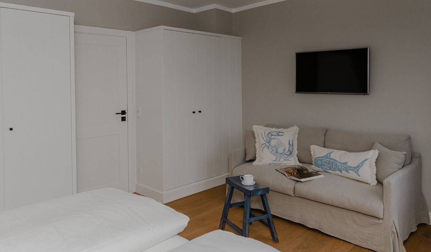 Exklusiv eingerichtetes Endhausteil mit traumhaften Weitblick! Ausgestattet mit hochwertigen Materialien, zahlreichen Tischlereinbauten und einem modernen Farbkonzept bietet es Platz für max. drei Erwachsene und zwei Kinder. Verbringen Sie erholsame Stunden vor dem Kamin oder auf der Südterrasse und blicken Sie dabei über weite Wiesen und den Deich bis auf das Weltnaturerbe Wattenmeer - auch vom Balkon im Hauptschlafzimmer!