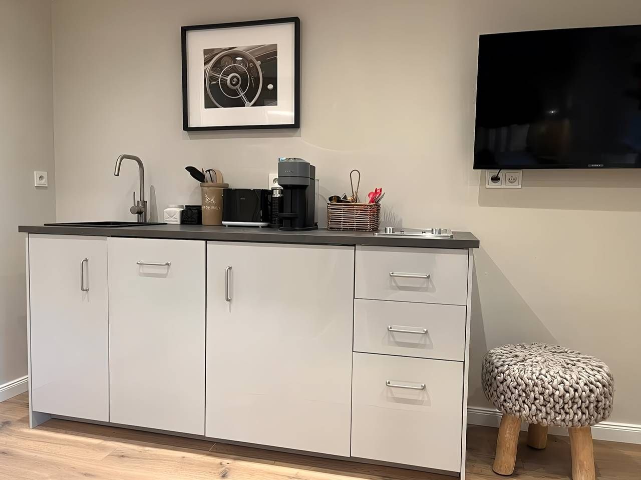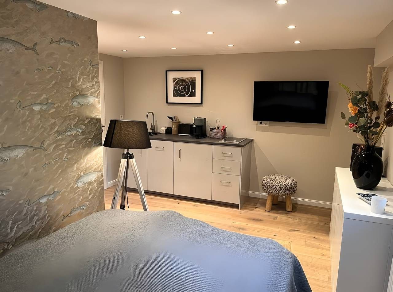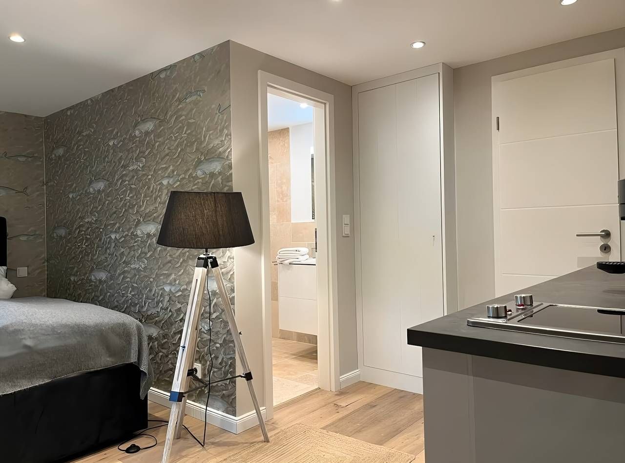 Exklusives Studio-Appartement – Stilvoller Rückzugsort für 2 Personen Dieses charmante Studio-Appartement bietet auf 25 m² alles, was man für einen erholsamen Urlaub benötigt – perfekt für Paare oder Alleinreisende, die Wert auf modernen Komfort und stilvolles Design legen. Mit viel Liebe zum Detail und einem geschmackvollen Farbkonzept wurde hier eine Atmosphäre geschaffen, die sofort ein Gefühl von Geborgenheit vermittelt. Im Mittelpunkt steht das bequeme Boxspringbett (160 cm), das für erholsame Nächte sorgt. Der große Smart TV bietet Entertainment für gemütliche Abende, während der kleine Essplatz mit Tisch und zwei Stühlen ideal für ein entspanntes Frühstück oder ein Abendessen zu zweit ist. Die zum Wohnraum hin offen gestaltete Küchenzeile ist modern und funktional ausgestattet – inklusive Geschirrspüler und allem, was Sie für die Zubereitung leckerer Mahlzeiten benötigen. Das innen liegende Badezimmer überzeugt mit einer großzügigen Walk-In-Dusche mit Glasabtrennung und einer modernen Gestaltung, die auch auf kleiner Fläche höchsten Ansprüchen gerecht wird. Zusätzliche Annehmlichkeiten: • Eigener Parkplatz direkt am Haus • WLAN inklusive • Nichtraucher-Unterkunft Ob für einen kurzen Wochenendtrip oder einen längeren Aufenthalt – das Studio-Appartement ist der ideale Rückzugsort, um die Schönheit der Insel Sylt zu genießen.
