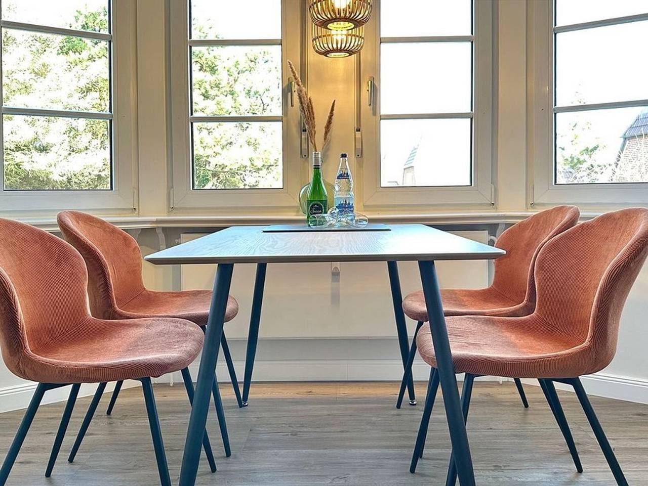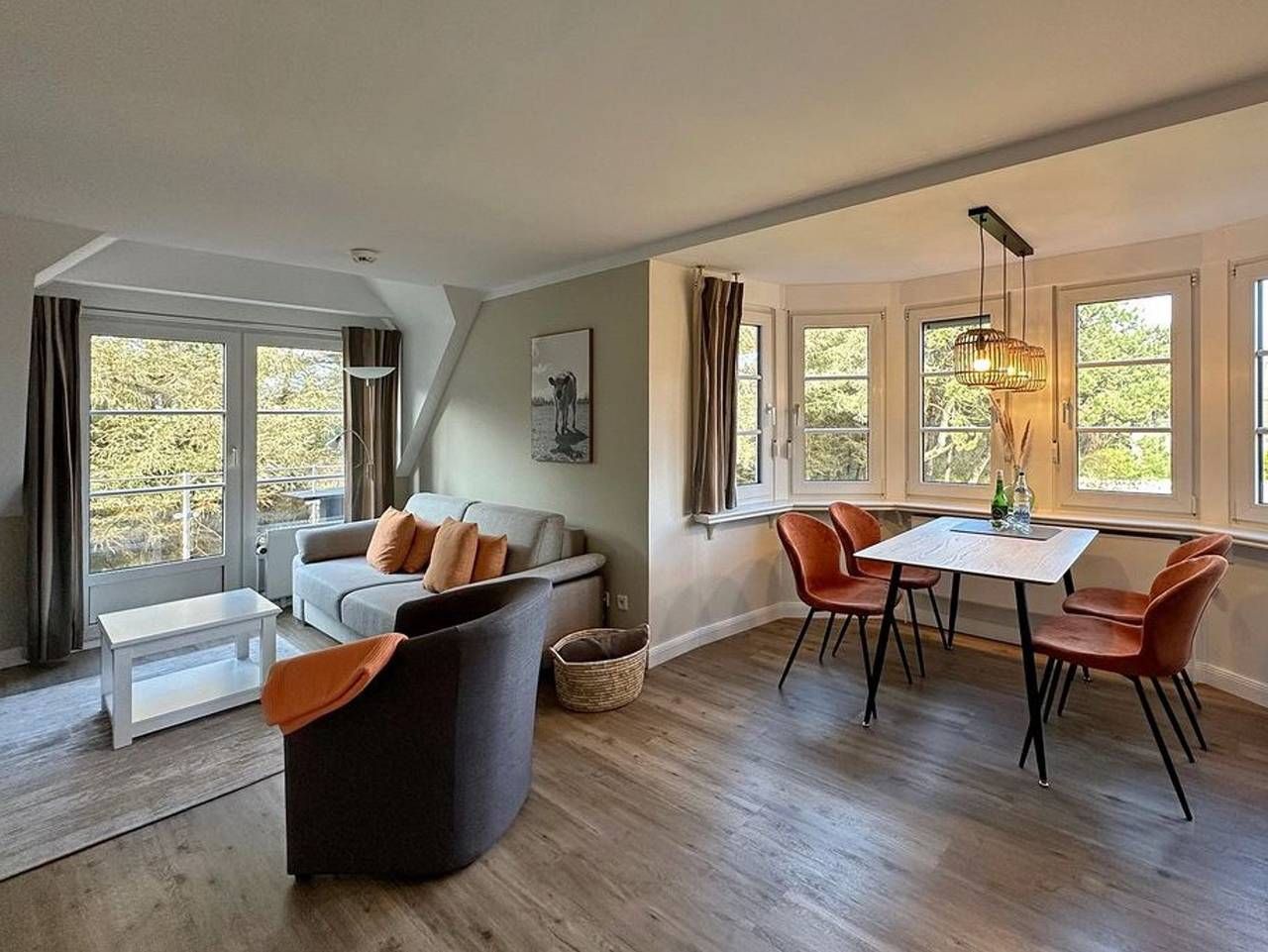 Moderne, sonnige 2-Zimmer-Wohnung im 1. OG mit Westbalkon im Haus Lee. Ca. 58 m². Nichtraucher. OG: großes Wohnzimmer mit Doppelschlafcouch (Liegefläche 160x200), Essplatz für 4 Personen im Erker, Flat-TV, Radio, W-LAN (ohne Gewähr), offene Küche mit Geschirrspüler und 4-Platten-Cerankochfeld, Duschbad/WC, Diele mit Garderobe. DG: helles Schlafzimmer mit Box-Spring-Doppelbett (180x200), Einbauschränken, Flat-TV. Schwimmbad und finnische Sauna. Garage Nr. 12 kann kostenlos gebucht werden. Münzwaschmaschine und -trockner. Tierhaltung ist nicht gestattet. Bettwäsche und Handtücher sind zur Anreise aufgezogen!