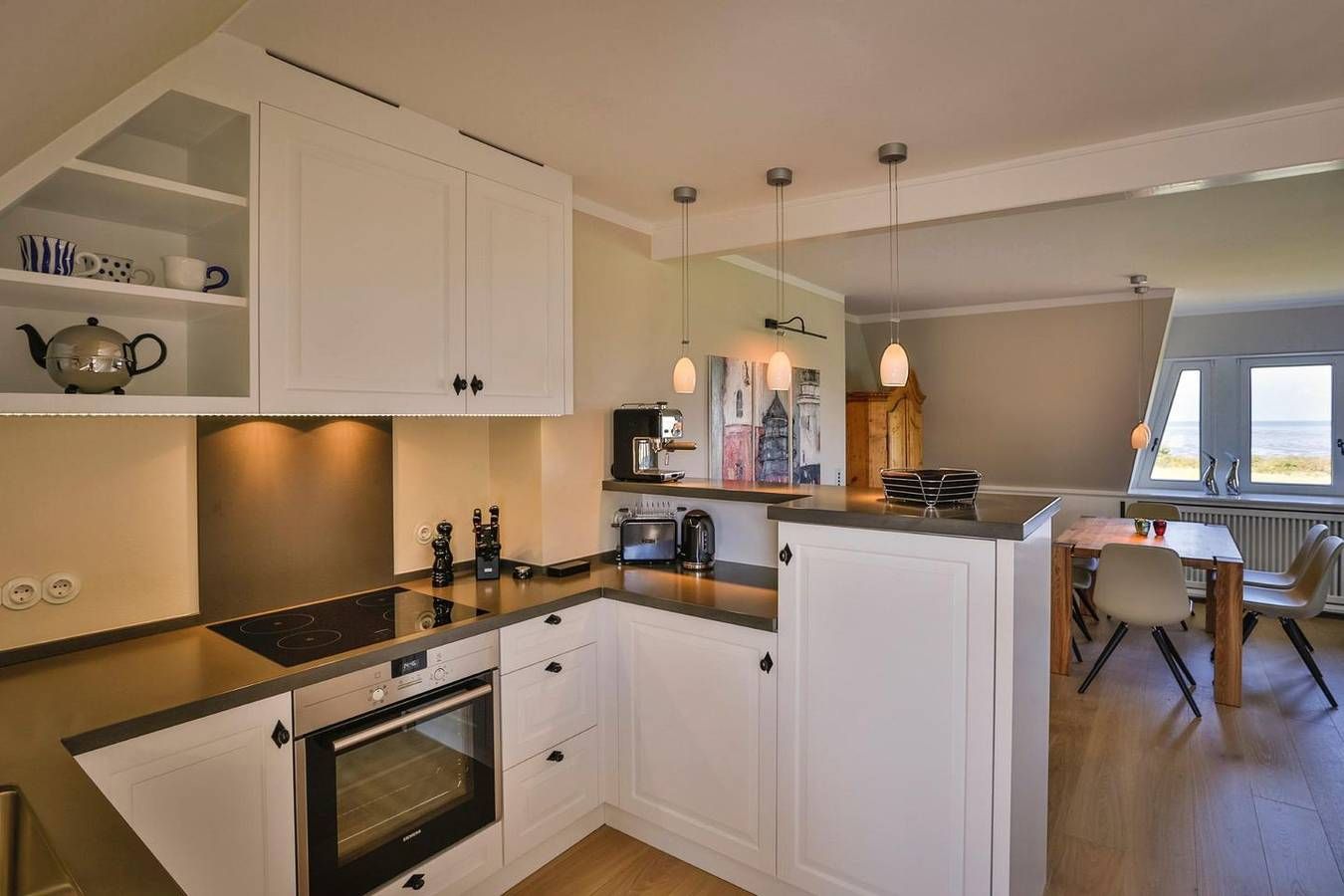 Sylt-Urlaub direkt am Meer! In einer der schönsten und exklusivsten Wohnlagen der Insel befindet sich diese traumhafte Ferienwohnung unter Reet. Genießen Sie den freien Blick aufs Meer bereits am Frühstückstisch und werden werden Sie Zeuge einmaligen Naturschauspiels, welches direkt vor Ihrer Haustür beginnt. Die stilvolle und hochwertige Ausstattung der Wohnung lässt nichts vermissen. Kreative Tischlereinbauten und ein modernes LED-Lichtkonzept setzen besondere Akzente. Die warme Farbgebung und die erlesene Auswahl der Materialien sorgen im für ein gemütliches und heimeliges Wohngefühl. An einem sonnigen Frühlings- oder Sommertag blicken Sie von Ihrer Terrasse aus über die Weiten des Naturschutzgebiets Nösse und das anliegende Wattenmeer. Im Herbst oder Winter relaxen Sie nach einem Strandspaziergang in Ihrer eigenen Wellness-Oase mit Sauna, Bad und Ruheraum. Eine traumhafte Wohnung zu jeder Jahreszeit erwartet Sie!