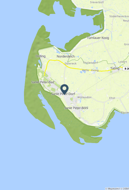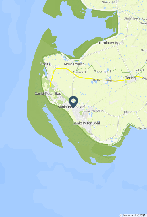 Ferienhaus im historischen Ortskern Das Reihenhaus MAGISTERHOF 3 im Zentrum von St.Peter-Dorf bietet mit seinen 58 qm verteilt auf drei Ebenen und Terrasse Platz für bis zu 4 Personen. Besonders wohl fühlen sich hier 3 Erwachsene und 1 Kind. Kostenfreier Internetzugang (WLAN), Fußbodenheizung, EG: Eingangsbereich, Wohn-Esszimmer mit Terrassenzugang, Sitzbereich aus Sofa, Sessel und Couchtisch mit Kabel-TV und Stereoanlage, Esstisch mit Eckbank und 2 Stühlen, halboffene Küche umfangreich ausgestattet u.a. mit 4-Felder-Herd (Ceran), Backofen, Mikrowelle, Dunstabzug, Geschirrspülmaschine, Wasserkocher, Kaffeemaschine und Toaster, Abstellraum, OG: Schlafzimmer 1 mit Doppelbett und Kleiderschrank, Schlafzimmer 2 mit Einzelbett und Kleiderschrank geeignet als Kinderzimmer, Bad mit Dusche, Waschbecken, Spiegel und WC, DG: Schlafzimmer 3 mit Einzelbett, Babyreisebett zubuchbar. Zur Unterkunft gehört eine teilüberdachte Terrasse möbliert samt Polsterauflagen. Ihr Auto können Sie kostenfrei auf dem zugeordneten Stellplatz abstellen. Zur Unterkunft gehört eine teilüberdachte Terrasse möbliert samt Polsterauflagen. Ihr Auto können Sie kostenfrei auf dem zugeordneten Stellplatz (Nr. 3) abstellen. Die Unterkunft befindet sich in St.Peter-Dorf im historischen Ortskern. Eisdielen, Bäckereien, Cafés, Restaurants, ein Supermarkt, Banken, Geschäfte, das sehenswerte Eiderstedter Museum, der Marktplatz und vieles mehr erreichen Sie von hier aus in nur wenigen Gehminuten. Sie befinden sich nah am Deich und am Südstrand. Mit dem Ortsbus fahren Sie als Gast kostenlos z.B. von der Bushaltestelle am Marktplatz. Bitte beachten Sie, dass eine eventuell anfallende Kurabgabe nicht im Gesamtpreis enthalten ist. Diese ist vor Ort zu leisten.