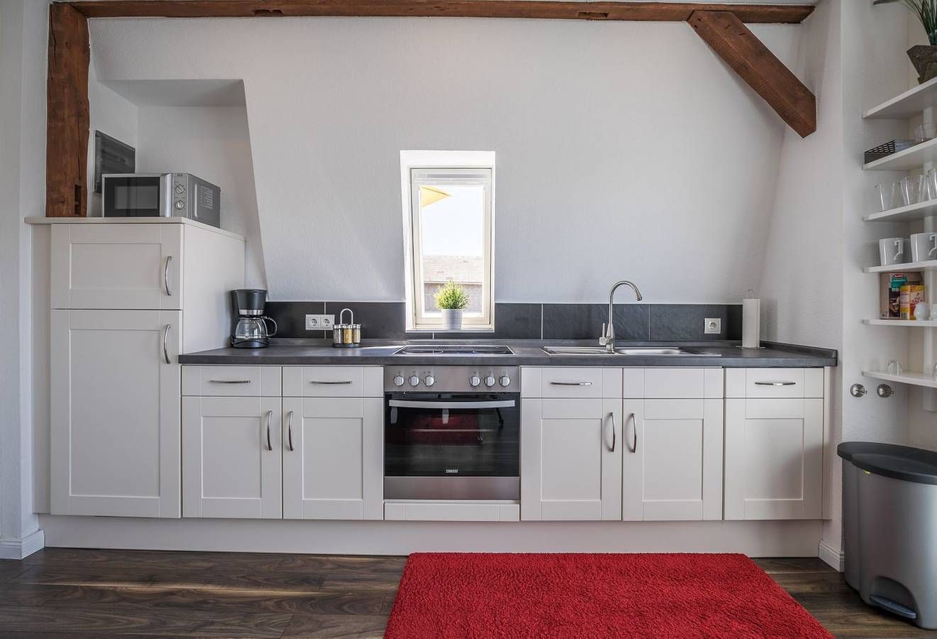 Dieses schöne 2-Raum Apartment bietet Platz für 2 Personen. Aufgeteilt ist die gemütliche Altbau-Wohnung in einen Wohn- und Essbereich mit offener Küche. Die Küche ist mit einem Herd, Backofen, einer Mikrowelle und einer Geschirrspülmaschine ausgestattet. Von dem Wohnbereich gelangen Sie auf den sonnigen Erkerbalkon. Ebenfalls gelangen Sie von dem Wohnbereich in das gemütlichen Schlafzimmer. Dieses ist mit einem Doppelbett, einem Kleiderschrank und einem TV ausgestattet. Das Tageslichtbad verfügt über eine flache Duschwanne (Regendusche). Gerne dürfen auch zusätzlich der Gemeinschaftsbalkon im 1. Obergeschoss oder die Gemeinschaftsterrasse genutzt werden. Zur Ausstattung: Küchenzeile: Cerankochfeld, Kühlschrank, Filterkaffee, Wasserkocher, Toaster, Eierkocher Technik: 2 TV- SAT, WLAN kostenfrei, Radio Sanitär: Tageslicht - Duschbad (Regendusche), Haar-Föhn, Kosmetikspiegel Sonstiges: Außenrollläden, Gegensprechanlage Im Mietpreis enthalten: - eigener PKW- Stellplatz am Haus - Fahrradunterstellplatz - Nebenkosten (Strom & Wasser) - Endreinigung - WLAN Die Preise für unsere Ferienwohnungen gelten immer ab 7 Übernachtungen, unter 7 Nächten zahlen Sie einen Kurzbucheraufschlag.
