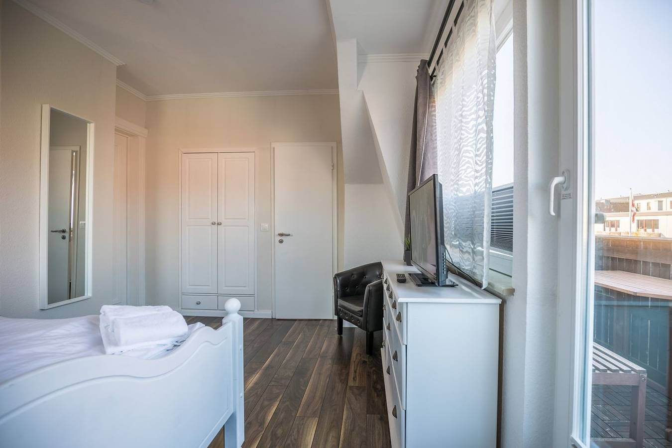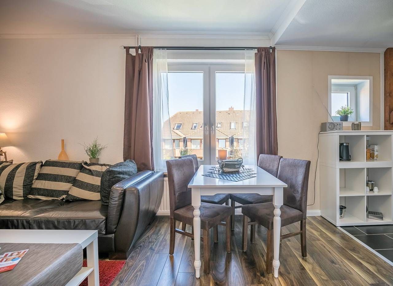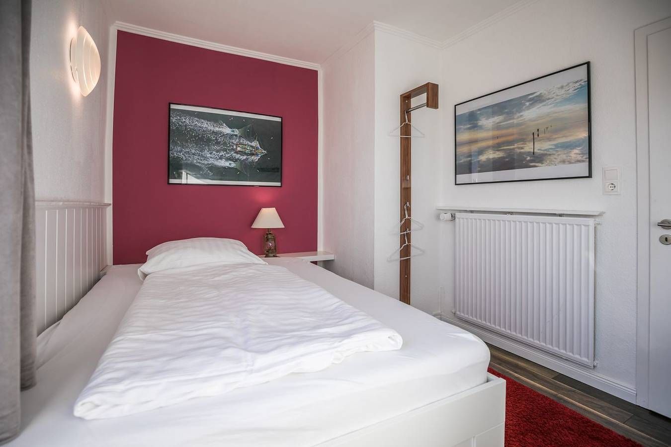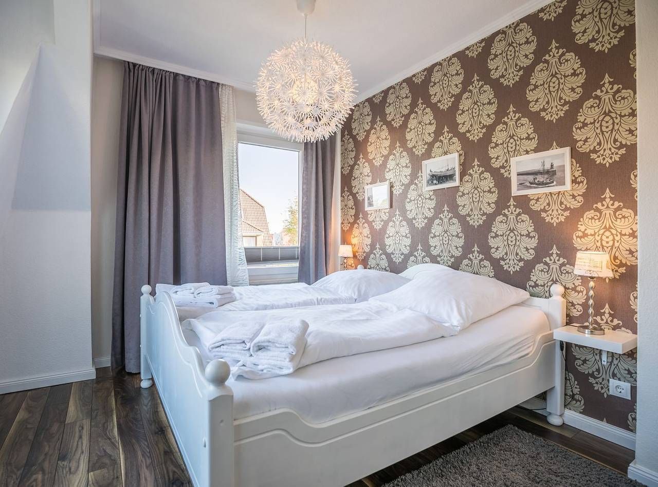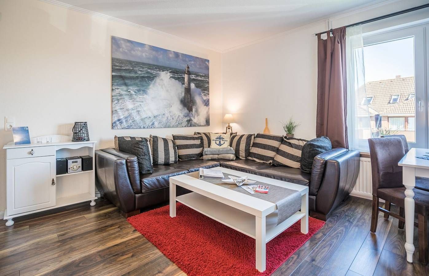 Diese schöne 3-Raum Apartment bietet Platz für 4 Personen. Der Mittelpunkt des Apartments ist der Wohn- und Essbereich mit offener Küche und liegt zwischen den beiden Schlafzimmern. Die Küche ist mit einem Herd, Backofen, einer Mikrowelle und einer Geschirrspülmaschine ausgestattet. Eines der Schlafzimmer verfügt über ein Doppelbett (180x200 cm), mit zwei verstellbaren Lattenrosten und einem TV. Von diesem Schlafzimmer gelangen Sie auf den zu der Wohnung gehörenden Balkon. Das andere Schlafzimmer verfügt über ein (140x200 cm) Bett. Von beiden Schlafzimmern gelangen Sie je in ein Tageslichtduschbad. Gerne dürfen auch zusätzlich der Gemeinschaftsbalkon im 1. Obergeschoss oder die Gemeinschaftsterrasse genutzt werden. Zur Ausstattung: Küchenzeile: Cerankochfeld, Kühlschrank, Filterkaffee, Wasserkocher, Toaster, Eierkocher Technik: 2 TV- SAT, WLAN kostenfrei, Radio Sanitär: 2 Tageslicht - Duschbäder (1x Regendusche), Haar-Föhn, Kosmetikspiegel Sonstiges: Gegensprechanlage Im Mietpreis enthalten: - eigener PKW- Stellplatz am Haus - Fahrradunterstellplatz - Nebenkosten (Strom & Wasser) - Endreinigung - WLAN Die Preise für unsere Ferienwohnungen gelten immer ab 7 Übernachtungen, unter 7 Nächten zahlen Sie einen Kurzbucheraufschlag.