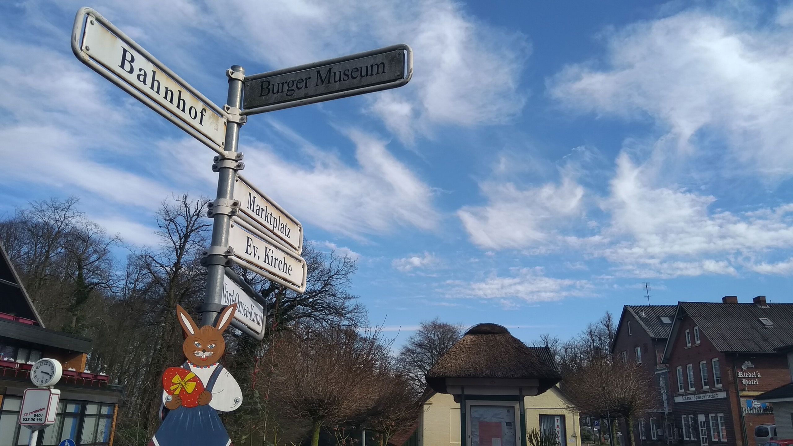 Der schönste Ortsteil Burgs befindet sich an der Ostseite des Marktplatzes. Zwei alte Gebäude, das reetgedeckte niederdeutsche Fachhallenhaus aus der Mitte des 18. Jahrhunderts und die danebenliegende, nur wenige Jahrzehnte später gebaute Apotheke, sowie ein altes, von Eichen umstandenes Denkmal, die Kirche und das frühere Diakonat-Gebäude bilden ein ansehnliches Ensemble. Außerdem findet hier jeden Freitag von 8 - 12 Uhr der Wochenmarkt statt.