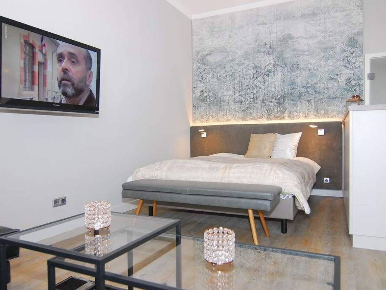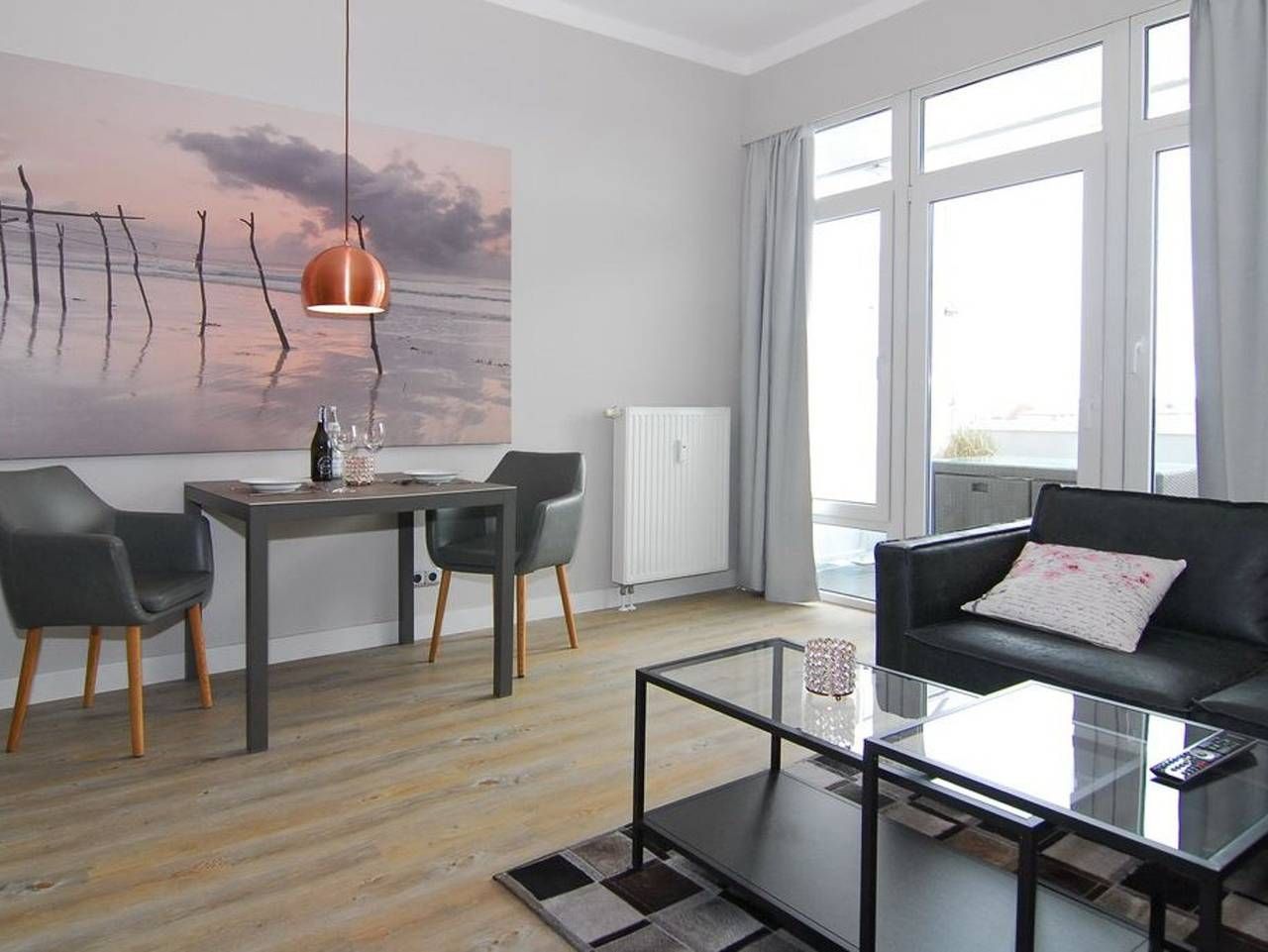 Moderne 1-Zimmer-Ferienwohnung, ca. 44m² im Haus Mauritius. Nichtraucher-Whg.! Wohn-/Schlafraum mit Doppelbett, 2-Sitzercouch und Tisch, Essplatz, Kabel-TV, Küchenzeile mit 2-Plattenherd und Mikrowelle, Flur, Duschbad/WC, gr.Südbalkon, Strom nur über Schlüsselkarte aktivierbar. Keine Tierhaltung gestattet! Fahrradkeller vorhanden! Pkw-Stellplatz kann kostenpflichtig hinzugebucht werden. Bettwäsche und Handtücher sind zur Anreise aufgezogen! Internet (ohne Gewähr).