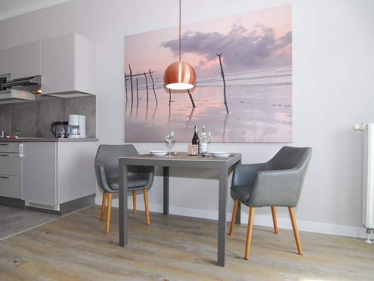 Moderne 1-Zimmer-Ferienwohnung, ca. 44m² im Haus Mauritius. Nichtraucher-Whg.! Wohn-/Schlafraum mit Doppelbett, 2-Sitzercouch und Tisch, Essplatz, Kabel-TV, Küchenzeile mit 2-Plattenherd und Mikrowelle, Flur, Duschbad/WC,...