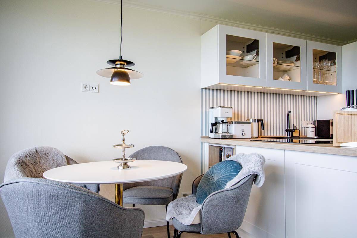 Meeresleuchten direkt am Meer Dieses Appartement lässt das Herz und die Seele leuchten. Der Blick zum Strand aufs Meer ist, wie wir immer sagen, unbezahlbar. Aufwachen bei Meeresrauschen und den Tag mit einem leuchtenden Sonnenuntergang auf dem Balkon beenden. Das frisch sanierte Appartement hat einen ganz individuellen Stil der das Norddeutsche und den Inselflair spiegelt. Eine kleine gemütlich Koje läd zum schlafen und entspannen ein. Der Wohnbereich weckt Lust zum Kochen und Relaxen mit dem Blick aufs Meer. Dieser kleinen Wohlfühloase fehlt es an nichts, denn Sie ist mit ein paar Highlights wie USB Anschlüssen in den Steckdosen und einer Fußbodenheizung im Badezimmer perfekt geplant worden. Die einzige Frage die offen bleiben sollte ist, wann Sie Urlaub haben und buchen möchten.