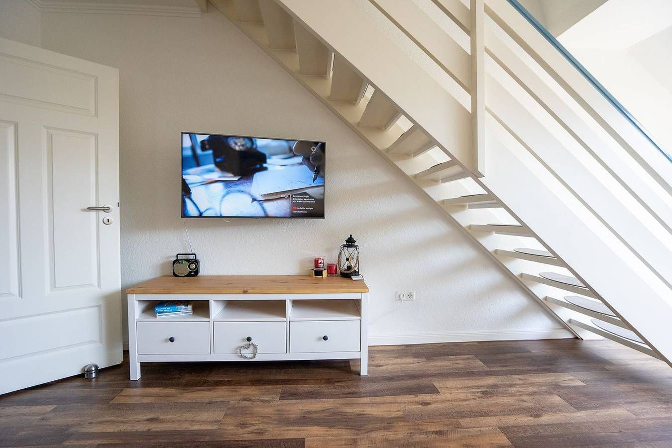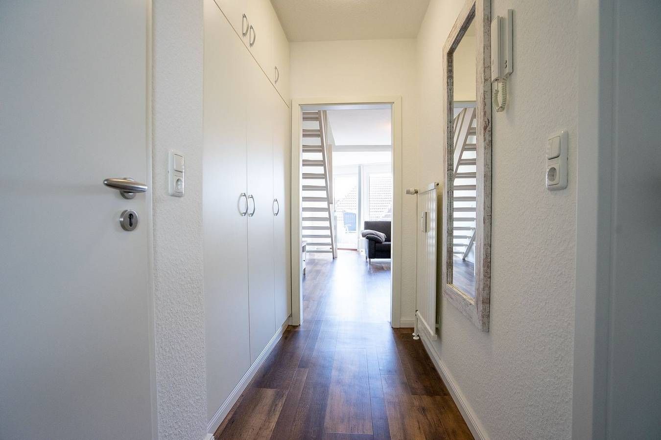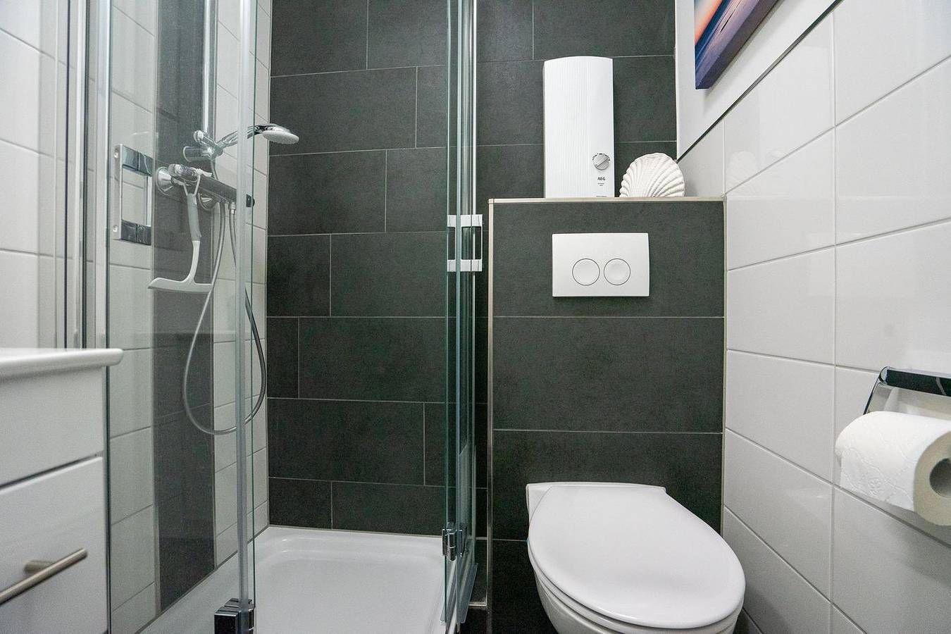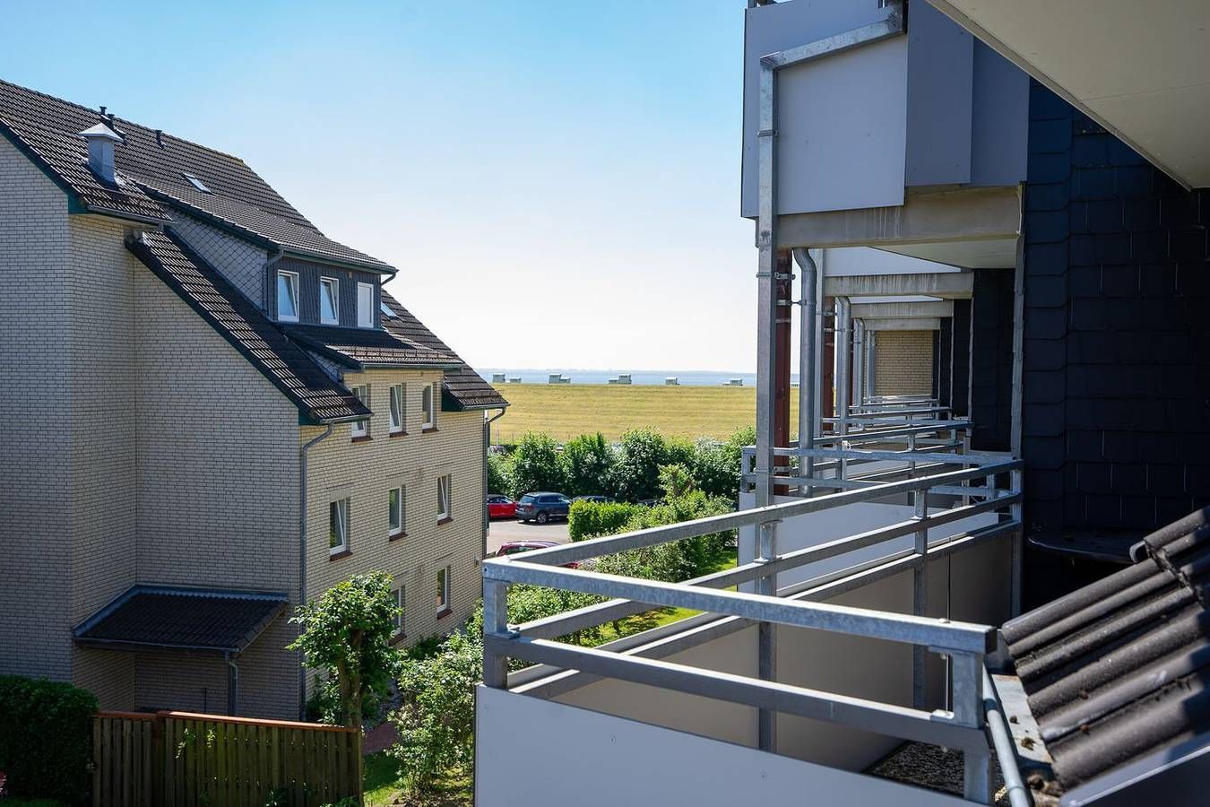 Eine Wohlfühlunterkunft auf zwei Etagen, mit seitlichem Meerblick und in unmittelbarer Küstennähe: Hier können Sie es sich richtig gutgehen lassen! Die komfortable Ferienwohnung befindet sich in der zweiten und dritten Etage der Anlage. In der zweiten Etage erwartet Sie das lichtdurchflutete Wohnzimmer mit offener Küche, ein Schlafzimmer mit Doppelbett sowie das Badezimmer. Vom Wohnzimmer aus haben Sie Zugang zum sonnigen Südost-Balkon mit seitlichem Meerblick. Hier können Sie Ihre Urlaubstage wunderbar ausklingen lassen – oder schon morgens mit einer schönen Tasse Kaffee in den Tag starten. Vom Wohnzimmer führt eine Treppe nach oben zum zweiten Schlafzimmer mit einem 1,40 x 2 Meter großen Bett. Die Veluxfenster haben Verdunklungsrollos. In der gut ausgestatteten Küche finden Sie alles, um sich auch im Urlaub bestens zu versorgen. Für Ihren PKW gibt es einen Parkplatz in der Tiefgarage (Duplexparker). Der Stellplatz befindet sich unten bei der Hebebühne. Bitte beachten Sie die Maße für Ihr Auto (L: 4,90 Meter / H: 1,48 Meter / B: 1,90 Meter). Zu einem weiteren Stellplatz gelangen Sie ca. 700 Meter entfernt. Dieser Stellplatz ist draußen und ebenerdig. Sehnsucht nach Meer? Kommen Sie zu uns an die Küste!