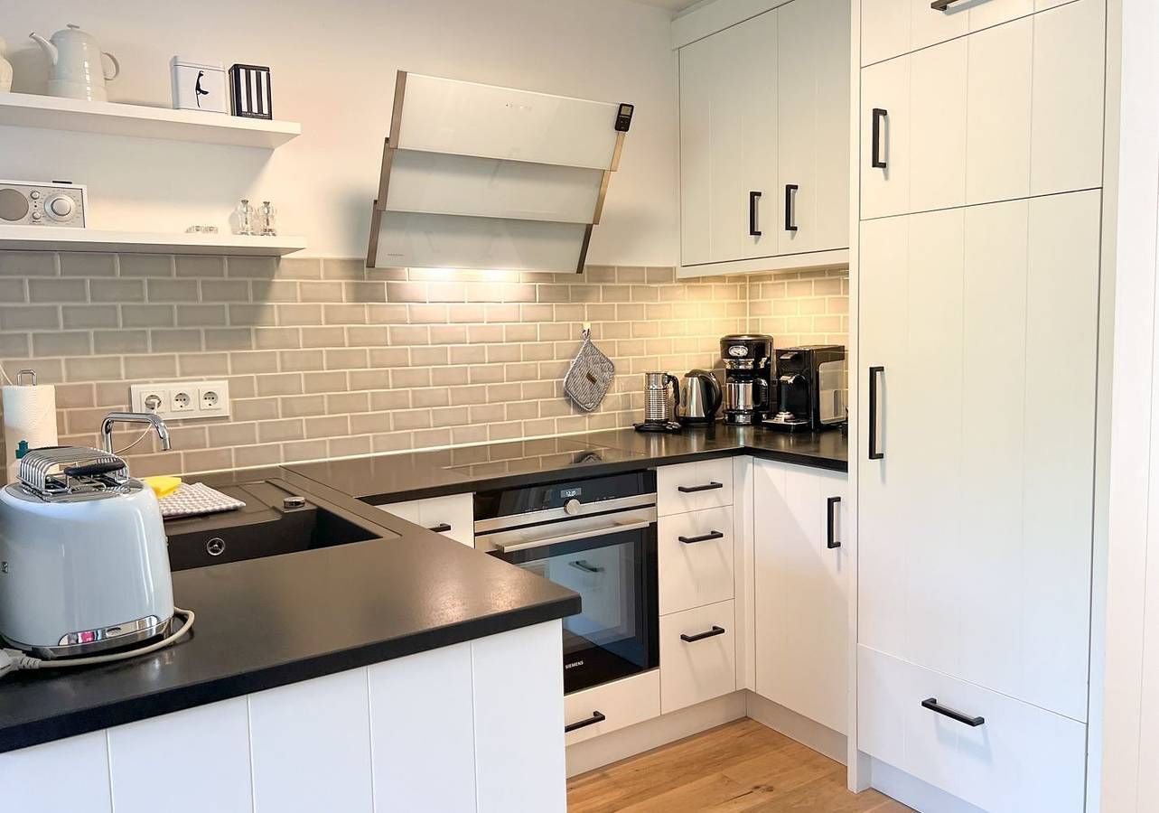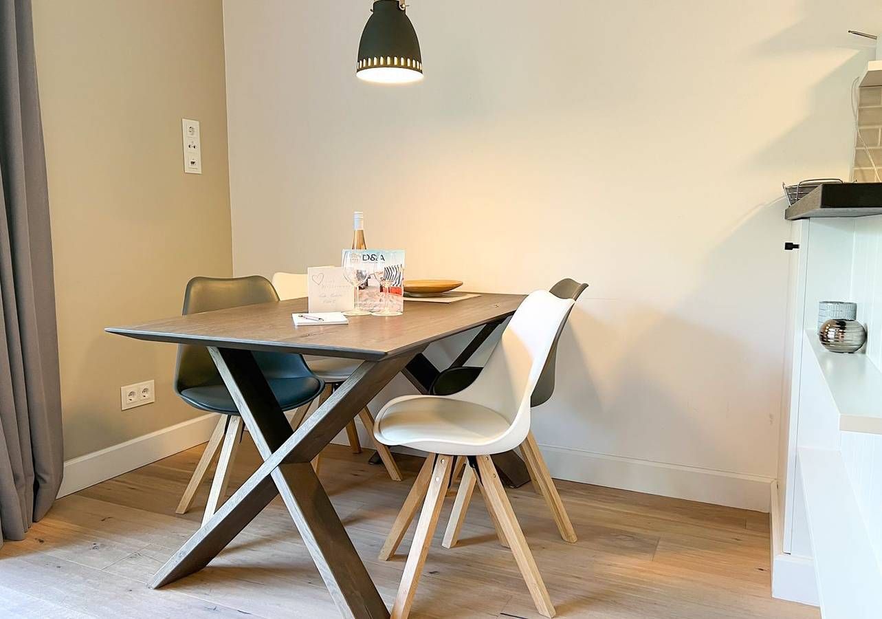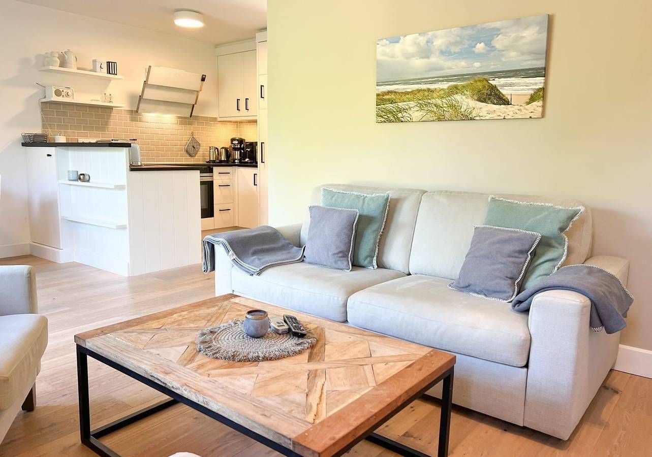 Willkommen in der stilvollen Ferienwohnung „Meersalz“ – Ihrem persönlichen Rückzugsort auf Sylt. In ruhiger, dennoch zentraler Lage im charmanten Ortsteil Tinnum, zwischen Westerland und Keitum, empfängt Sie diese geschmackvoll eingerichtete Erdgeschosswohnung mit ca. 57 m² Wohnfläche, privater Sauna, sonniger West-Terrasse und liebevollen Tischlereinbauten. Ideal für Paare und kleine Familien, die Erholung mit dem Komfort des modernen Insellebens verbinden möchten. Das helle Wohnzimmer besticht durch maritimen Charme, hochwertige Möbel und gemütliche Details. Große Terrassentüren öffnen den Blick ins Grüne und lassen viel Licht herein. Ein Gaskamin sorgt für stimmungsvolle Abende, das Schlafsofa bietet eine komfortable zusätzliche Schlafmöglichkeit. Ob mit einem guten Buch, einem Film oder Musik über das Bluetooth-Dock – hier lässt es sich wunderbar entspannen. Die offene Küche ist ein echtes Highlight für Genießer: Sie ist voll ausgestattet mit Spülmaschine, Mikrowellen-Backofen-Kombigerät, Nespressomaschine, Toaster, Wasserkocher und allem, was das Kochherz begehrt. Auch Waschmaschine und Trockner stehen Ihnen zur alleinigen Nutzung zur Verfügung. Nach einer ausgedehnten Radtour oder einem Spaziergang durch die Insel lädt die private Sauna im modernen Bad zum Wohlfühlen ein. Die bodengleiche Dusche, ein Handtuchheizkörper und stilvolle Details runden das Wellnessgefühl ab. Im angrenzenden Schlafzimmer erwartet Sie ein hochwertiges Doppelbett (180 × 200 cm), ein zweiter Flatscreen-TV und ausreichend Stauraum. Ein absolutes Lieblingsplätzchen ist die geschützte Terrasse mit kleinem Garten. Genießen Sie hier ein ausgedehntes Frühstück in der Morgensonne oder lassen Sie den Tag mit einem Glas Wein entspannt ausklingen. Gartenmöbel stehen selbstverständlich bereit. Praktisch für Aktivurlauber: Ein abschließbarer Schuppen steht Ihnen zur Verfügung – ideal, um Fahrräder sicher abzustellen und E-Bikes bequem über den vorhandenen Stromanschluss zu laden. Weitere Pluspunkte: Fußbodenheizung in der gesamten Wohnung, WLAN, ein eigener Privatparkplatz direkt vor der Tür sowie die Allergikerfreundlichkeit der Unterkunft. Wer mit Freunden oder Großeltern reist, kann die benachbarte Ferienwohnung „Wellenbrecher“ im selben Haus dazubuchen – perfekt für den gemeinsamen, aber dennoch individuellen Urlaub.