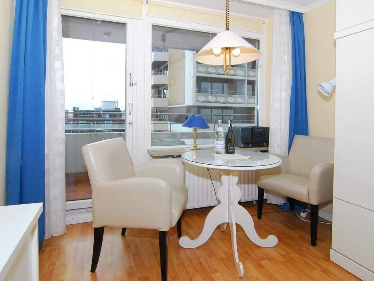 1-Zimmer-Ferienwohnung, 23m², 3. OG, im Haus Metropol zur Landseite. Nichtraucher-Wohnung![nbsp][nbsp]Wohn-/ Schlafraum mit Einzelschrankbetten, Essplatz am Fenster, Kabel-TV, Radio, W-Lan (ohne Gewähr), Ostbalkon mit...