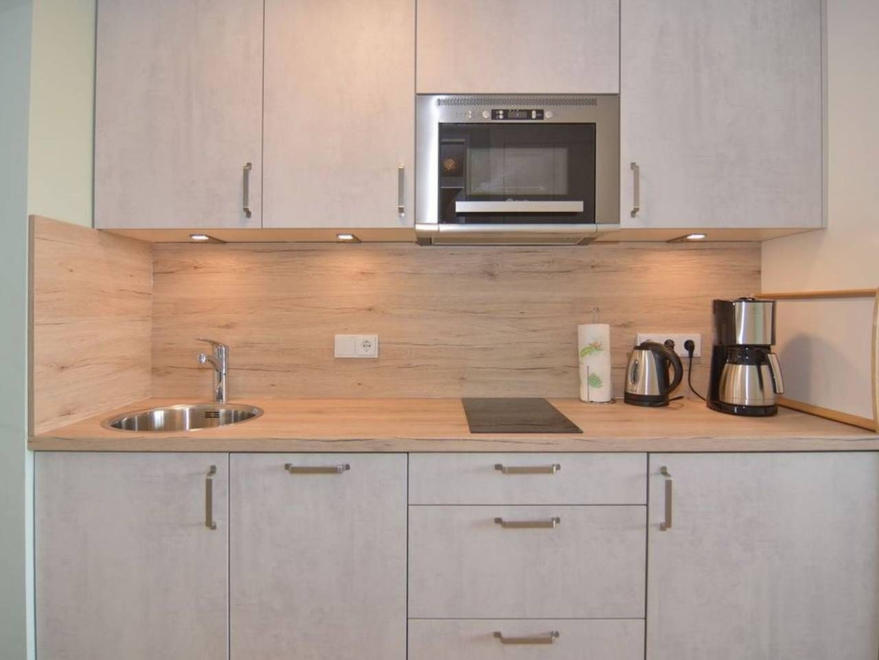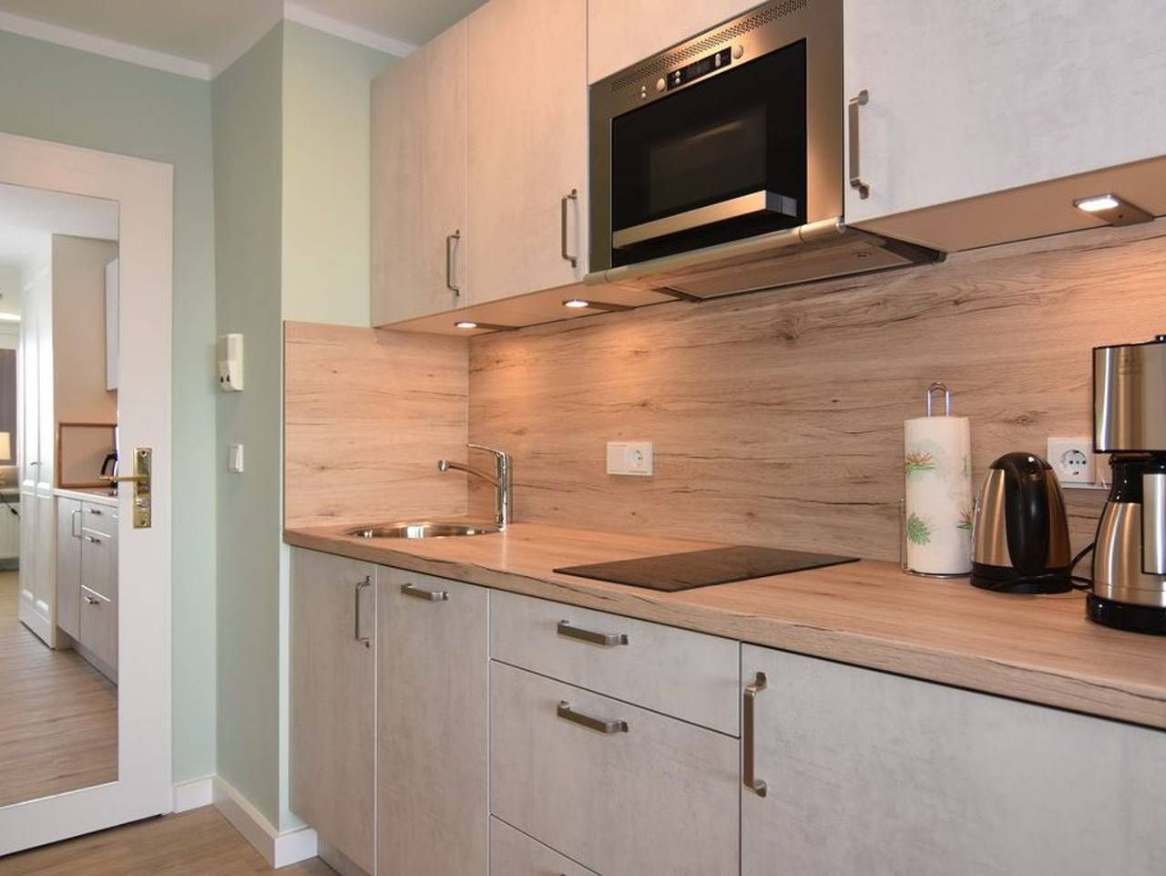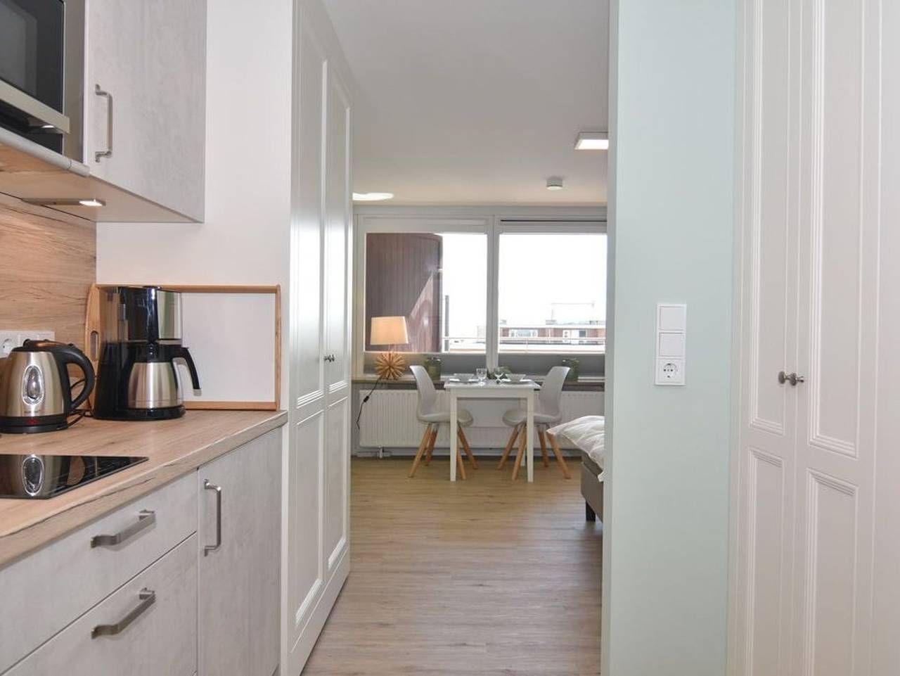 Modernes 1-Zimmer-Appartement im Haus Metropol, 3. OG mit Ostbalkon und Balkonmöbeln, ca. 30 m², Nichtraucher-Apartment. Wohn-/Schlafraum mit Doppelbett ( 160 x 200 ) und Essplatz am Fenster, Flat-TV, Radio und W-LAN ( ohne Gewähr ), Küchenzeile im Flurbereich mit Mikrowelle, Geschirrspüler und 2 Platten-Ceranfeld, Duschbad/WC. Tierhaltung ist nicht gestattet. Bettwäsche und Handtücher sind zur Anreise aufgezogen. Ein PKW-Stellplatz kann kostenpflichtig zugebucht werden.