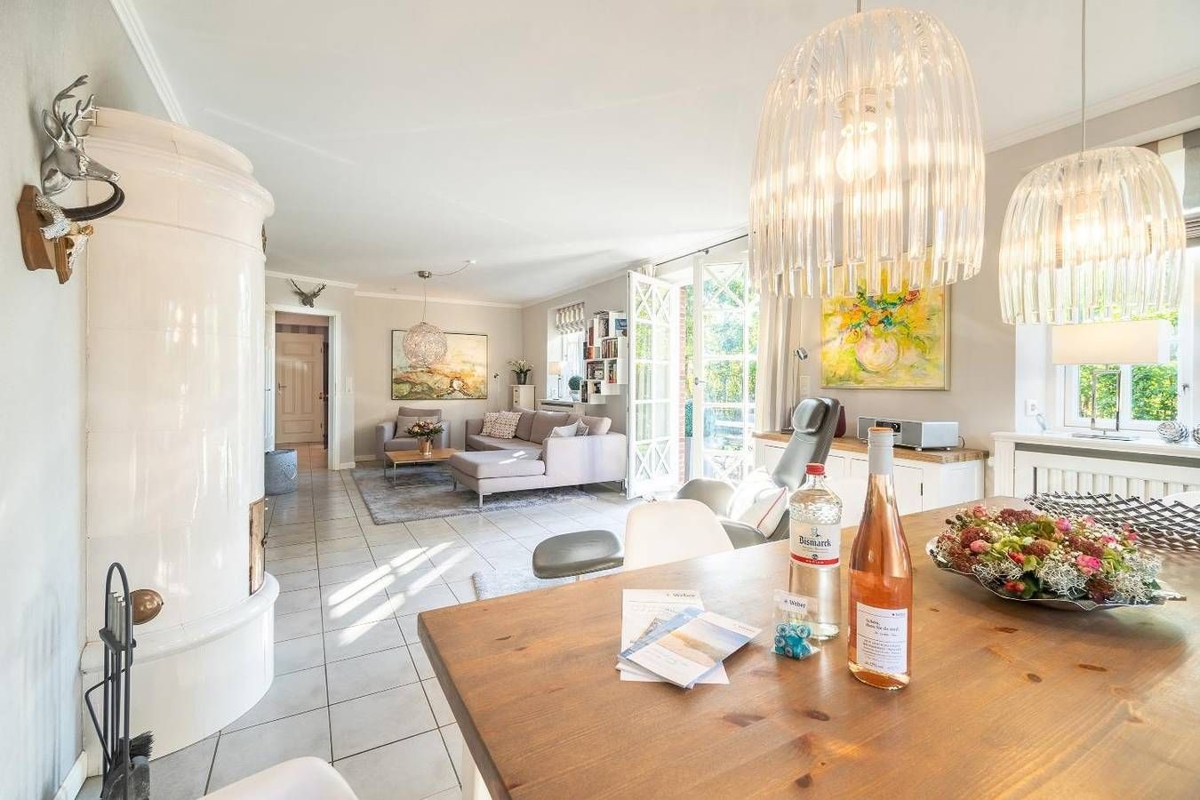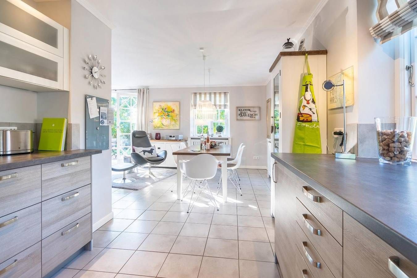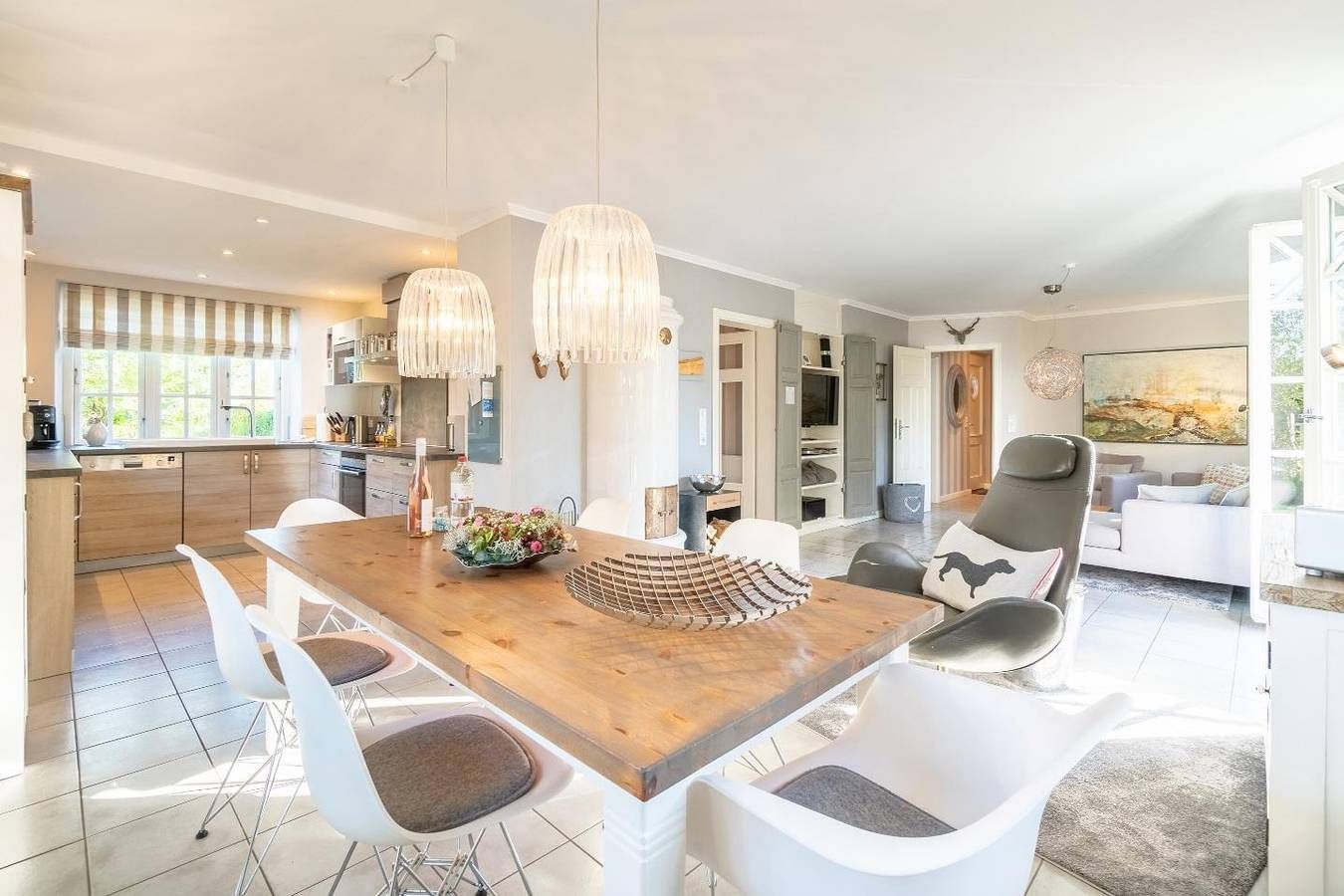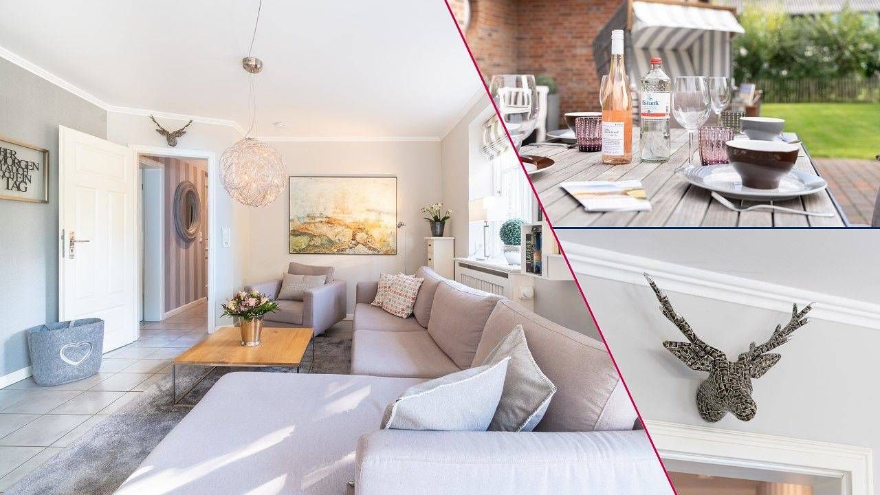 Das reetgedeckte Ferienhaus "Min Eilun" verfügt über 3 Schlafzimmer, 2 Bäder und bietet komfortabel Platz für bis zu 4 Erwachsene und 2 Kinder. Eine zuzügliche Kleinkinderaufbettung ist auf Wunsch möglich. Auch ein Aufenthalt mit einem Hund ist hier kein Problem. In dem Erdgeschoss befindet sich der offene Wohn- und Essbereich, eines der zwei Duschbäder, die hauseigene Sauna und ein Hauswirtschaftsraum. Die hochwertig eingerichtete Küche lässt keine Wünsche offen. Sogar ein Kaffeevollautomat steht Ihnen hier zur Verfügung. In dem Wohnbereich steht Ihnen ein Apple-TV frei zur Nutzung und es befindet sich dort ein Original Mylin-Kachelofen, der an kühleren Tagen für wohlige Wärme sorgt. Auch in der Sauna können Sie sich nach einem langen Strandspaziergang aufwärmen. In dem HWR steht Ihnen ein zweiter Kühlschrank, eine Waschmaschine und ein Trockner zur Verfügung. Auch eine Fußbodenheizung befindet sich im Erdgeschoss und auch in dem zweiten Duschbad im Obergeschoss. In dem Obergeschoss befinden sich die drei Schlafzimmer und das zweite Badezimmer. In dem ersten Schlafzimmer befindet sich ein Doppelbett sowie ein zweiter TV. Alle Schlafzimmer sind mit Einbauschränken ausgestattet, damit Sie auch genug Platz zum Verstauen haben. In dem zweiten Schlafzimmer befinden sich zwei Einzelbetten und auch ein kleiner Schreibtisch. In dem dritten Schlafzimmer finden Sie ein Hochbett. Der großzügige Garten bietet genug Platz zum Spielen und Austoben für Kind und Hund. Auf der Terrasse befindet sich ein Strandkorb sowie zwei Liegen zum Entspannen. Am Hundestrand in Utersum steht Ihnen ein eigener Strandkorb in dem Zeitraum April bis Oktober zur Verfügung. Zu den Highlights des Feriendomizils zählen unter anderem die Sauna sowie der Mylin-Kachelofen und die Strandnähe. Das Ferienhaus Min Eilun, Boowen Taarep 9 in Utersum, liegt nur wenige Meter vom Strand entfernt. Fußläufig vom Haus befinden sich im Dorf ein Edekamarkt, ein Bäcker und ein Fahrradverleih, sowie mehrere Restaurants und Cafés. Der Badestrand in Utersum zählt zu den beliebtesten der Insel. Nicht nur tagsüber für Surfer und Badegäste, sondern auch am frühen Abend dient der Strand in Utersum als romantisches Plätzchen, denn die Sonne taucht hier zwischen den Inseln Amrum und Sylt ins Meer ein. Das damit verbundene Farbenspiel am Himmel ist einzigartig und sehr beliebt. Die Freizeitangebote befinden sich alle in unmittelbarer Umgebung des Objektes. Ein äußerst angenehmer Aufenthalt für unsere Gäste und die sorgfältige Reinigung der uns anvertrauten Ferienunterkünfte ist unser höchstes Gebot. Damit wir diesem gerecht werden, weist jede unserer Ferienimmobilien in den Monaten Mai bis einschließlich Oktober einen festgelegten An- und Abreisetag auf. Weitere Infos finden Sie auf unserer Homepage! Fester An- und Abreisetag Juli - August 2023: Dienstag Feste An- und Abreisetage Mai - Oktober: Montag - Freitag Mind. 7 Übernachtungstage: April - Oktober; Weihnachten und Jahreswechsel Mind. 2 Übernachtungstage: November - März