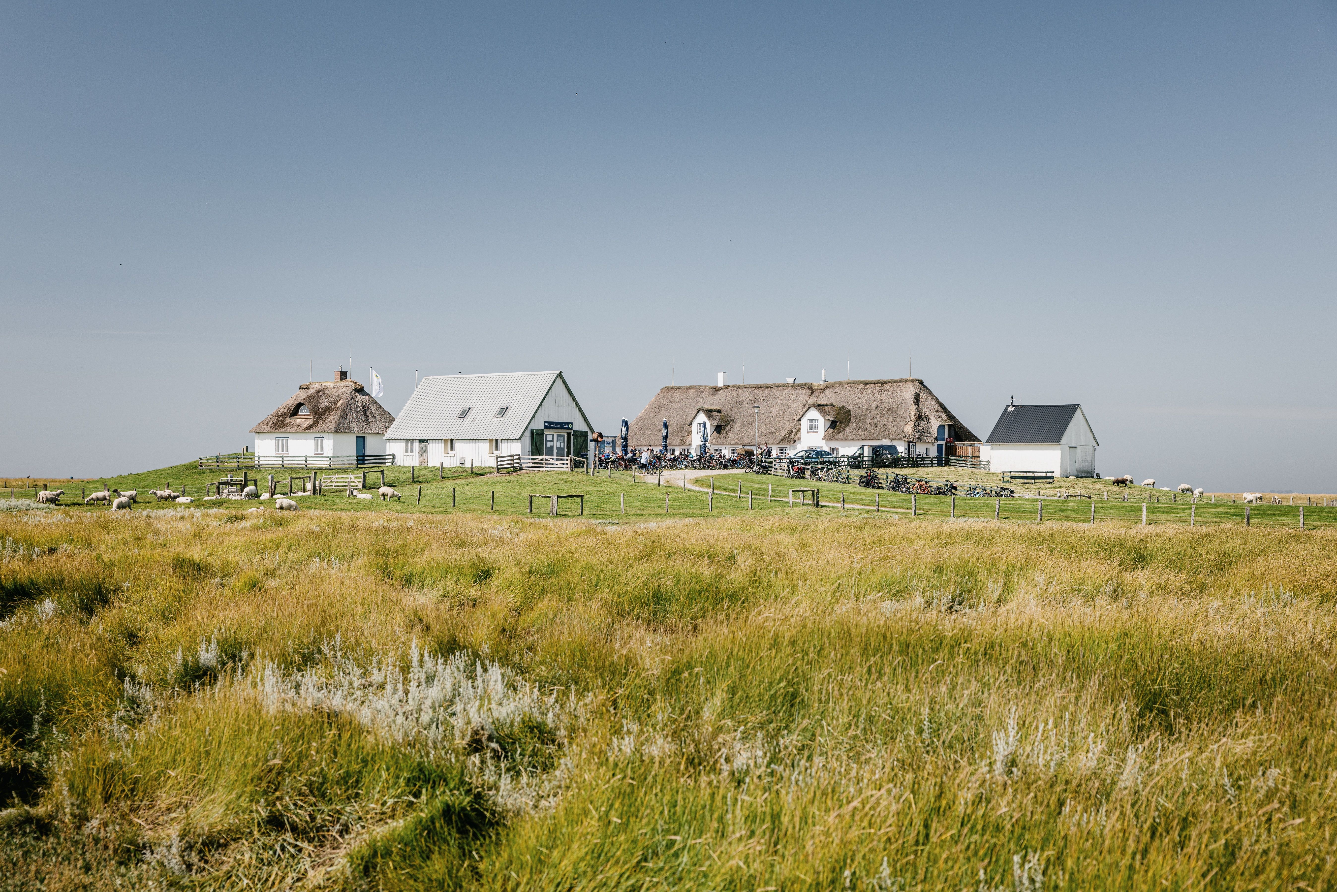 Vom Holmer Siel radelst du direkt am Deich entlang – mit Blick auf das Wattenmeer, die Halligen und die weite Küste. Der Weg zur Hamburger Hallig führt durch ruhige Salzwiesen und vorbei an der NABU-Hütte.
