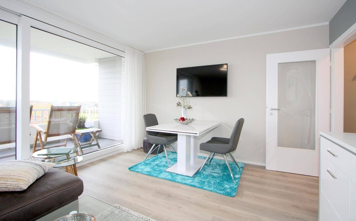 Moderne 2-Zimmerwohnung mit herrlichem Weitblick und ca. 50 m² Wohnfläche, für 2 Personen. Liebe zum Detail zeichnet das Ambiente dieses Zweiraum-Appartements im zweiten Obergeschoss mit einem geräumigen Südbalkon aus. Koch-/Wohn-/Essbereich: Heller Wohnraum mit bequemer Wohnlandschaft und Smart-TV (Netflix und Amazon-Prime empfangbar) sowie Zugang auf den schönen Südbalkon. Auch vom Essbereich für 2 Personen können Sie den tollen Weitblick genießen. Angrenzend zum Wohnbereich befindet sich die gut ausgestattete Einbauküche. Schlafzimmer: Modernes Boxspringbett mit Kleiderschrank. Badezimmer: Das helle Duschbad liegt zwischen Wohn- und Schlafraum. Besonderheiten: Großzügiger Südbalkon mit toller Weitsicht. In der Ferne können Sie sogar das Meer sehen. Lage: Fußläufig erreichen Sie den Bäcker, die hervorragenden Restaurants und diverse Einkaufsmöglichkeiten. Zu dem traumhaften, breiten Sandstrand in Wenningstedt sind es nur wenige Schritte. Haustiere: Nein Nichtraucherwohnung Parkplatz: Ja