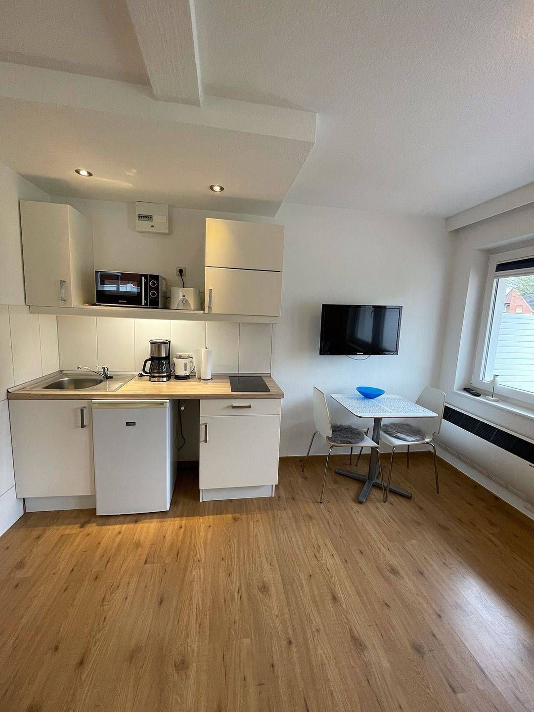 Willkommen in der Ferienwohnung „Feriengarten Büsum - A08”, einem charmanten Rückzugsort für Paare oder kleine Familien, die das maritime Flair der Nordsee erleben möchten. Die Unterkunft befindet sich im Erdgeschoss eines gepflegten Ferienanlagen mit insgesamt nur wenigen Einheiten, wodurch eine ruhige und entspannte Atmosphäre gewährleistet ist. Die Lage ist optimal – nur 600 Meter vom Strand entfernt, können Sie in kürzester Zeit die frische Seeluft genießen und am feinen Sandstrand entspannen. In unmittelbarer Nähe finden Sie zudem Einkaufsmöglichkeiten, die lediglich 200 Meter entfernt sind, sowie ein gemütliches Restaurant in nur 280 Metern Entfernung, wo Sie die regionale Küche probieren können. Die Stadtmitte liegt etwa 850 Meter entfernt und bietet eine Vielzahl an Freizeit- und Einkaufsmöglichkeiten, während der Bahnhof in 1500 Metern erreichbar ist, für Ausflüge in die umliegenden Regionen. Die Ferienwohnung umfasst eine Gesamtfläche von 27 m² und bietet einen optimalen Grundriss für gemütliche Aufenthalte. Der Wohnbereich verfügt über ein bequemes Sofa und einen Esstisch, an dem Sie gemeinsame Mahlzeiten einnehmen können. Die offene Küche ist hervorragend ausgestattet und umfasst einen Kühlschrank, einen Ceran-Herd, einen Wasserkocher, eine Kaffeemaschine, einen Toaster, Geschirr und Besteck sowie Küchenutensilien. Hier können Sie sich selbst versorgen und Ihre kulinarischen Fähigkeiten unter Beweis stellen. Das Schlafzimmer bietet Platz für zwei Personen und sorgt für erholsame Nächte. Das Badezimmer ist modern gestaltet und verfügt über eine Dusche, ein WC sowie ein Waschbecken. Teil der Ausstattung ist auch ein Wäscheservice, falls Sie während Ihres Aufenthaltes frische Handtücher oder Bettwäsche benötigen. Besonders hervorzuheben ist die Terrasse, die den Gästen die Möglichkeit bietet, die Aussicht ins Grüne zu genießen. Hier können Sie entspannt den Tag ausklingen lassen oder den Morgen mit einem Kaffee beginnen. Die gesamte Wohnung ist als Nichtraucherunterkunft konzipiert, was für ein angenehmes Raumklima sorgt. Die „Feriengarten Büsum - A08” ist ideal für Gäste, die die Vorzüge der Nordsee genießen möchten, ohne auf eine komfortable und gut ausgestattete Unterkunft zu verzichten. Ob Sie aktive Stunden am Strand verbringen, die Umgebung erkunden oder einfach nur entspannen möchten – diese Ferienwohnung bietet Ihnen dafür den perfekten Rahmen. Sichern Sie sich Ihren Aufenthalt und erleben Sie unvergessliche Tage an der Nordsee.