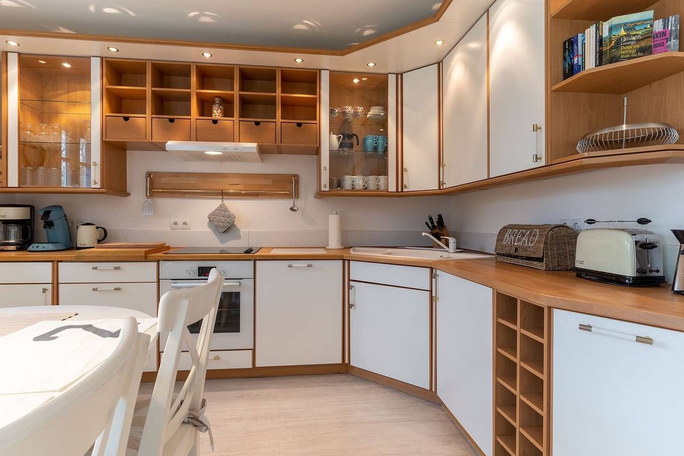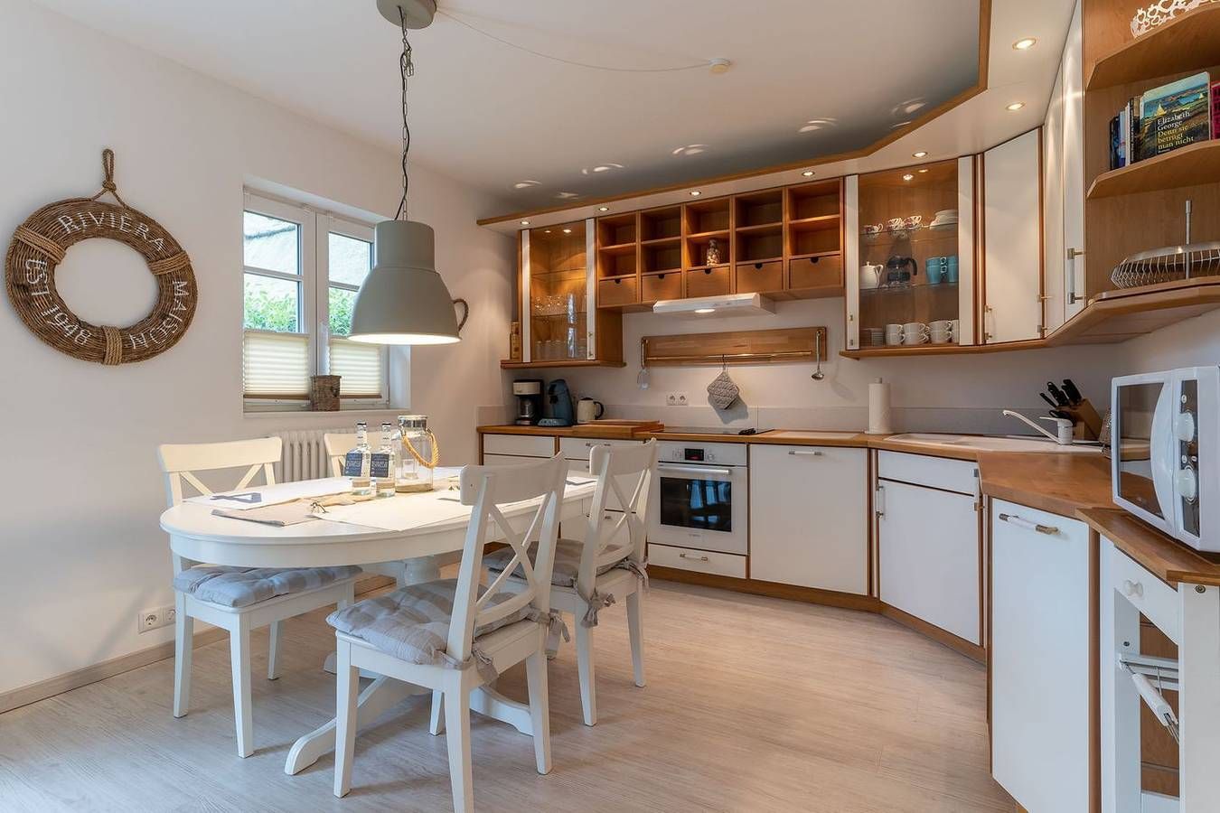 Entdecken Sie eine moderne und barrierefreie 3-Zimmer-Ferienwohnung im Hus op de Dün in St. Peter-Ording. Mit einem eigenen Eingang und Blick in den wunderschönen Garten bietet die Wohnung ein komfortables und erholsames Urlaubserlebnis. Der Wohnbereich mit integrierter offener Küche und Essbereich für bis zu 4 Personen sowie gemütlichem Sofa und Sessel mit Hocker lädt zum Verweilen und Entspannen ein. Zwei separate Schlafzimmer und ein modernes Duschbad mit Regenbrausendusche, Waschbecken und WC sorgen für einen erholsamen Schlaf und erfrischende Dusche am Morgen. Die Wohnung verfügt über eine eigene sonnige Südterrasse mit Terrassenmöbeln, 2 Liegen, einem Sonnenschirm und einem kleinen Garten. Der großzügige, parkähnliche Garten mit Sonnenliegen, Spielplatz, Bänken und Grillplatz steht allen Gästen zur Verfügung und bietet Platz für Entspannung und Erholung. Die Ferienwohnung ist mit hochwertigen Riviera Maison Möbeln ausgestattet, die für eine elegante und gemütliche Atmosphäre sorgen. Das Hus op de Dün ist ein einzigartiges Ferienhaus aus dem Jahr 1832 mit reetgedeckten Dächern und einer liebevoll restaurierten Fassade, das den unvergleichlichen norddeutschen Flair versprüht. Der Ort bietet seinen Gästen Ruhe und Entspannung, in dem sie die Natur genießen, auf den Wegen spazieren gehen oder sich einfach auf einer der zahlreichen Sitzgelegenheiten im Park entspannen können. Ob alleine, zu zweit oder mit der Familie, das Hus op de Dün ist der perfekte Ort für einen erholsamen Urlaub an der Nordsee. Eingangstür (Türbreite 96cm) Schlafzimmer 1 (Türbreite 81cm) 1,8 x 2 m Doppelbett mit 2 einzelnen Matratzen und offenem Fußende, Schlafzimmer 2 (Türbreite 94cm) 1,6 x 2 m Doppelbett mit einer durchgehenden Matratze und offenem Fußende und einem TV bieten Platz für max. 4 Personen ohne Haustiere.