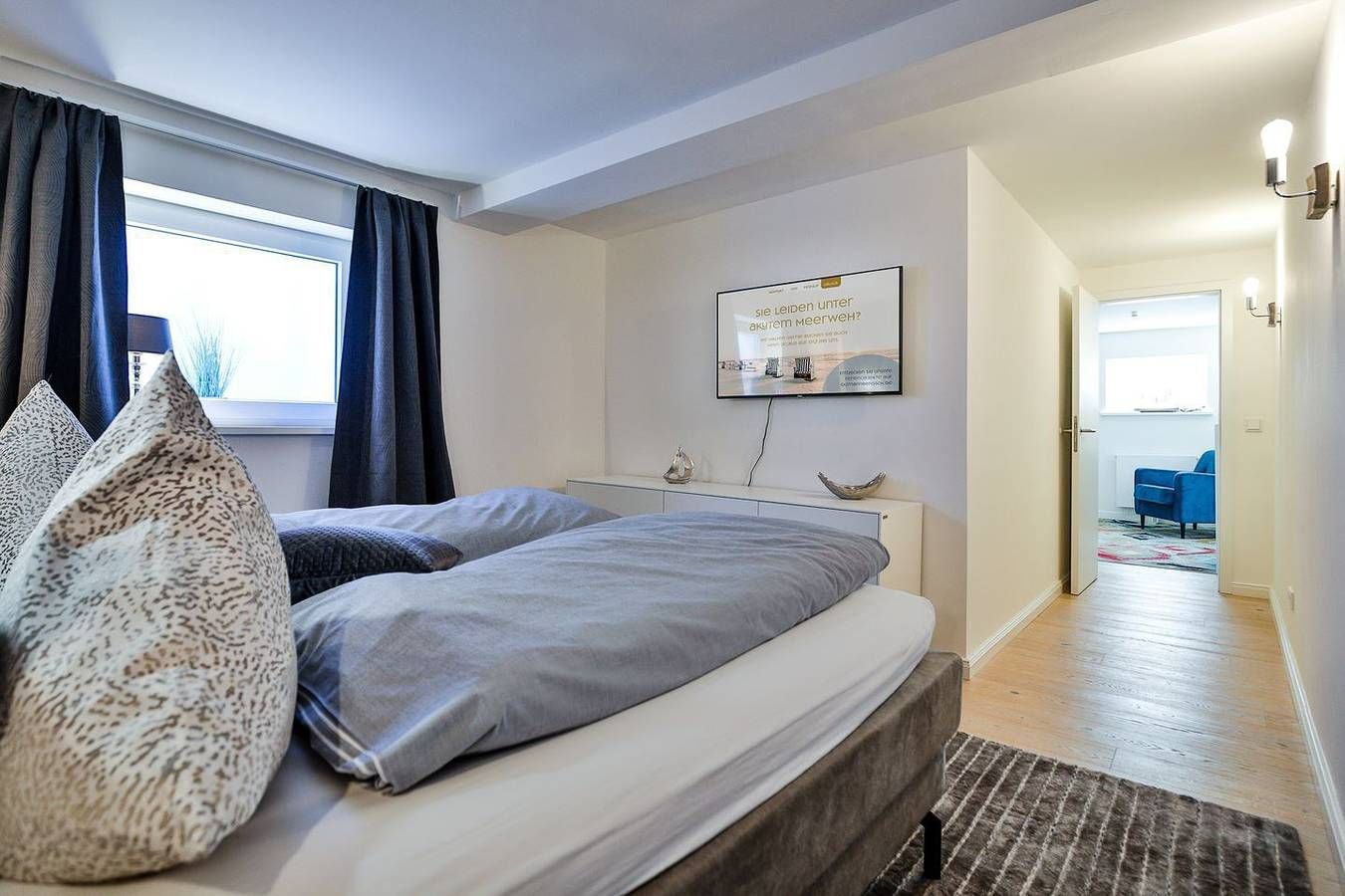 Das Appartement „Beachside“ befindet sich in absoluter Strandnähe und bietet auf seinen rund 80qm Wohnfläche Platz für bis zu 6 Personen. Nach langen Strandspaziergängen können Sie sich in der Sauna, die sich im Bad befindet, aufwärmen. Im Erdgeschoss befindet sich ein hochwertig eingerichteter Wohnbereich mit ausziehbarer Couch, offen gestaltetem Essbereich und voll ausgestatteter Küche. Durch das Wohnzimmer gelangen Sie in den mit Morgensonne durchfluteten Garten mit Essbereich und Liegemöglichkeit. Über eine Treppe gelangen Sie in das Untergeschoss. Das Hell gestaltete Vollbadezimmer besticht neben seiner bodentiefen Dusche mit einer eigenen Sauna für bis zu drei Personen und verfügt ebenso über eine Waschmaschine. Das große Schlafzimmer besteht aus einem Doppel-Boxspringbett, Einbauschränken sowie einem TV. Ein weiteres Schlafzimmer verfügt über ein neues Boxspringbett und ebenfalls über hochwertige Einbauschränke. Alle Räume verfügen über helle Tageslichtschächte. Die Preise gelten für eine Belegung mit bis zu 2 Personen. Für jede weitere Person werden 10,00 € pro Tag berechnet. Die Schwimmbadhalle im Gartenbereich der Anlage steht zurzeit wegen Renovierungsarbeiten leider nicht zur Verfügung. Es gibt aber eine tolle Alternative mit Bade- und Wellnesslandschaft in der Sylter Welle, fast vor der Haustüre, nur ein paar Schritte entfernt.