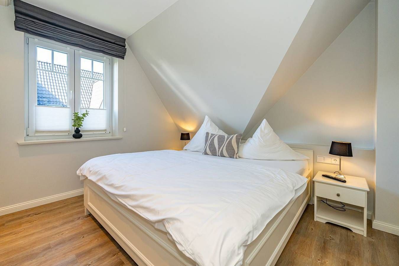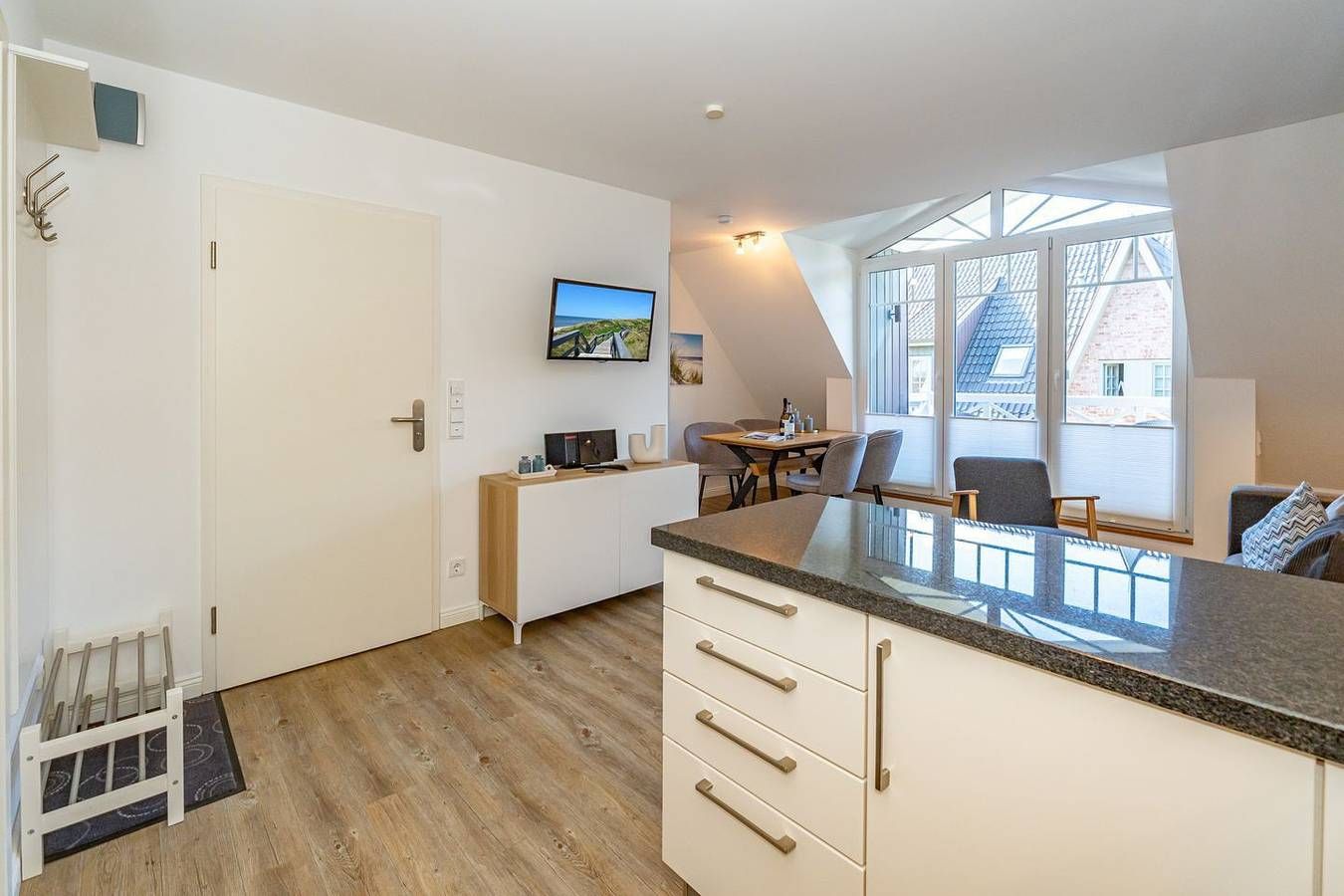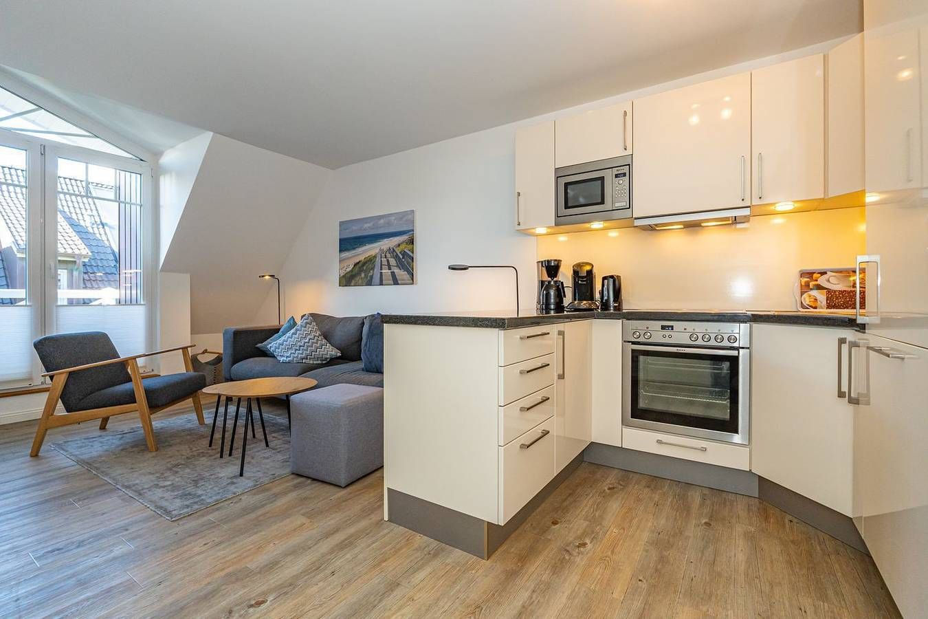 Diese 3-Zimmer-Ferienwohnung (ca. 77 qm) in einem kleinen Ferienhaus mit sechs Wohneinheiten liegt an der Ortsgrenze von Westerland zu Wenningstedt. Ein Bäcker, ein Lebensmittelgeschäft, ein Fahrradverleih und eine Bushaltestelle sind fußläufig sehr gut zu erreichen. Im 1 OG erwartet Sie ein moderner Wohn- / Essbereich mit TV von wo Sie Zugang zum Westbalkon haben, wo Sie auch noch am Nachmittag die Sonne genießen können. Ein Schlafzimmer mit gemütlichen Doppelbett (180 x 200 cm) und ein Badezimmer mit Wanne, Dusche, WC und Waschtrockner befinden sich ebenfalls auf dieser Ebene, genauso wie die moderne, offene Küche. Über eine Treppe gelangen Sie in das Dachgeschoss. Dort befindet sich das zweite Schlafzimmer mit Kojenbett (160 x 200 cm) und das angrenzende, kleine Badezimmer mit WC und Waschtisch. Beide Schlafzimmer verfügen über einen Fernseher. In der Ferienwohnung sind hochwertige, weiße Tischlereinbauten vorhanden für viel Stauraum. Ein Pkw-Stellplatz befindet sich am Haus. Tiere sind in dieser Ferienwohnung nicht erlaubt. Die Ferienwohnung nimmt am Partner Programm Sylt Go Mobility teil, das heißt Sie erhalten die Busfahrkarten gratis dazu. Sie können damit während Ihres Aufenthaltes über die gesamte Insel fahren.