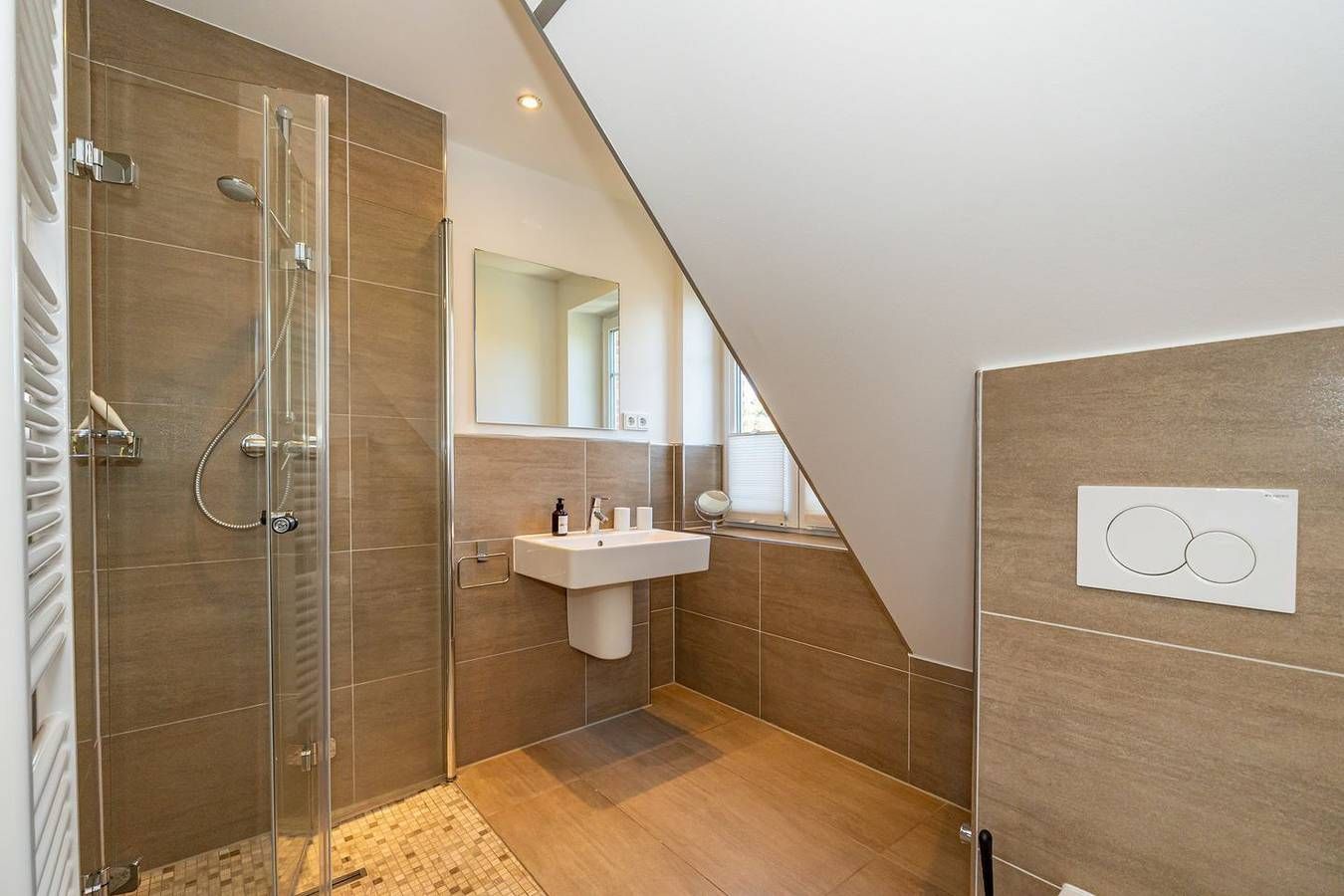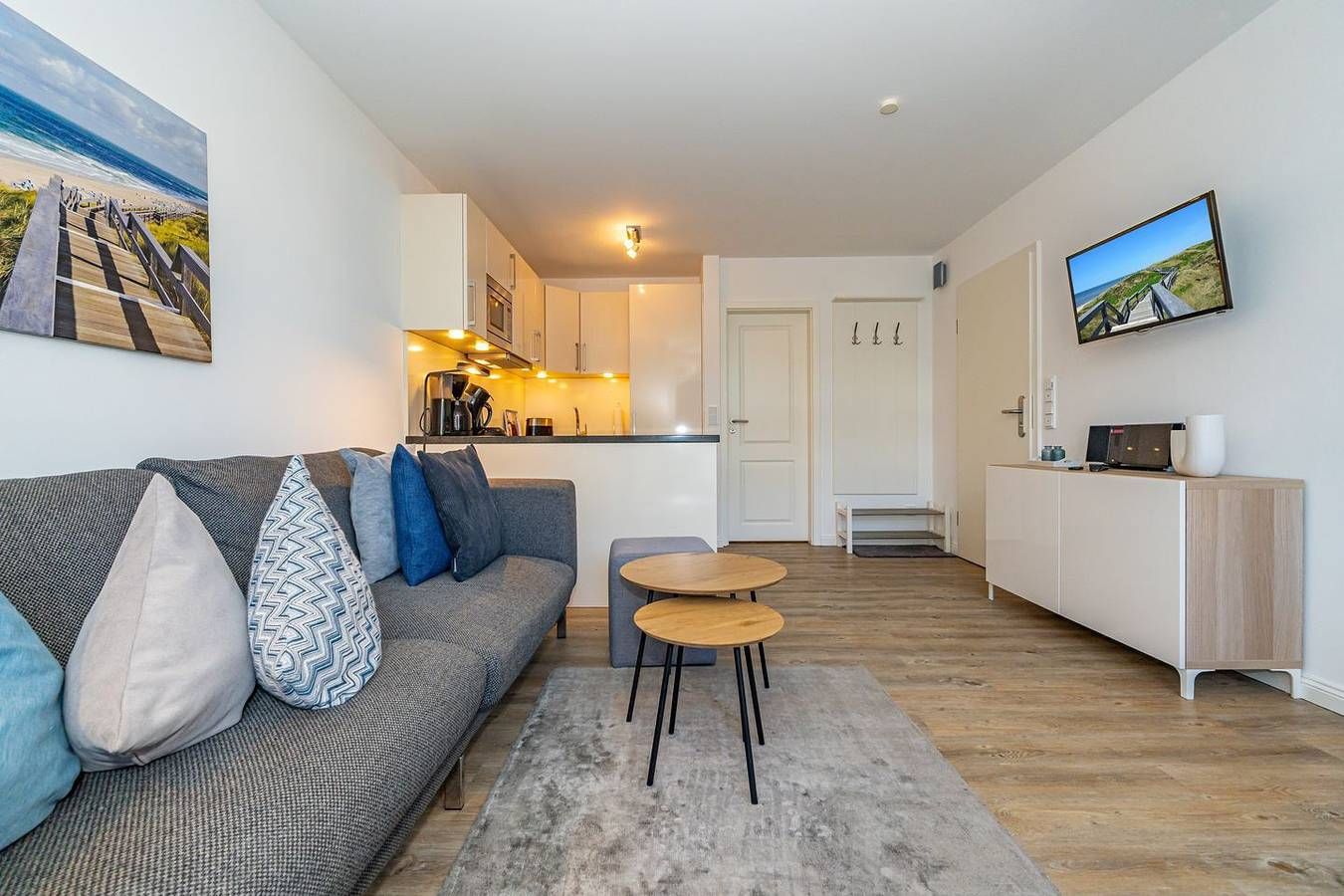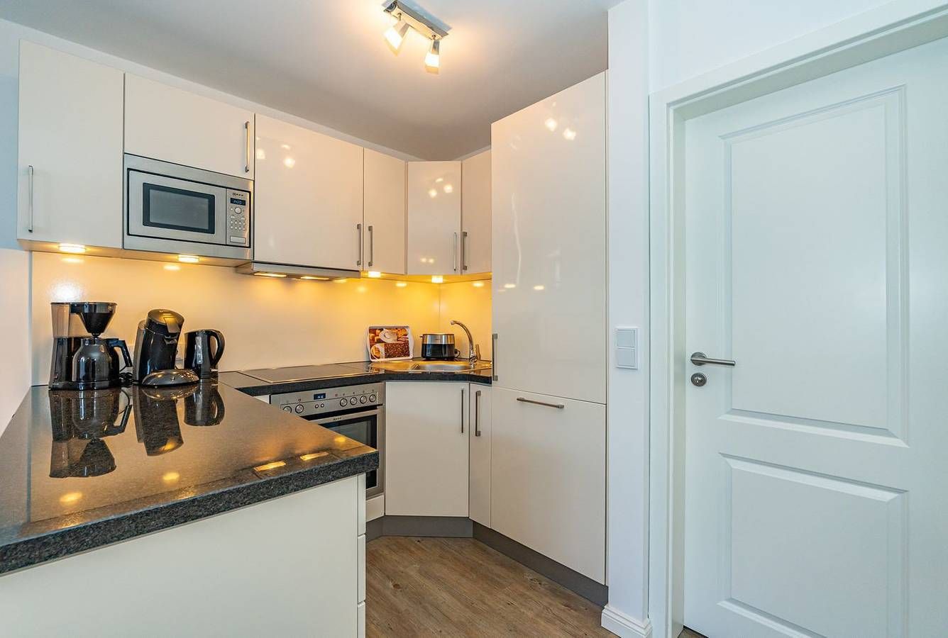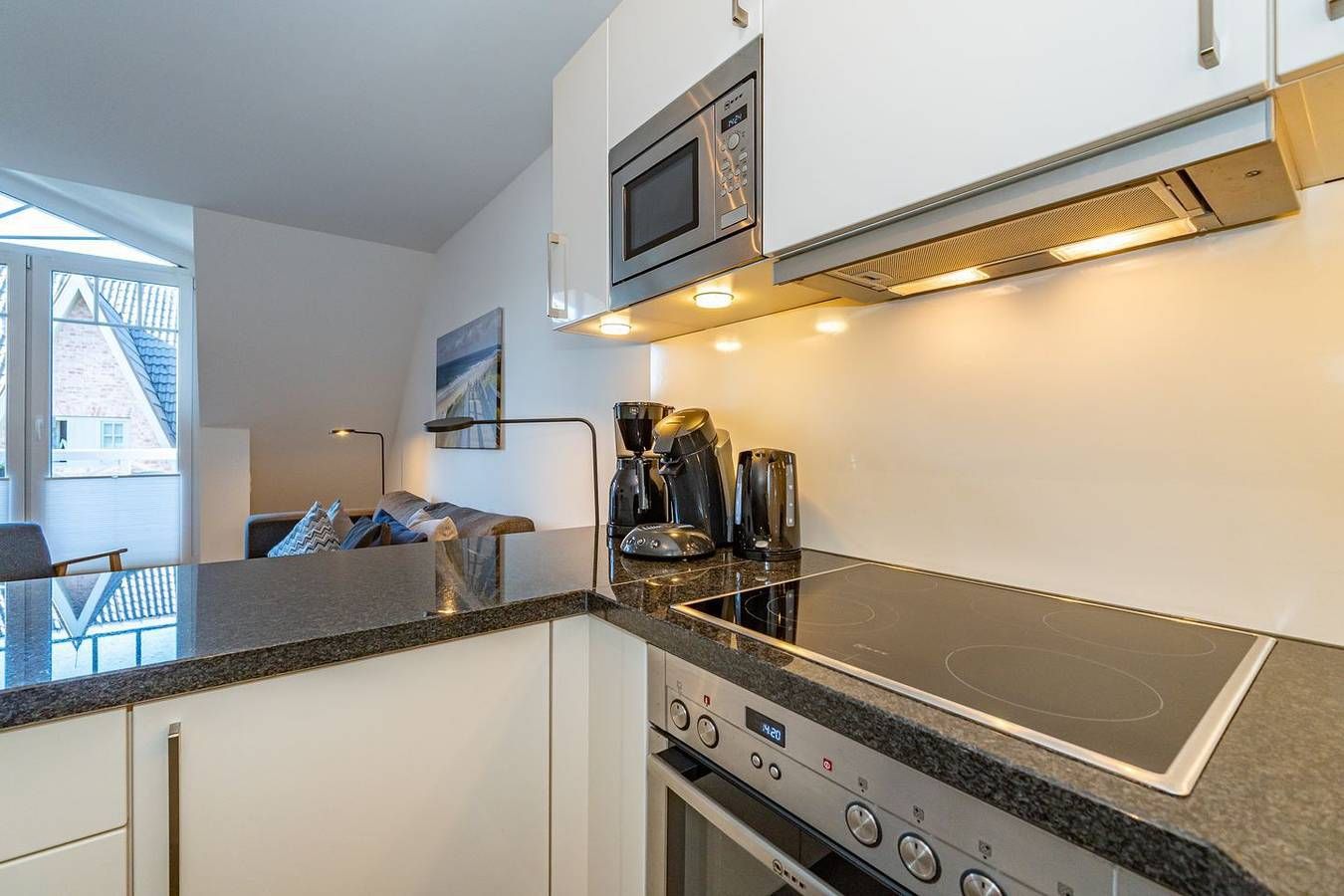 Diese 3-Zimmer-Ferienwohnung (ca. 77 qm) in einem kleinen Ferienhaus mit sechs Wohneinheiten liegt an der Ortsgrenze von Westerland zu Wenningstedt. Ein Bäcker, ein Lebensmittelgeschäft, ein Fahrradverleih und eine Bushaltestelle sind fußläufig sehr gut zu erreichen. Im 1 OG erwartet Sie ein moderner Wohn- / Essbereich mit TV von wo Sie Zugang zum Westbalkon haben, wo Sie auch noch am Nachmittag die Sonne genießen können. Ein Schlafzimmer mit gemütlichen Doppelbett (180 x 200 cm) und ein Badezimmer mit Wanne, Dusche, WC und Waschtrockner befinden sich ebenfalls auf dieser Ebene, genauso wie die moderne, offene Küche. Über eine Treppe gelangen Sie in das Dachgeschoss. Dort befindet sich das zweite Schlafzimmer mit Kojenbett (160 x 200 cm) und das angrenzende, kleine Badezimmer mit WC und Waschtisch. Beide Schlafzimmer verfügen über einen Fernseher. In der Ferienwohnung sind hochwertige, weiße Tischlereinbauten vorhanden für viel Stauraum. Ein Pkw-Stellplatz befindet sich am Haus. Tiere sind in dieser Ferienwohnung nicht erlaubt. Die Ferienwohnung nimmt am Partner Programm Sylt Go Mobility teil, das heißt Sie erhalten die Busfahrkarten gratis dazu. Sie können damit während Ihres Aufenthaltes über die gesamte Insel fahren.