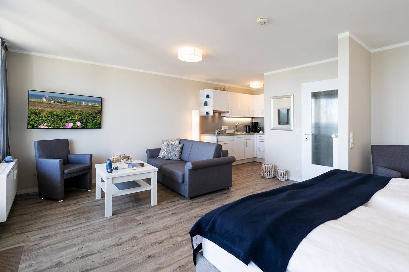 Das moderne 1-Zimmer App. "Wattenblick" für bis zu 2 Personen zeichnet sich durch seine direkte Strandlage sowie einen traumhaften Panorama-Meerblick über das Lister Watt aus. Der großzügige Wohn- und Schlafbereich inkl. Essecke bietet Ihnen eine Kombination aus hochwertiger Ausstattung und höchstem Komfort. Genießen Sie den einzigartigen Blick sowie die Ruhe vom angrenzenden Frühstücksbalkon. Die Küchenzeile samt Geschirrspüler ist voll ausgestattet. Das Badezimmer verfügt über eine Dusche. Ein PKW-Stellplatz sowie WLAN stehen Ihnen kostenfrei zur Verfügung. Haustiere sind erlaubt. Der Fahrstuhl des Apartmenthauses ist über wenige Treppenstufen erreichbar. Hinweis: Wäschepakete (Bettbezüge und Handtücher) sind nicht im Preis inkludiert und können gegen eine Gebühr optional dazu gebucht werden.