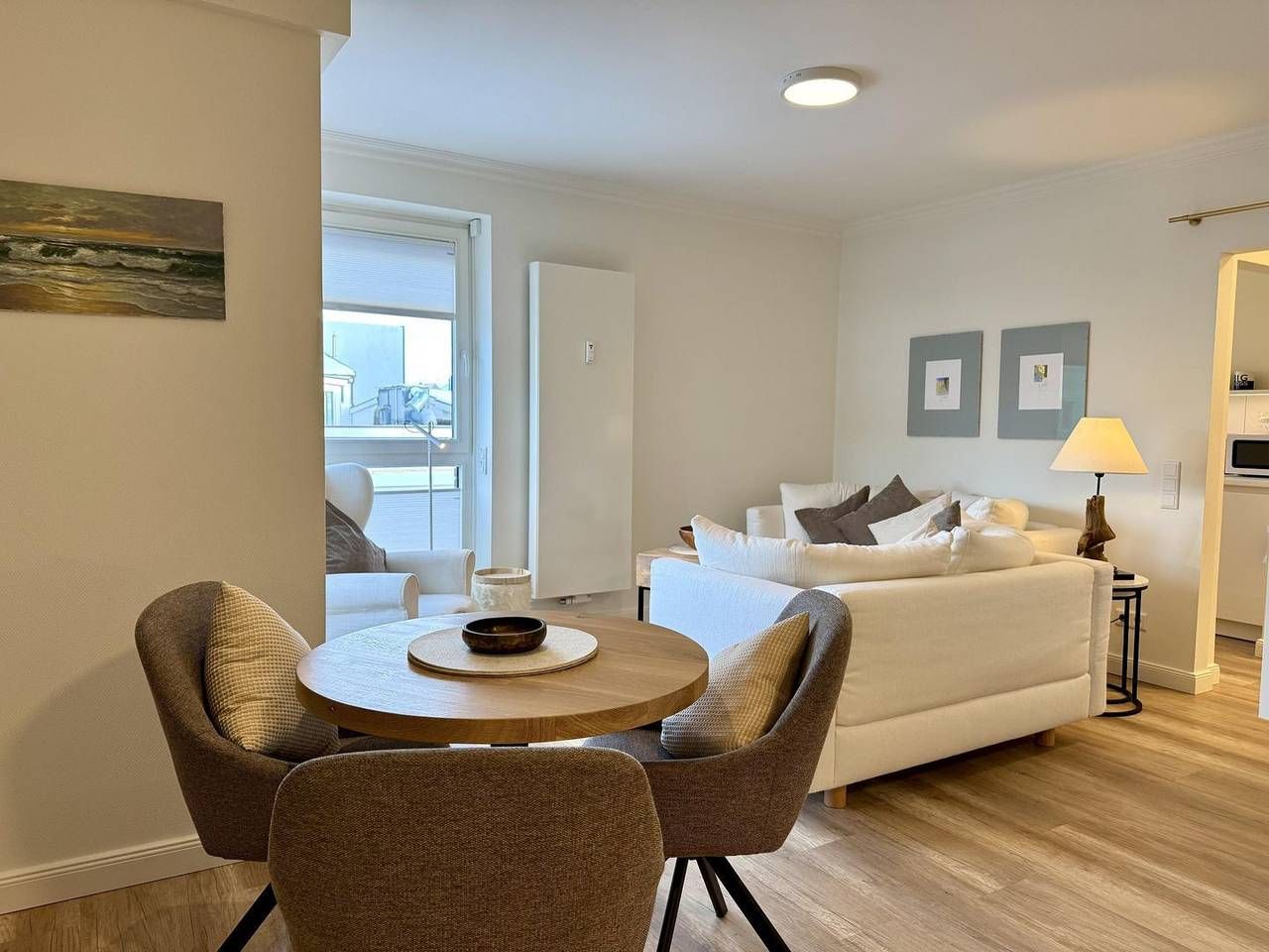 Utkiek ‒ Zentrales App. für bis zu 3 Personen in strandnaher Lage Das ca. 40 m² große Apartment "Utkiek" bietet Platz für 2 Personen (+ Kind) und liegt in idealer Lage ‒ direkt im Stadtzentrum und nur wenige Gehminuten vom Strand entfernt. Die Unterkunft befindet sich in einem gepflegten Haus mit Fahrstuhl und ist auch fußläufig vom Bahnhof bequem erreichbar. Das Apartment verfügt über einen großzügigen Wohn- und Schlafbereich inkl. Doppelbett (160x200 cm) sowie einer Schlafcouch (140 x 200 cm), die sich im Handumdrehen in eine zusätzliche Schlafgelegenheit für ein Kind verwandeln lässt. Der Wohn- und Essbereich ist hell und modern eingerichtet und bietet Zugang zum Balkon, auf dem Sie gemütlich frühstücken oder den Abend ausklingen lassen können. Für Ihre Selbstverpflegung steht Ihnen eine kleine Küche zur Verfügung, ausgestattet mit allen wichtigen Utensilien ‒ bitte beachten Sie, dass kein Backofen vorhanden ist. Ein hochwertiges Duschbad rundet das Angebot ab. Nutzen Sie gerne das kostenfreie WLAN sowie den Tiefgaragenstellplatz (max. Einfahrtshöhe 1,92 m). Ein Haustier ist erlaubt. Ob Strandspaziergänge, Einkaufsbummel oder kulinarische Entdeckungen ‒ von hier aus erreichen Sie alles bequem zu Fuß. Das "Utkiek" ist ideal für Paare, Freunde oder kleine Familien, die erholsame Tage auf Sylt verbringen möchten. Hinweis: Wäschepakete (Bettbezüge und Handtücher) sind nicht im Preis inkludiert und können gegen eine Gebühr optional dazu gebucht werden.