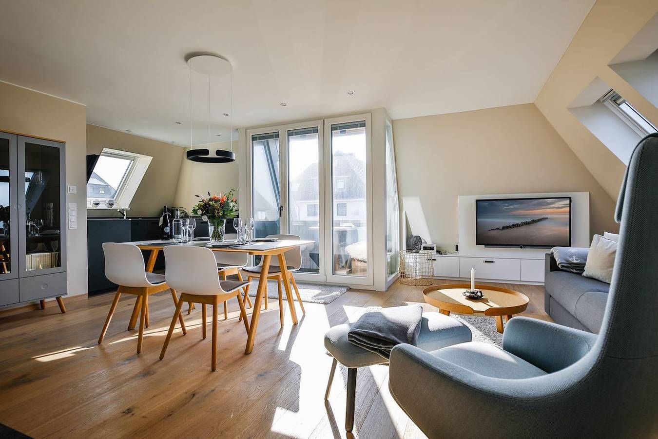 Modernes Neubauappartement in perfekter Lage auf einem Dünenkamm im Hörnumer Norden mit Meerblick. Das Appartement wurde vom Deutschen Tourismus Verband mit 5-Sternen klassifiziert. Die 70qm Wohnfläche verteilen sich auf zwei...