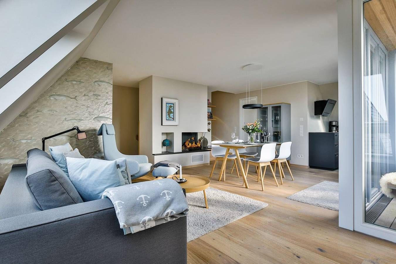 Modernes Neubauappartement in perfekter Lage auf einem Dünenkamm im Hörnumer Norden mit Meerblick. Das Appartement wurde vom Deutschen Tourismus Verband mit 5-Sternen klassifiziert. Die 70qm Wohnfläche verteilen sich auf zwei Etagen und bieten jeglichen Komfort für einen erholsamen Urlaub. Großzügiger, hochwertig eingerichteter Wohnbereich mit integrierter, modern ausgestatteter Küche und gemütlichem Essbereich. Der lichtdurchflutete Wohnbereich verfügt zudem über ein Gaskamin und direktem Zugang zum sonnigen Balkon mit Meerblick. Von hier aus können Sie spektakuläre Sonnenuntergänge mit einem Glas Wein genießen. Das moderne Tageslichtbad bietet neben einer ebenerdigen Regendusche, eine Sauna die für eine besondere Urlaubsentspannung sorgt. Über eine gut begehbare Trappe gelangen Sie in den modern gestalteten Schlafbereich, ausgestattet mit hochwertigen Einbauschränken, Doppelbett, TV und Meerblick. Auch von hier haben Sie rund rum eine wunderschöne Aussicht. Zusätzlich zum Balkon steht Ihnen sowohl an der Unterkunft als auch am Strand ein kostenfreier Saisonstrandkorb zur Verfügung. Der Gemeinschaftskeller verfügt über eine Waschmaschine sowie einen Trockner. Selbstverständlich steht Ihnen kostenfreies W-LAN sowie ein kostenfreier Parkplatz vor der Unterkunft zur Verfügung.