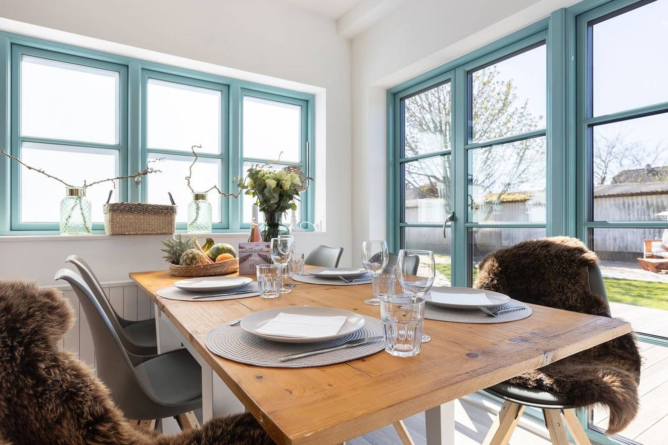 Unser charmantes Ferienhaus bietet Ihnen alles, was Sie für eine erholsame Auszeit brauchen. Stilvoll eingerichtet und mit viel Liebe zum Detail gestaltet, lädt es zum Entspannen und Wohlfühlen ein. Der lichtdurchflutete Wohn- und Essbereich bildet das Herzstück des Hauses. Die offene Küche, hochwertig ausgestattet inklusive Nespresso-Maschine, macht das gemeinsame Kochen zum Vergnügen. Warme Naturtöne, rustikale Holzelemente und harmonisch abgestimmte Farben verleihen dem gesamten Haus eine einladende Atmosphäre. Dank dimmbarer Beleuchtung können Sie jederzeit die perfekte Stimmung schaffen. Auf der gemütlichen Sofalandschaft lässt es sich herrlich entspannen, während der angrenzende Essbereich zum geselligen Beisammensein einlädt – mit direktem Blick auf die sonnige Süd-/West-Terrasse. Durch Sichtschutzelemente genießen Sie hier Ruhe und Privatsphäre. Der komplett umzäunte Garten ist ein Paradies für Hundebesitzer: Ihr Vierbeiner kann sorglos herumtollen, während Sie die Sonne genießen oder ein gutes Buch lesen. Die weitläufige Grünfläche lädt außerdem zum Sonnenbaden und Abschalten ein. Ebenso steht Ihnen eine eigene Sauna zur Verfügung. Im Erdgeschoss erwartet Sie ein stilvolles Schlafzimmer mit komfortablem Doppelbett sowie ein modernes Bad mit bodentiefer Dusche. Zwei weitere gemütliche Schlafzimmer befinden sich im Obergeschoss – eines davon mit besonderem Charme dank durchdachter Bauweise und geschickt platzierten Fenstern. Auch hier steht Ihnen ein weiteres Badezimmer mit Dusche zur Verfügung. Freuen Sie sich auf einen unvergesslichen Aufenthalt in unserem liebevoll gestalteten Ferienhaus – eine perfekte Mischung aus Komfort, Stil und Erholung. Wir heißen Sie herzlich willkommen!