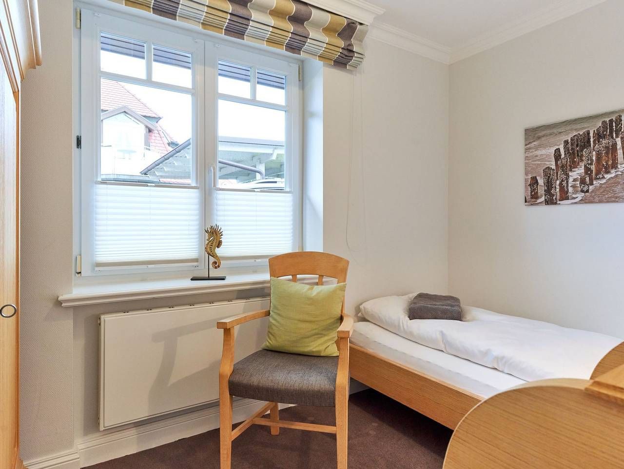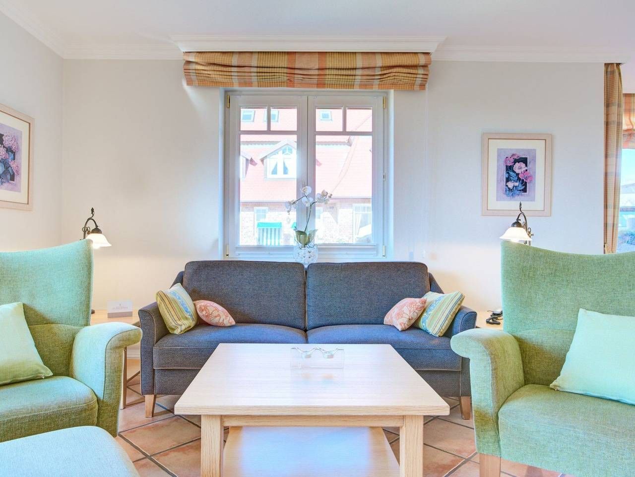 Diese ca. 75 m² Ferienwohnung ist für bis zu 5 Personen. Angekommen in der modernen Wohnung, erwartet Sie das helle, lichtdurchflutete Wohnzimmer mit der komplett ausgestatteten Küche. Zwei Doppelbettschlafzimmern, ein Schlafzimmer mit Einzelbett, und ein begehbarer Kleiderschrank. Zwei Badezimmer, einmal mit Wanne, Doppelwaschbecken und WC und ein Duschbad mit WC. Auch eine Terrasse mit Strandkorb und Gartenmöbeln steht Ihnen zur Verfügung. Unser Wellnessbereich mit Schwimmbad, Dampfsauna und finnischer Sauna, verschiedenen Duschen sowie Fitnessraum und Hydrojet - laden zum Verweilen und Entspannen ein. ACHTUNG! In dieser Wohnung befindet sich mittlerweile Designboden. Die Fotos mit dem Teppichboden sind nicht mehr aktuell. Sie wohnen in zentraler Lage in der Inselmetropole Westerlands und finden alle interessanten Ziele direkt vor der Haustür. Genießen Sie die schönsten Sandstrände. Die Fußgängerzone mit unzähligen Shoppingmöglichkeiten. Schlemmen Sie in den feinsten Gourmettempeln oder gönnen Sie sich ein leckeres Fischbrötchen auf die Hand. Konzerte, Veranstaltungen, sportliche Highlights - Sie haben die Wahl und wir die passende Unterkunft.