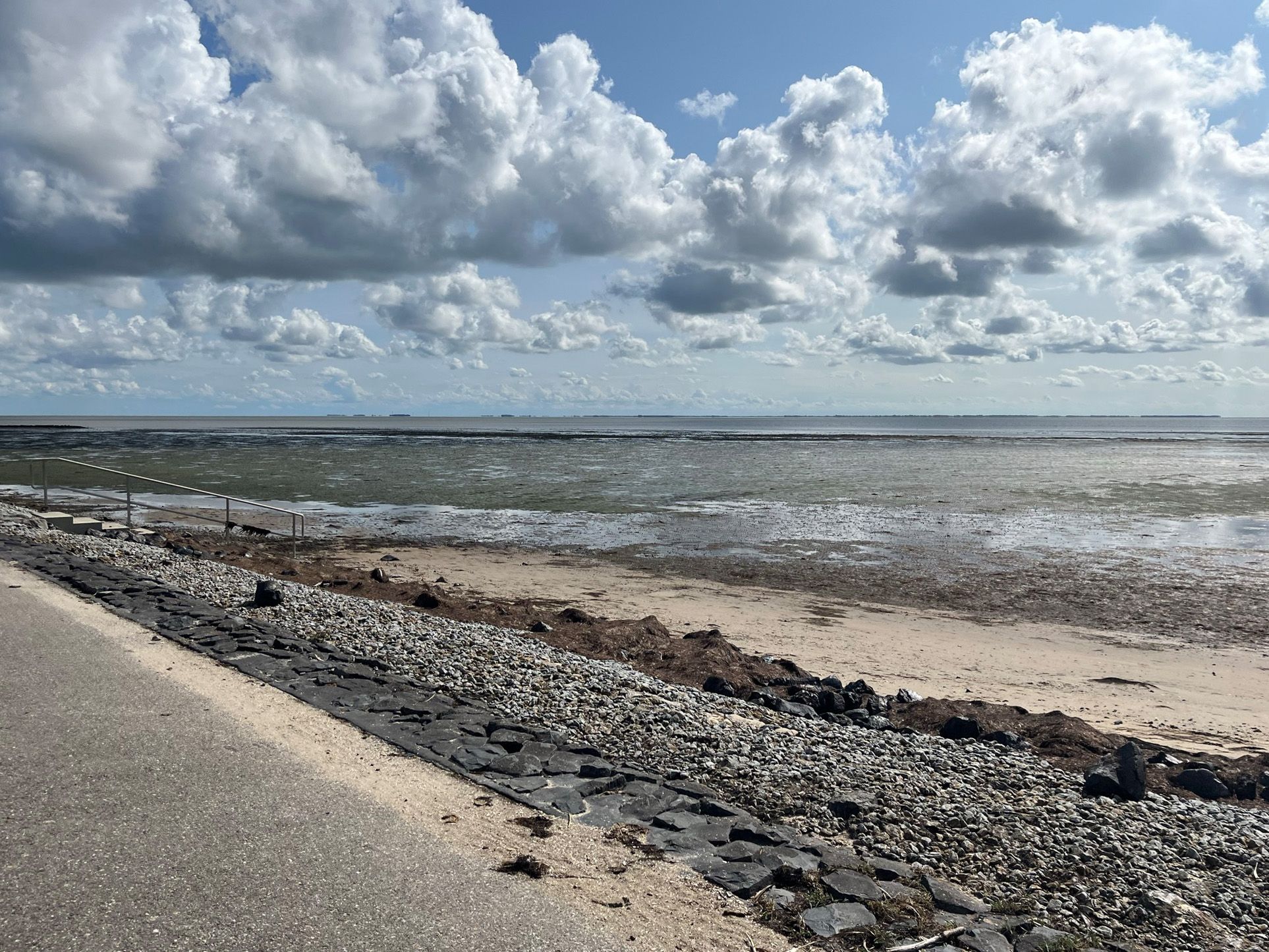 Die Badestelle in Morsum liegt direkt hinter dem Deich. Bei Hochwasser kannst du hier in idyllischer Atmosphäre baden. Besonders schön beim Baden ist der Blick über das Wattenmeer bis Hörnum und Rantum. Zum Entspannen stehen Strandkörbe und Picknickbänke auf dem Deich. Damit deine Sachen nicht von den Schafen beschädigt werden können, sind Zäune aufgebaut.