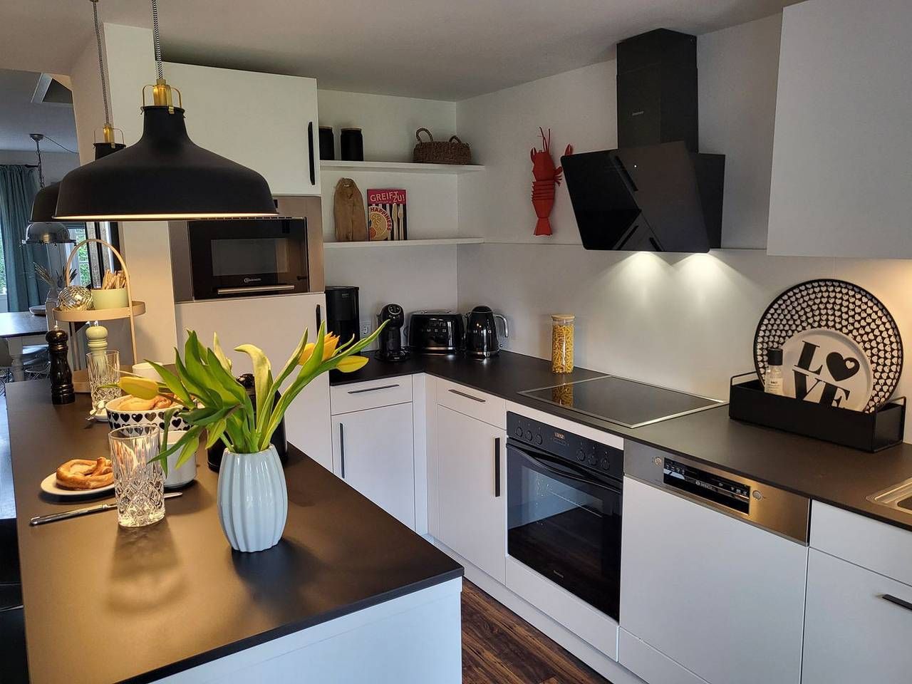 Reetdachanlage "Mühlenhof 4" Die 112m² große, sehr hochwertige 4-Zimmer Ferienwohnung im Beach House Look erstreckt sich vom Erdgeschoss aus über zwei Ebenen und bietet bis zu 6 Personen sowie Kleinkind Platz für einen unvergesslichen Urlaub in St. Peter Ording. Durch die Lage und Ausstattung eignet sich die Ferienwohnung nicht nur wunderbar für den Familienurlaub, sondern auch für den Urlaub mit Freunden oder mehreren Generationen besonders gut. Auch der Urlaub mit Hund in St. Peter Ording ist hier möglich! Durch den Übergang zur Terrasse wirkt der modern und lebendig gestaltete Wohnraum wunderbar hell und einladend. Durch die Holzsprossenfenster bietet sich ein toller Ausblick auf den Garten und das Reetdach. Hier steht eine hochwertige Ledercouch samt Ledersessel zur Verfügung. Am großen Esstisch ist Platz für die gesamte Familie - hier kann gemütlich gegessen, gespielt und beisammen gesessen werden. Eine Auswahl an Gesellschaftsspielen steht bereit und für die multimediale Unterhaltung sorgen ein großer Smart-TV und kostenfreies W-LAN. Die angrenzende, offene Küche ist vollumfassend ausgestattet. Hier gehören unter anderem Cerankochfeld und Backofen, ein großer Kühlschrank mit Gefrierfach sowie Geschirrspüler und Mikrowelle zur Ausstattung. Eine Kaffeemaschine für klassischen Filterkaffe ist ebenso vorhanden wie eine NESCAFÉ Dolce Gusto Kapselmaschine. Ein Tresen mit 4 Barhockern sorgt für ein besonders einladendes Feeling. Im Erdgeschoss ist weiterhin ein modernes Gäste-WC vorhanden. Im Obergeschoss stehen zwei große, modern eingerichtete Schlafzimmer zur Verfügung. Beide sind mit großen 180x200cm Doppelbetten sowie großzügigen Kommoden und Kleiderschränken ausgestattet. Im ersten Schlafzimmer steht ein Kindergitterbettchen zur Verfügung, der Raum hat einen eigenen Zugang zum Badezimmer mit bodengleicher Dusche und WC. Weiterhin steht hier ein Safe für Wertsachen zur Verfügung. Im zweiten Schlafzimmer ist ein weiterer Smart-TV vorhanden. Zum Obergeschoss gehört noch ein weiteres Badezimmer, welches ebenfalls mit bodengleicher Dusche und WC ausgestattet ist. Im super gemütlichen Dachgeschoss steht in der Galerie ein weiteres komfortables 180x200cm Doppelbett zur Verfügung. Ein Kickertisch bietet kurzweilige Unterhaltung für die Kids. Wichtige Informationen: Hochwertige Ausstattung und Einrichtung - kostenfrei gestellt werden ein Kinderhochstuhl und ein Kinderbett exkl. Wäsche und Matratze, jeder weitere Kinderhochstuhl oder Kinderbett können kostenpflichtig hinzugebucht werden. PKW-Stellplatz, W-LAN, Fahrradständer, ein Hund willkommen. Strandkorb vorhanden. Waschmaschine, Trockner und Bügelzubehör im Gemeinschaftswaschhaus vorhanden. Familienfreundlich, kinderfreundlich, hundefreundlich. Grillen und offenes Feuer wegen des Reetdaches verboten.