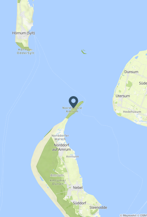Von der Nordspitze der Odde ist die Insel Föhr sowie der Leuchtturm in Hörnum auf Sylt bei günstigen Wetterbedingungen sichtbar.