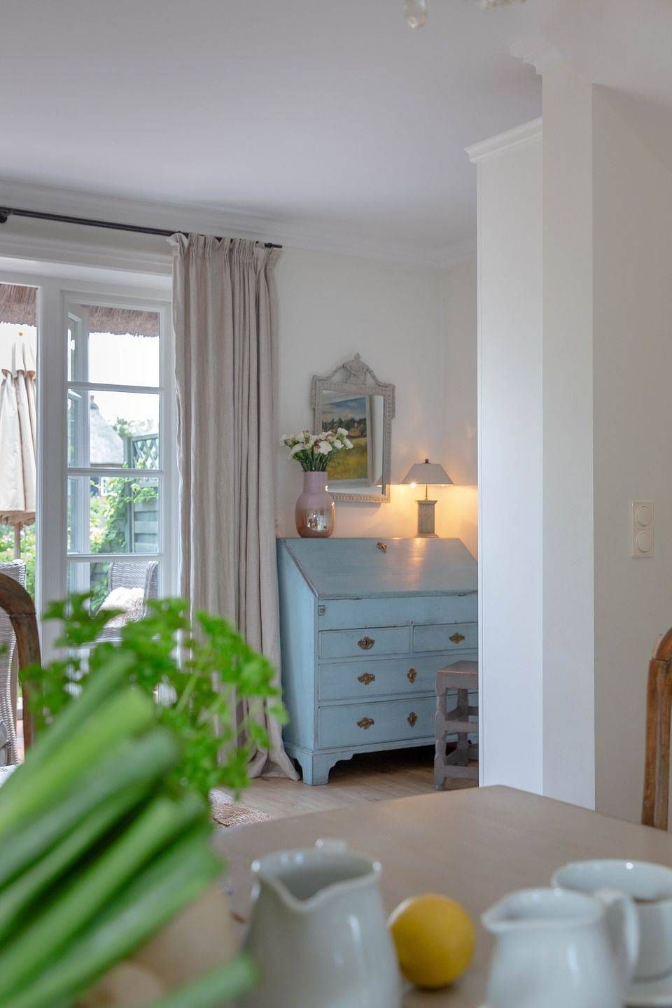 Die mit viel Liebe zum Detail eingerichtete Wohnung erstreckt sich über 2 Ebenen. Sie bietet auf 65qm Wohlfühlambiente für bis zu 4 Personen. Es erwartet Sie ein stilvoll eingerichteter Wohnraum mit voll ausgestatteter Küchenzeile. Die weiß gestrichenen alten Holzbalken sowie der gelungene Mix mit Antiquitäten schaffen auf Anhieb eine heimelige Atmosphäre. Vom Wohnraum aus gelangen Sie direkt auf die eigene mit Gartenmöbeln bestückte Terrasse. Im Souterrain befinden sich die beiden hellen und gemütlichen Schlafzimmer. Eines davon ist mit einem Doppelbett (1,80m x 2,00m) ausgestattet. Das zweite mit einem französischen Bett (1,60m x 2,00m). Auch das moderne, großzügige Wannenbad liegt auf dieser Etage. Gratis W-Lan sowie ein PKW-Stellplatz direkt vor der Tür runden dieses Angebot ab.