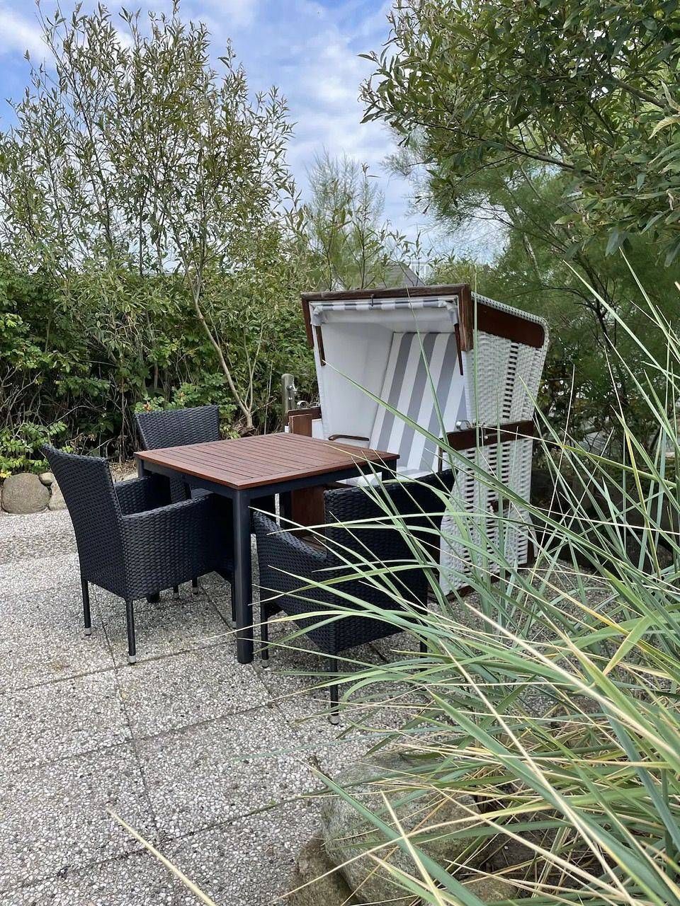 Willkommen im Haus Schössler Wohnung 1, einem charmanten Rückzugsort in Hörnum auf der malerischen Insel Sylt. Diese komfortable Ferienunterkunft bietet Ihnen mit einer großzügigen Fläche von 45 m² alles, was Sie für einen erholsamen Aufenthalt am Meer benötigen. In dieser Wohnung finden bis zu vier Personen Platz, was sie ideal für Familien oder Paare macht. Die Unterkunft ist allergikergeeignet und als Nichtraucherwohnung konzipiert, damit Sie sich rundum wohlfühlen können. Die Wohnung besteht aus zwei Zimmern, inklusive einem gemütlichen Schlafzimmer und einem lichtdurchfluteten Wohnzimmer mit einer komfortablen Sofaecke. Hier können Sie entspannen und sich zurücklehnen, während das Wohnzimmer mit einem TV-Anschluss über Satellit ideal ist, um abends Ihren Lieblingsfilm zu genießen. Die offene Küche ist vollständig ausgestattet und umfasst alle modernen Annehmlichkeiten wie einen Herd mit Ceranfeld, einen Backofen, einen Kühlschrank, eine Mikrowelle, eine Spülmaschine sowie eine Kaffeemaschine und einen Wasserkocher. Der Essbereich mit einem Esstisch lädt zu geselligen Mahlzeiten ein, während die Terrasse mit Gartenmöbeln der perfekte Ort ist, um die frische Meeresbrise zu genießen oder einfach zu entspannen. Für Ihr Wohlbefinden sorgt das Badezimmer mit einer Dusche, die auch als Wanne genutzt werden kann – ideal für entspannende Bäder nach einem langen Tag am Strand. Zur zusätzlichen Ausstattung gehören praktische Annehmlichkeiten wie eine Waschmaschine, ein Trockner, Staubsauger und ein Feuermelder, so dass Sie in dieser Wohnung alle Vorzüge eines modernen Zuhauses genießen. Das Haus Schössler bietet Ihnen nicht nur ein behagliches Ambiente, sondern auch eine hervorragende Lage. Nur 150 Meter trennen Sie vom schönen Sandstrand, der zahlreiche Freizeitmöglichkeiten wie Schwimmen, Surfen und Beachvolleyball bietet. In der Umgebung finden Sie auch hervorragende Wandermöglichkeiten sowie Radwege für die Erkundung der malerischen Landschaft. Restaurants und Einkaufsmöglichkeiten sind ebenfalls schnell zu erreichen, nur 150 bis 250 Meter entfernt, sodass Sie bequem die kulinarischen Freuden der Insel entdecken können. Für Golfbegeisterte ist der Golfplatz nur 300 Meter von der Unterkunft entfernt. Die hervorragende Anbindung an den öffentlichen Nahverkehr mit einer Haltestelle in nur 150 Metern Entfernung und die Nähe zur Fähre machen eine Anreise unkompliziert. Auch die Anbindung an den Flughafen ist zügig, mit einer Entfernung von nur 18 Kilometern. Das Haus Schössler Wohnung 1 ist der perfekte Ort für einen unvergesslichen Urlaub auf Sylt, wo Sie die Schönheit der Insel genießen und erholsame Tage verbringen können. Sichern Sie sich Ihren Aufenthalt in dieser einzigartigen Ferienunterkunft und erleben Sie unvergessliche Momente in Hörnum.
