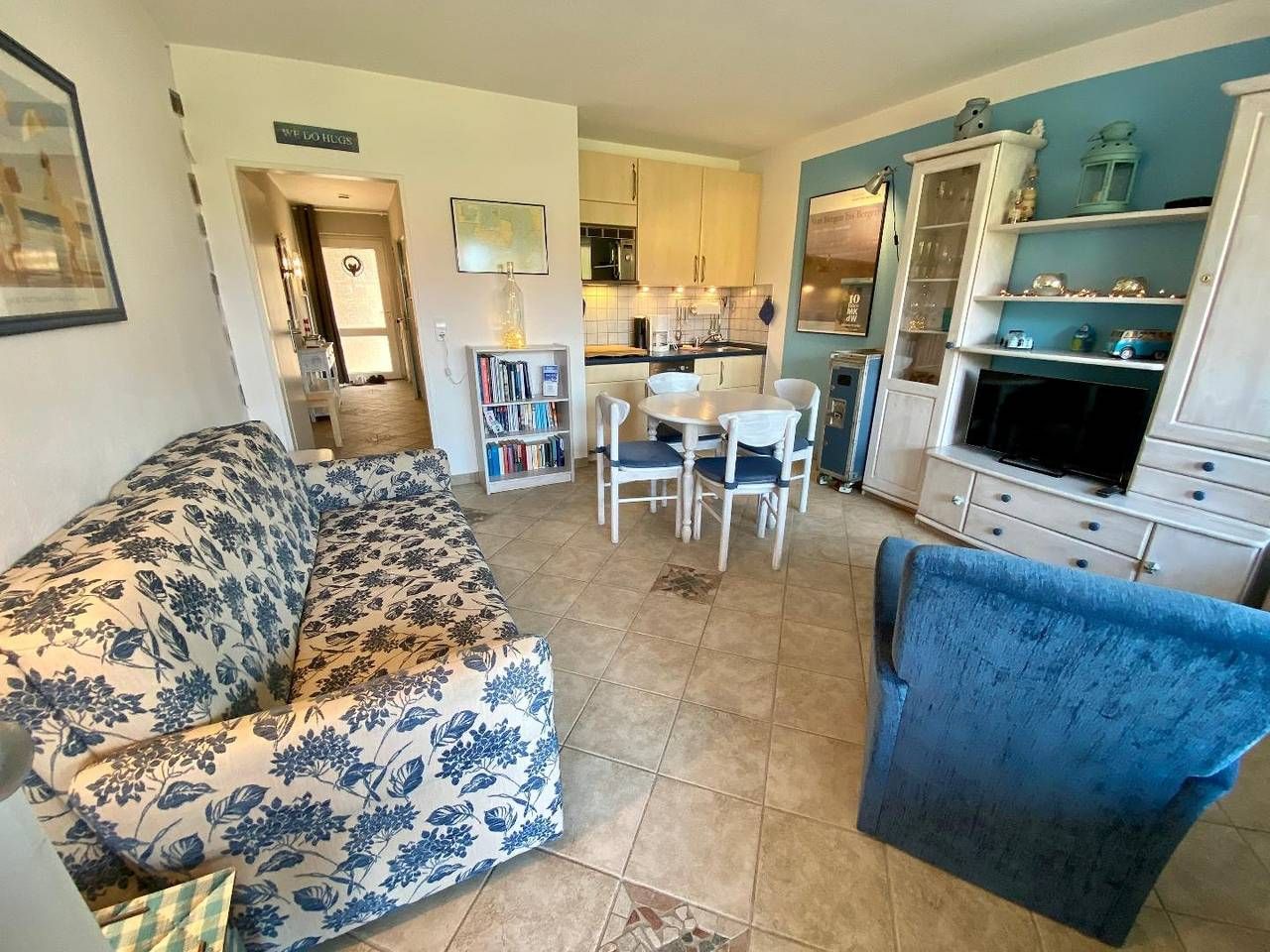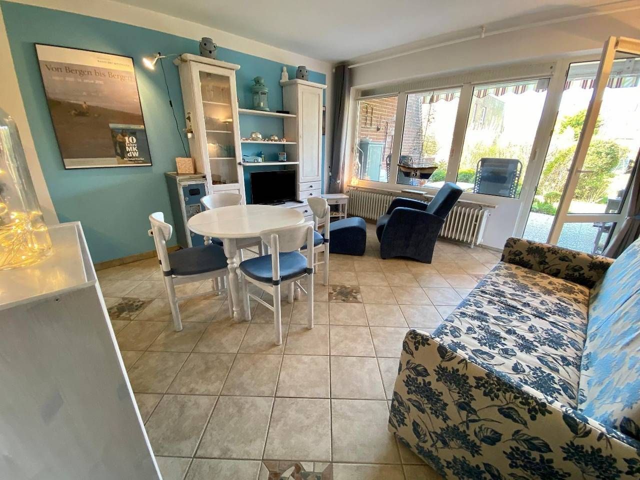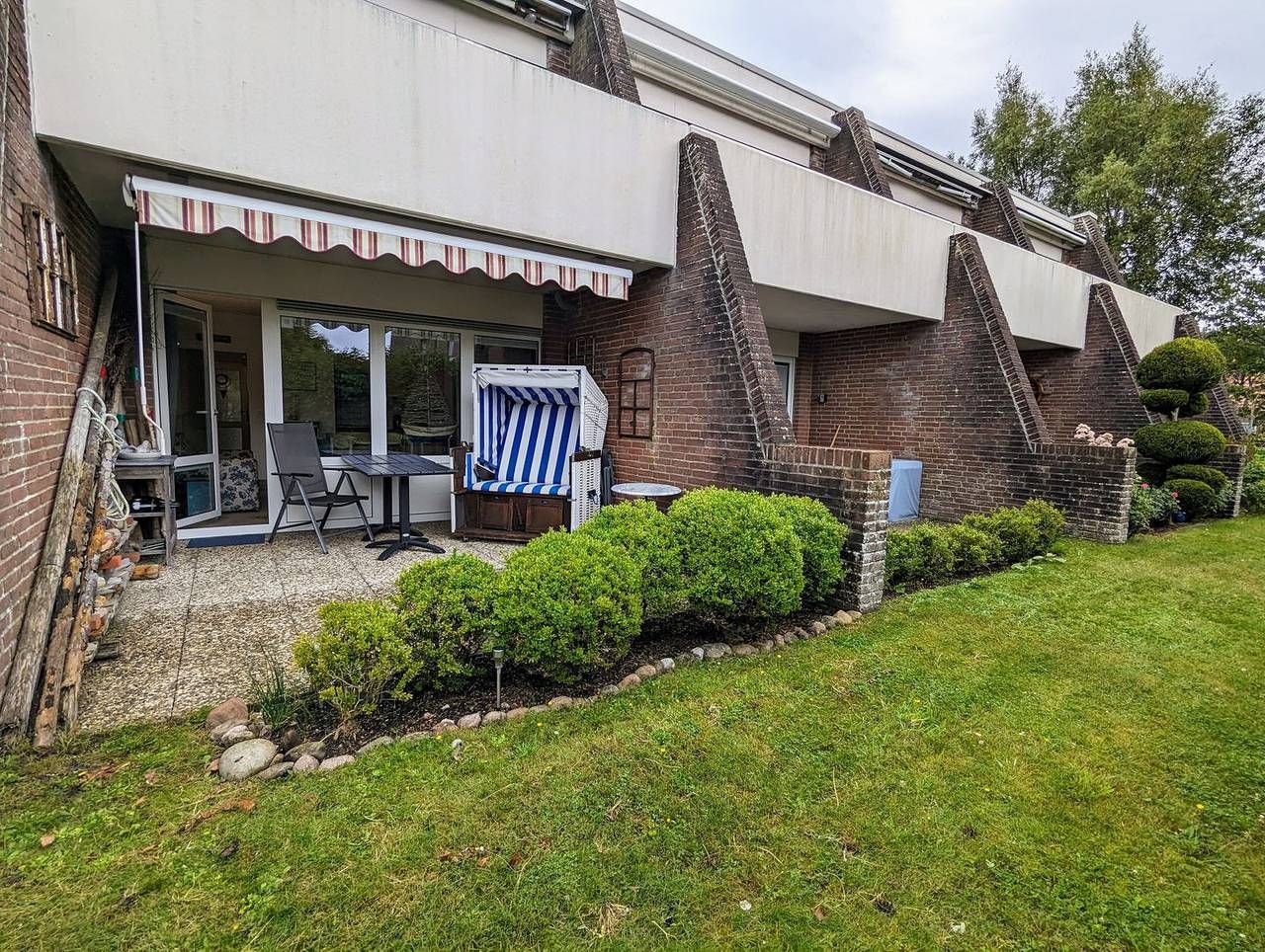 Die ebenerdige Nichtraucher-Wohnung befindet sich im Erdgeschoss eines ruhigen und doch zentral gelegenen Appartementhauses mit 12 Wohnungen. Die gemütliche und Allergiker-freundliche Wohnung (alle Fußböden sind mit Fliesen bzw. Laminat ausgestattet) ist für 2 Personen bestens geeignet. Sie ist hochwertig ausgestattet, hat eine große zum Teil überdachte Südterrasse (14 m2) mit eigenem Strandkorb, Gartenmöbeln und Markise, an die eine kleine ruhige Grünfläche anschließt, die ausschließlich von den Hausbewohnern genutzt wird. Vor dem Haus befindet sich ein Parkplatz mit eigenem PKW-Stellplatz. WLAN kann kostenlos genutzt werden. Haustiere sind nicht erlaubt. Die Wohnung ist in ein lichtdurchflutetes Wohnzimmer mit Küchenzeile, Schlafzimmer, Flur und Duschbad aufgeteilt. Im Wohnzimmer finden Sie eine Schlafcouch, einen Sessel, eine Sitzgruppe sowie Smart-TV, Bose-Box, einige Gesellschaftsspiele und eine interessante kleine Bibliothek. In der Küchenzeile befinden sich ein Ceranfeld, ein Kühlschrank mit Gefrierfach, eine Mikrowelle sowie Kleingeräte wie Wasserkocher, Kaffeemaschine, Toaster und Mixer. Einen kleinen Beistellbackofen können Sie bei Bedarf aufstellen. Der geräumige Flur beinhaltet einen Kleiderschrank mit eingebautem Tresor, eine großzügige Garderobe, ein Schuhregal und einen Spiegel. Das Duschbad besteht aus einer Dusche mit einem niedrigen Einstieg, Waschbecken, WC und Handtuchwärmer sowie großzügiger Abstellfläche im Spiegelschrank ebenso wie in einem weiteren Schrank und in einem Eckregal. Ein Fön liegt für Sie bereit. Im an den Flur angrenzenden Schlafzimmer befindet sich ein Doppelbett und 2 stumme Diener sowie eine hohe Kommode. Im gemeinschaftlichen Keller können Sie eine Waschmaschine und einen Trockner im Münzbetrieb nutzen. Im Privatkeller haben Sie Platz um Ihre Koffer abzustellen.
