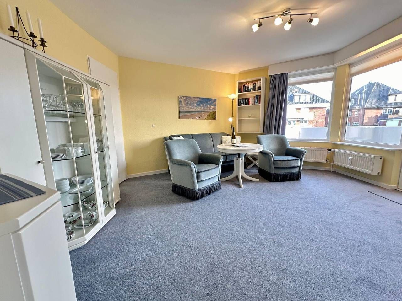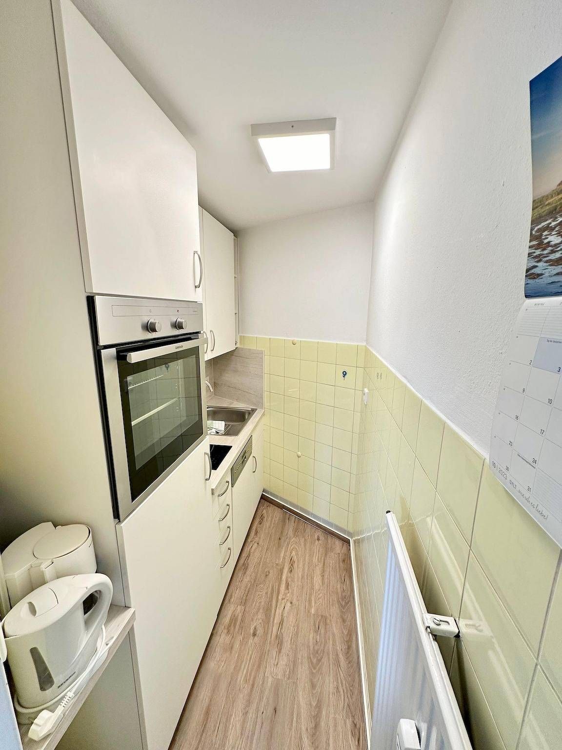 Herzlich Willkommen im Nordmarkhof – Ihrer gemütlichen Ferienwohnung in Westerland auf Sylt! Diese gepflegte Wohnanlage befindet sich in einer ruhigen und dennoch strandnahen Lage, ideal für entspannte Tage am Meer. In nur wenigen Gehminuten erreichen Sie sowohl das pulsierende Stadtzentrum von Westerland als auch die beeindruckende Küste mit dem rauschenden Meer. Die charmante 1-Zimmer-Ferienwohnung, ca. 36 m² groß, liegt im Hochparterre und bietet einen großen, sonnigen Ostbalkon – perfekt für entspannte Frühstücke im Freien oder ruhige Nachmittage mit einem Buch in der Hand. Das helle Wohn-Schlafzimmer ist mit einem praktischen Schrankbett ausgestattet, das sich auch einzeln ausklappen lässt, sowie einem gemütlichen Sitzbereich mit einer Couch und zwei Sesseln. Hier können Sie den Abend bei Kabel-TV oder einem gemütlichen Essen am bequemen Essplatz ausklingen lassen. Der Balkon lädt dazu ein, die frische Sylter Luft in vollen Zügen zu genießen. Die kleine, moderne Küche ist ideal für die Zubereitung von köstlichen Mahlzeiten ausgestattet und lädt Hobbyköche dazu ein, ihre kulinarischen Ideen umzusetzen. Das Badezimmer mit Dusche und WC bietet den Komfort, den Sie für Ihren Aufenthalt benötigen. Im Keller stehen Ihnen eine Waschmaschine und ein Wäschetrockner zur gemeinschaftlichen Nutzung (gegen Gebühr) zur Verfügung. Ein eigener Parkplatz direkt am Haus macht die An- und Abreise besonders bequem. Traumhafte Erholung und entspannte Tage am Strand sind Ihnen hier sicher – ob bei einem Spaziergang am Meer oder einem Bummel durch die Stadt, diese Wohnung bietet Ihnen den idealen Ausgangspunkt für unvergessliche Urlaubstage. Waschmaschine und Wäschetrockner im Keller, sind zur gemeinschaftlichen Benutzung vorhanden ( Extrakosten). Bitte beachten Sie, dass eine eventuell anfallende Kurabgabe nicht im Gesamtpreis enthalten ist. Diese ist vor Ort zu leisten.