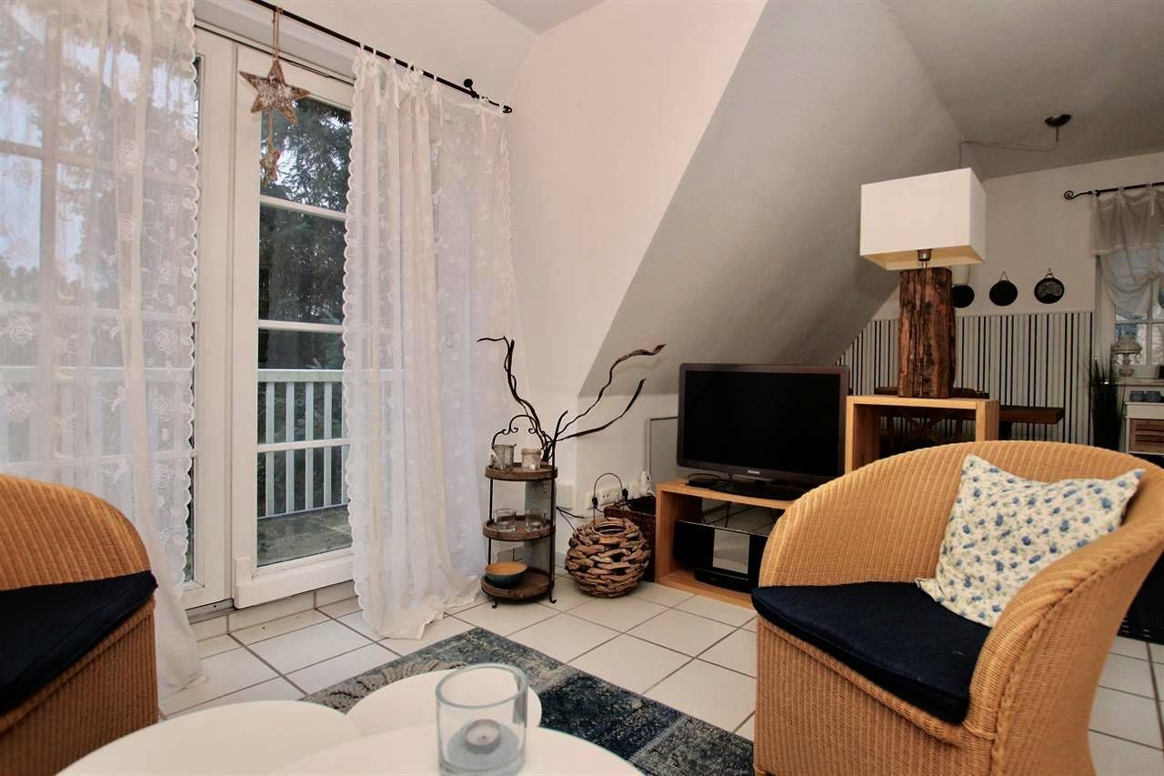 Im Wohnbereich finden Sie eine gemütliche Sitzecke mit Sofa und 2 Sesseln und ansprechenden Beistellmöbeln. Für die Unterhaltung stehen ein Fernsehgerät (Flachbildschirm/Smart-TV) mit Kabel-TV, Apple-TV und Blue-ray-Player...