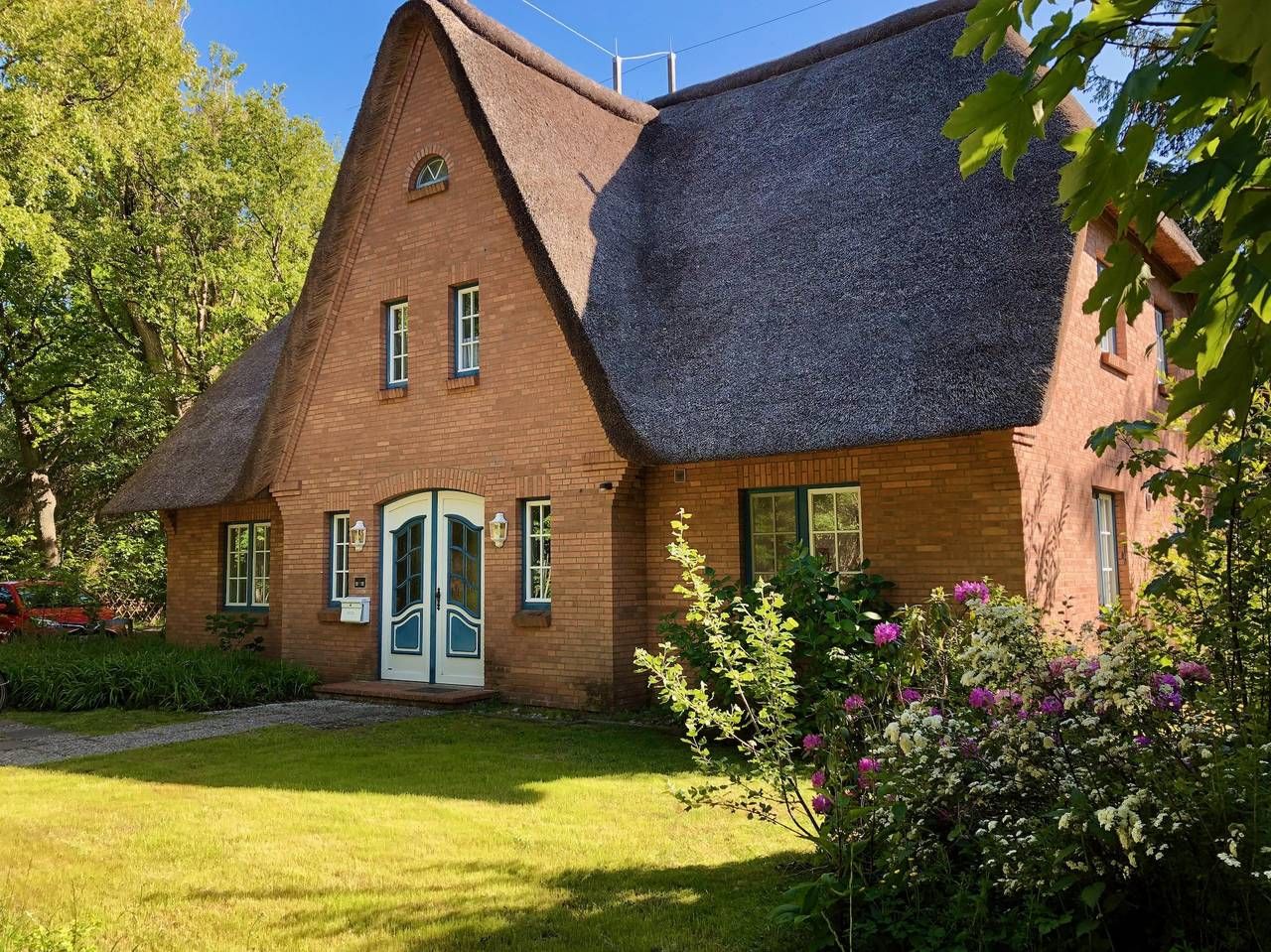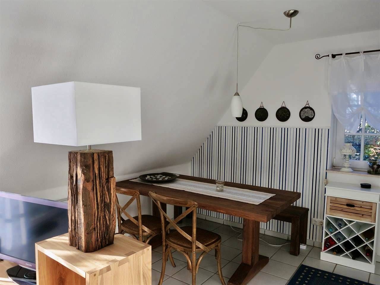 Im Wohnbereich finden Sie eine gemütliche Sitzecke mit Sofa und 2 Sesseln und ansprechenden Beistellmöbeln. Für die Unterhaltung stehen ein Fernsehgerät (Flachbildschirm/Smart-TV) mit Kabel-TV, Apple-TV und Blue-ray-Player sowie eine Musikanlage (Radio-, CD-, iPod/iPhone-, USB-Wiedergabe) zur Verfügung. Der vom Wohnbereich abgehende Balkon mit Tisch, Sitzbank und Stühlen im Friesenstil lädt zum Entspannen ein. Der Essbereich ist durch den großen Massivholztisch mit Sitzbank und 2 Stühlen geprägt. Zur Einbauküche im Landhausstil gehören ein Geschirrspüler, ein Herd mit Backofen und Induktions-/Ceranfeld, eine Dunstabzugshaube, ein Kühlschrank mit Gefrierfach, Mikrowelle, Kaffeemaschine und eine komplette und hochwertige Küchenausstattung. Das Schlafzimmer ist mit einem Doppelbett (1,80x2,00m), zwei Nachttischen und einem Kleiderschrank in massiver Eiche sowie einer Kommode und einem Stuhl möbliert. Duschbad, WC, Waschtisch mit Spiegelschrank, Handtuchwärmer, Waschmaschine mit integriertem Trockner befinden sich im Bad. Das Dachstudio ist durch eine offene Treppe vom Flur aus erreichbar. Neben einer kleinen Sitzecke mit Kabel-/Smart-TV gibt es dort als weitere Schlafgelegenheit zwei 2 Schubladenbetten aus Massivholz Kiefer. Die Wohnung wird über moderne Infrarotheizkörper beheizt, die ein gesundes Raumklima verbreiten. In der gesamten Wohnung steht kostenfrei WLan zur Verfügung. nordseePur finden Sie in dieser gemütlichen Ferienwohnung unter Reet, nur wenige Meter vom Böhler Deich und den Salzwiesen entfernt. Das Grundstück grenzt direkt an den Nationalpark Wattenmeer. Der Strand ist zu Fuß zu erreichen. Die Wohnung liegt im Obergeschoss eines im Friesenstil erbauten Reetdachhauses mit insgesamt vier Wohneinheiten. Auf 49 qm befinden sich der Wohn-/Essbereich mit offener Küche, das Schlafzimmer und das Bad. Vom Flur aus gelangt man in das wohnlich ausgebaute Dachstudio mit gemütlicher Sitzecke und einem weiteren Schlafbereich. Die Einrichtung der Wohnung ist vom skandinavischen Landhausstil inspiriert. Neben den typischen Weiß- und Blautönen spielen natürliche Materialien und liebevoll ausgewählte Accessoires eine wesentliche Rolle. Ein uriger Holztisch bietet Platz für gemütliche Mahlzeiten - zubereitet in der neuen und hochwertig ausgestatteten Landhausküche - und ist auch der ideale Ort für kurzweilige Spieleabende. In der lichtdurchfluteten Sitzecke lässt es sich mit einem guten Buch, beim Fernsehen oder schöner Musik entspannen. Vom angrenzenden Balkon blickt man direkt ins Grüne, hört die Möwen rufen und kann bei gutem Wetter fast den ganzen Tag über die Sonne genießen. Bettwäsche und Handtücher sind im Preis enthalten. Die Unterkunft ist am Anreisetag ab 15:00 Uhr bezugsfertig und steht Ihnen am Abreisetag bis 10:00 Uhr zur Verfügung.