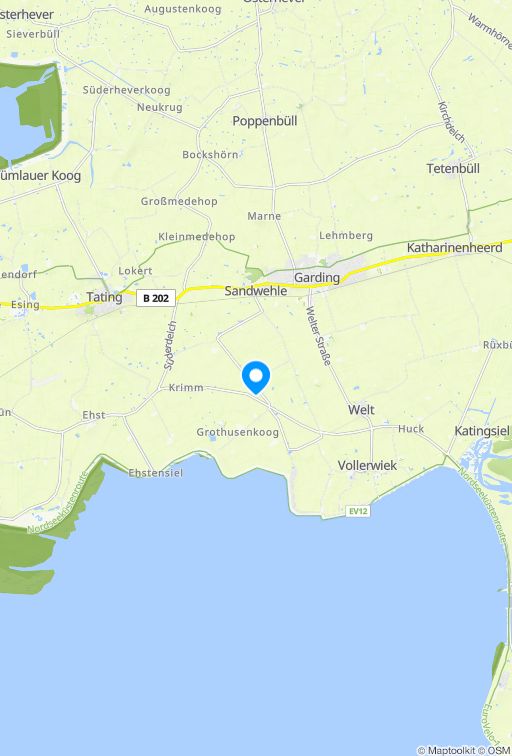 Die romantische Reetdachhaushälfte bietet mit 3 Schlafzimmern und einem großzügigen Wohn- und Essraum genügend Freiraum für 6 Personen. Ferienhaushälfte, ca. 110 qm , 6 Personen, WLAN Erdgeschoss: großer Wohn-und Essbereich mit Sofagarnitur, SAT-TV, Kamin und Essbereich Küche mit Cerankochfeld, Geschirrspülmaschine, komplett ausgestattet Duschbad Gäste-WC Obergeschoss: Schlafzimmer mit Doppelbett, freistehende romantische Badewanne Schlafzimmer mit Etagenbett Schlafzimmer mit Doppelbett Terrasse vor dem Haus Den Gästen steht ein Terrasse mit Gartenmöbeln zur Verfügung. Parkplätze befinden sich neben dem Haus. Die romantische Reetdachhaushälfte bietet mit 3 Schlafzimmern und einem großzügigen Wohn- und Essraum genügend Freiraum für 6 Personen. Die Einrichtung im modernen Landhausstil, Kamin und möblierter Terrasse runden das Urlaubsflair ab. Ein besonderes Highlight ist die freistehende Badewanne im Schlafzimmer Die Villa Kunterbunt liegt idyllisch und ruhig im grünen Marschland. Das Eider-Sperrwerk sorgt in ca. 8 km Entfernung für Schutz vor Winterstürmen, das Seebad St. Peter- Ording ist in ca. 12 km zu erreichen. Das Meer mit einer bewachten Badestelle in Vollerwiek nur etwa 4km entfernt. Der Ort Garding mit seinen Einkaufsmöglichkeiten, Restaurants, Cafe , Wochenmarkt und verschiedenen Veranstaltungen ist ebenfalls nur ca. 4km entfernt. Die weiten Sandstrände von St. Peter- Ording erreichen Sie nach nur ca. 10 Minuten Autofahrt. Zur DLRG- bewachten Badestelle in Vollerwiek,mit Duschen und einem Imbiss, sind es nur 4km. Sie ist ohne Probleme auch mit dem Fahrrad zu erreichen Handtuchpaket und Bettwäsche gegen Gebühr mietbar. Da Sie in einem Reetdachhaus Urlaub machen, ist es leider nicht möglich vor dem Haus zu grillen. Wir bitten um Ihr Verständnis. Die Anreise ist zwischen 15.00-17.00 Uhr möglich (spätere Anreisen oder Anreise mit dem Zug bitte spätestens 2-3 Tage vor Anreise mit dem Büro des Urlaubsservice Eiderstedt besprechen). Die Ferienunterkunft steht Ihnen am Abreisetag bis 10.00 Uhr zur Verfügung. Die Schlüsselübergabe erfolgt im Büro des Urlaubsservice Eiderstedt. Bitte melden Sie sich telefonisch im Büro, wenn sich die Ankunft durch einen Stau verzögert, da sonst das Büro ggf. nicht mehr besetzt ist.