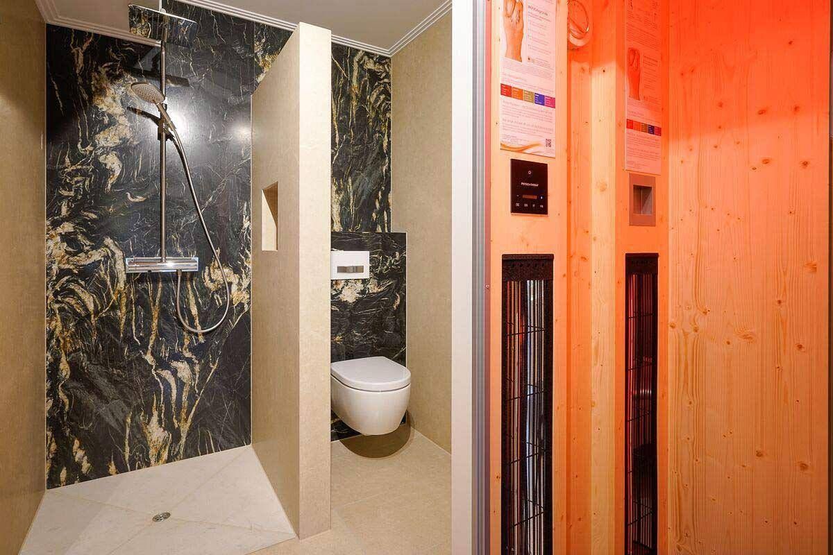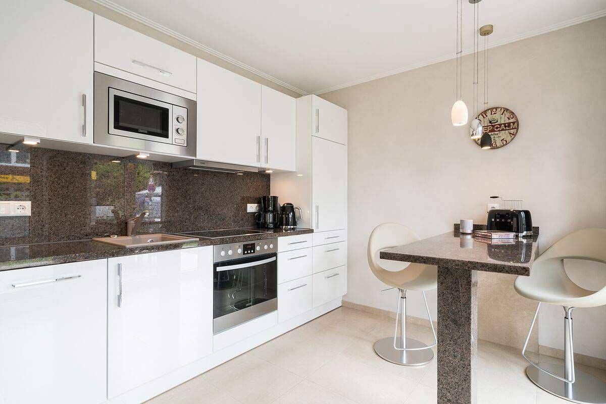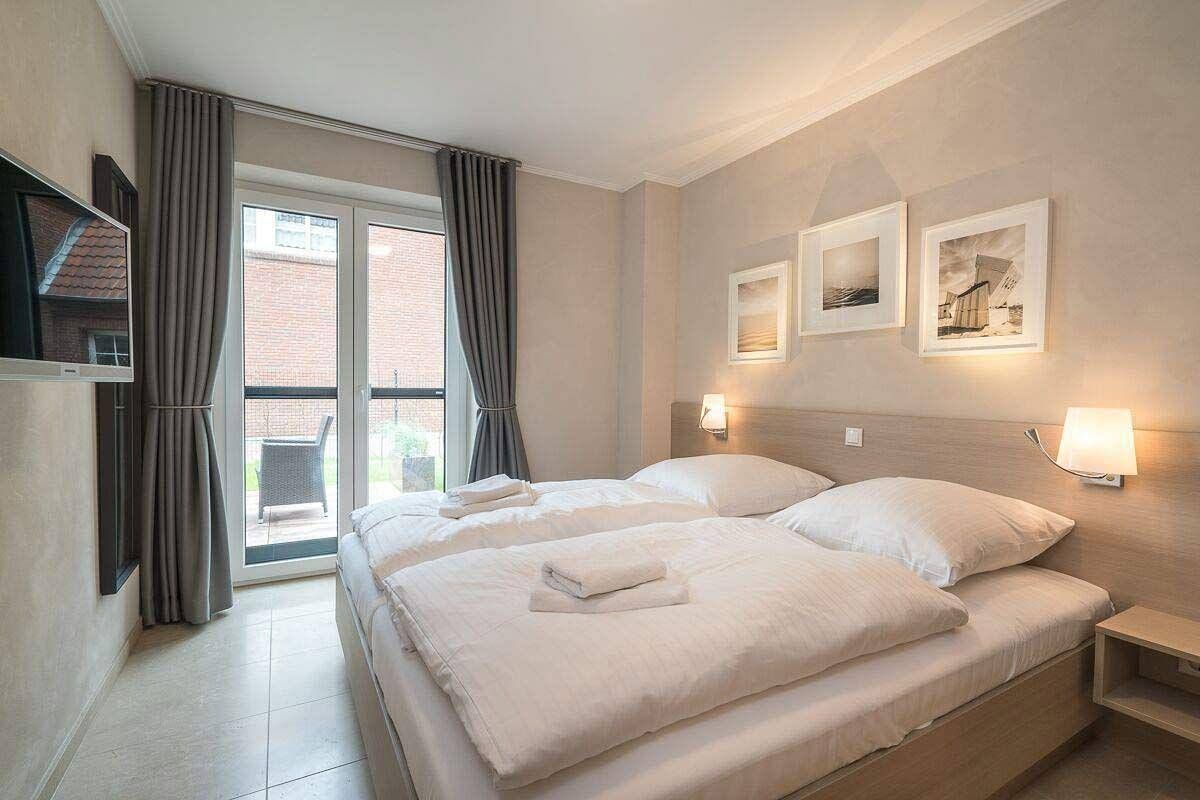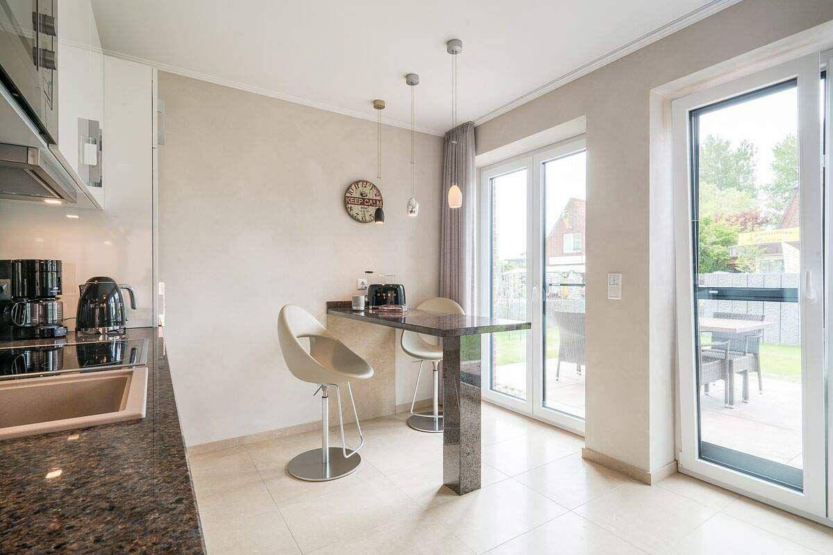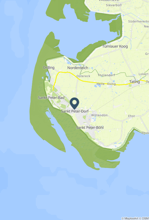 Erholung pur in zentraler Lage von St.Peter-Dorf Die Komfort-Ferienwohnung Oase im Dorf 3 bietet mit ihren 70qm und 2 Terrassen Raum für bis zu 4 Personen mit Hund. Fußboden aus Naturstein, Insektenschutzgitter, Verdunkelungsmöglichkeiten an allen Fenstern, Safe, Flur mit Garderobe, Wohn-Esszimmer mit 2 Terrassenzugängen, Sitzbereich mit Ledersofa, Relaxsessel samt Fußhocker und Couchtisch, Kabel-TV, Flat-TV, kostenfreier Internetzugang (WLAN), Internetradio, Essbereich mit Tisch und 4 Stühlen, Kinderhochstuhl zubuchbar, Bartisch mit 2 Hockern, offene Küche mit kompletter Ausstattung, 2 separate Schlafzimmer mit Doppelbetten, Kleiderschränken und zusätzlichen Flat-TVs, Babyreisebett auf Anfrage, Tageslichtbad mit ebenerdiger Regendusche, Infrarotkabine, Handtuchheizung, Waschbecken, Spiegel, Kosmetikspiegel, Fön und WC, Gäste-WC. Waschmaschine und Trockner kostenfrei nutzbar. Die Wäschepakete sind hier einmalig inklusive, weitere zubuchbar. Die 2 Terrassen der Wohnung sind möbliert (Tisch mit Stühlen, Polsterauflagen, Sonnenliege) und eine ist ausgestattet mit einer Markise. Ihre Fahrräder können Sie in einem abschließbaren Raum unterbringen. Dieser befindet sich im Carport, welches zudem einen Stellplatz für Ihr Auto bietet. Die 2 gepflasterten Terrassen der Wohnung sind möbliert. Es gibt einen Tisch mit Stühlen, Polsterauflagen und eine Sonnenliege. Eine der Terrassen ist mit einer Markise ausgestattet. Ihre Fahrräder können Sie in einem abschließbaren Raum unterbringen. Dieser befindet sich im Carport, welches zudem einen Stellplatz für Ihr Auto bietet. Die Unterkunft befindet sich in St.Peter-Ording im Ortsteil 'Dorf'. In bester Lage gelegen in einem atrraktiven Neubau sind hier im Urlaub kurze Wege garantiert. Der Bäcker befindet sich in unmittelbarer Nähe, ebenso der Marktplatz und der historische Ortskern. Über den Binnendeich gelangen Sie durch die wünderschöne Dünenlandschaft zum Deich und zum Südstrand.