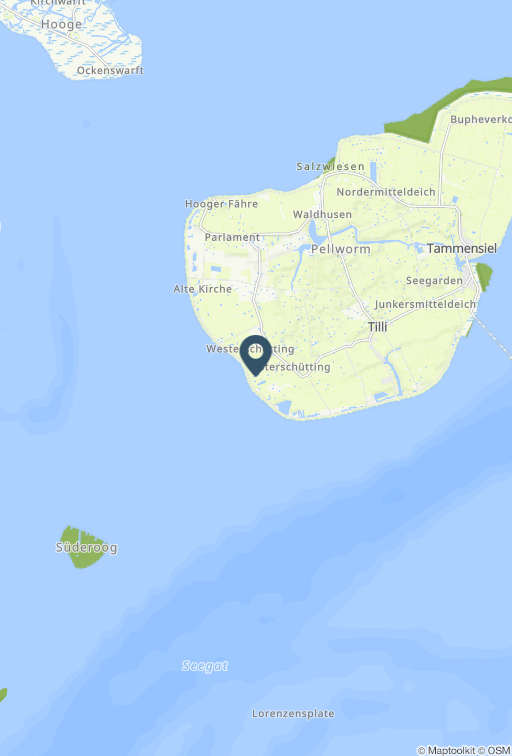 Die Vermietung der Strandkörbe erfolgt im Restaurant Kirchspielskrug nahe der Alten Kirche. Direkt angrenzend befindet sich ein Hundestrand, auf dem sich Vierbeiner nach Herzenslust austoben können.