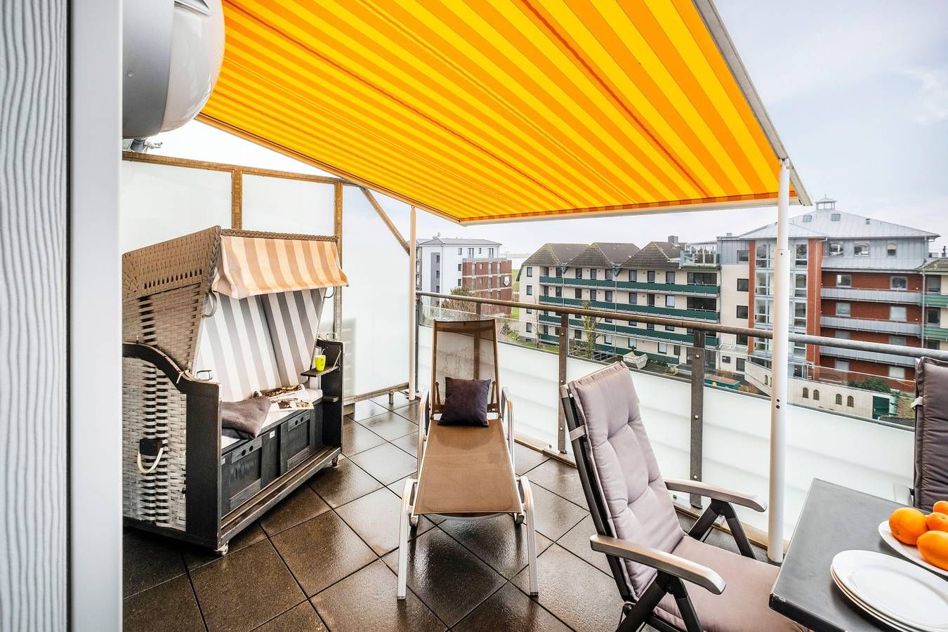 Das Appartement 4.1 ist ein Penthouse-Appartement mit einer großen Dachterrasse und wundervollem Blick! Es befindet sich im IV. Obergeschoss (Dachgeschoss) und ist elegant und modern eingerichtet. Das Appartement 4.1 ist ein Penthouse-Appartement mit einer großen Dachterrasse und wundervollem Blick! Es befindet sich im IV. Obergeschoss (Dachgeschoss) und ist elegant und modern eingerichtet. Das erste Schlafzimmer ist mit Doppelbett (180 x 200 cm) und das zweite Schlafzimmer mit Doppelbett in der Größe 140 x 200 cm ausgestattet. Jalousien sorgen für eine behagliche Atmosphäre. Dem Appartement ist ein PKW- Stellplatz direkt am Haus zugehörig. Fahrradraum, abschließbar. Alle unsere Appartements sind Nicht-Raucher-Appartements. Allgemeine Ausstattung: Küche: Backofen, Cerankochfeld, Mikrowelle, Geschirrspüler, Kühl- Gefrierkombination, Kaffeemaschine, Wasserkocher, Toaster Technik: 3 x TV- Sat, Safe, WLAN kostenfrei, HIFI- Anlage Sanitär: Duschbad, Handtuchheizung, Haar-Föhn, Gäste-WC Balkon: Balkonmöbel, Sonnenschirm - eigener PKW- Stellplatz Tolle Lage, unweit vom Strand und der Innenstadt. Bitte beachten Sie, dass eine eventuell anfallende Kurabgabe nicht im Gesamtpreis enthalten ist. Diese ist vor Ort zu leisten.