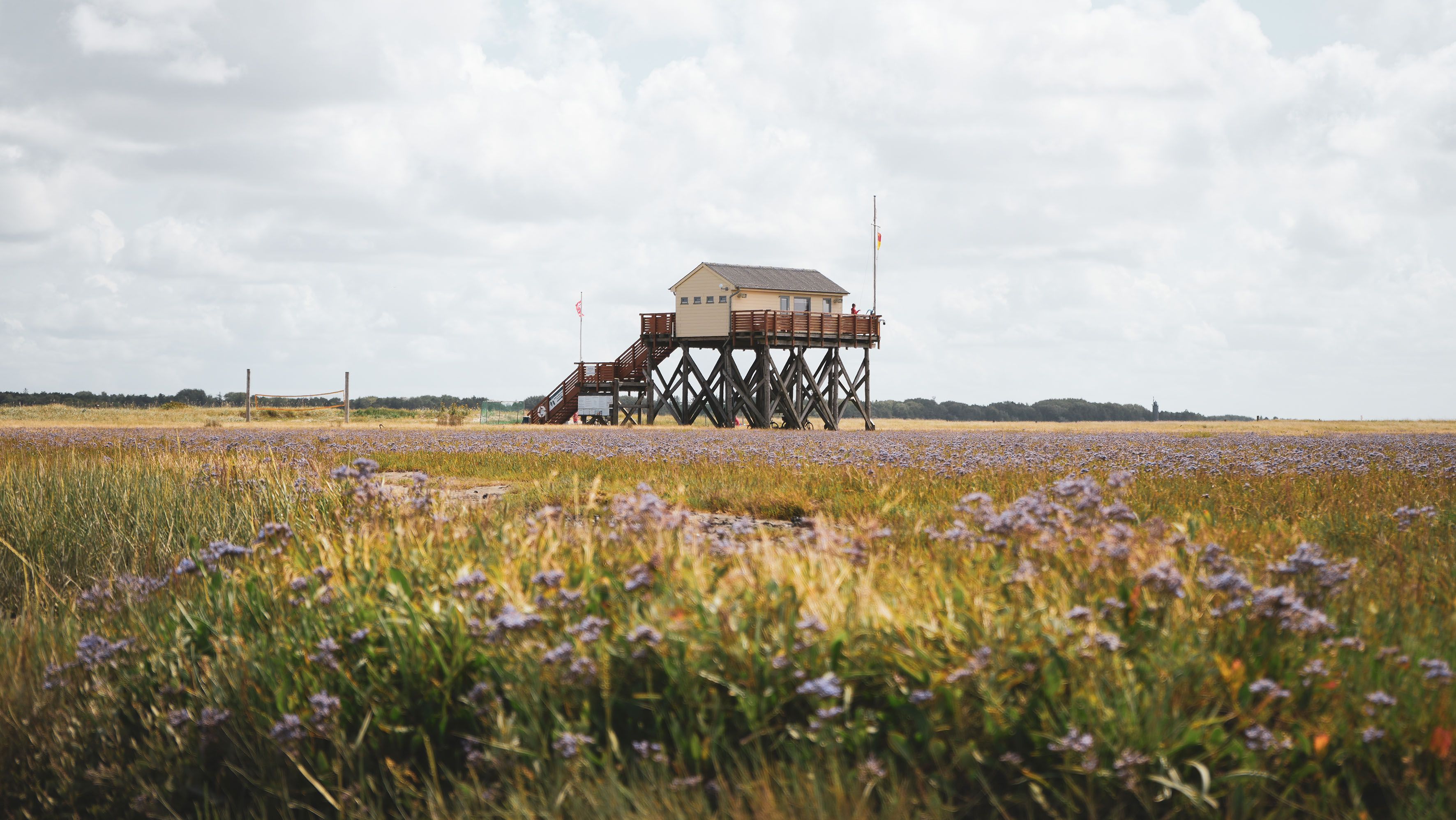 In den Pfahlbau-Restaurants von St. Peter-Ording genießt du leckere Speisen und Drinks in bis zu sieben Metern Höhe – mit einmaligem Blick auf Nordsee, Strand und Wattenmeer.