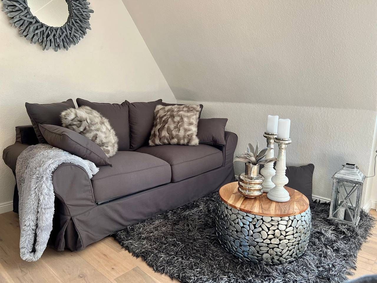 Das Raantem Hüs Raantem Hüs App.12 in Rantum bietet Ihnen auf 40 m² eine komfortable Möglichkeit, um einen erholsamen Aufenthalt auf Sylt zu verbringen. Die modern eingerichtete Unterkunft umfasst insgesamt zwei Zimmer, davon ein separates Schlafzimmer, das ideal auf die Unterbringung von bis zu zwei Personen ausgelegt ist. Das Badezimmer ist funktional ausgestattet und verfügt unter anderem über einen Haartrockner. Die Küche dieser Unterkunft überzeugt mit einer umfassenden Ausstattung und bietet alles, was Sie für die Selbstversorgung benötigen. Neben einem 4-Platten-Herd stehen Ihnen ein Kühlschrank mit Gefrierfach, eine Spülmaschine sowie verschiedene Elektrogeräte wie Kaffeemaschine, Espressomaschine (Kaffeevollautomat), Toaster und Wasserkocher zur Verfügung. Geschirr, Besteck und Küchenutensilien sind für Ihren täglichen Bedarf vorhanden. Auch ein Abfalleimer ist Teil des Inventars. Im Wohnbereich können Sie sich an einem Esstisch zu gemeinsamen Mahlzeiten zusammensetzen oder auf dem Sofa entspannen. Für Ihre Unterhaltung steht ein Fernseher zur Verfügung, sodass Sie auch an gemütlichen Abenden nicht auf Ihre Lieblingssendungen verzichten müssen. Die Unterkunft wird als Nichtraucherobjekt geführt, wodurch sie sich besonders für Gäste eignet, die Wert auf eine rauchfreie Umgebung legen. Waschmaschine, Trockner und Staubsauger stehen für Sie bereit, wobei sowohl Waschmaschine als auch Trockner gemeinschaftlich genutzt werden. So können Sie auch längere Aufenthalte ohne Einschränkung genießen. Die Heizung sorgt ganzjährig für angenehme Temperaturen in den Räumen. Ein weiterer Vorteil ist der private Parkplatz direkt an der Unterkunft, der Ihnen das Suchen nach einer Parkmöglichkeit erspart und besonders praktisch für Anreisende mit dem Auto ist. Die Lage des Appartements in Rantum ist ein überzeugendes Argument für Urlauber. In weniger als 600 Metern Entfernung gelangen Sie sowohl zum Meer als auch zum Strand, sodass sich die Unterkunft ausgezeichnet für Erholungssuchende und Naturliebhaber eignet. Auch für das leibliche Wohl ist gesorgt: Restaurants liegen nur etwa 500 Meter entfernt und eine Einkaufsmöglichkeit finden Sie schon nach etwa 90 Metern. Für Tagesausflüge oder die Anreise per Flugzeug liegt der nächstgelegene Flughafen 10.000 Meter entfernt. Das Stadtzentrum erreichen Sie in 7.000 Metern Entfernung. Haustiere sind auf Anfrage erlaubt, sodass Sie je nach Rücksprache auch Ihren vierbeinigen Begleiter mitbringen können. Insgesamt bietet das Raantem Hüs Raantem Hüs App.12 eine moderne, vollständig ausgestattete Unterkunft in ruhiger, strandnaher Lage mit ansprechender Infrastruktur. Informieren Sie sich gern näher über einen möglichen Aufenthalt in dieser gemütlichen Umgebung.