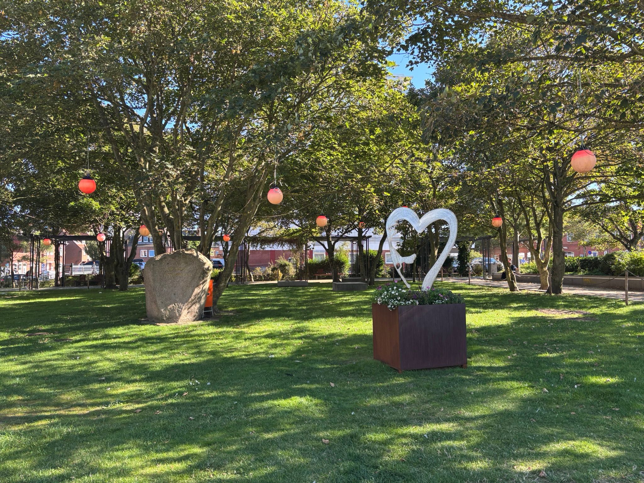 Die grüne Fläche gegenüber des zentral in Westerland gelegenen Rathauses lädt zu einer Verschnaufpause auf einer der zahlreichen Sitzmöglichkeiten ein. Besonders beliebt ist der Park für die ersten Fotos der frisch getrauten Paare, die gerade aus dem Standesamt kommen.