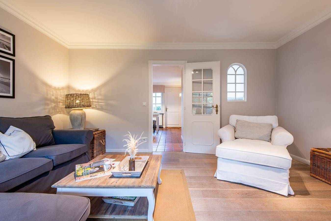 IDYLLISCHES FRIESENHAUS IN KEITUM – GENIESSEN SIE RUHIGE UND ERHOLSAME URLAUBSTAGE Diese exklusive 3-Zimmer-Ferienwohnung im charmanten 'Haus Alster' bietet auf zwei Etagen ein behagliches Ambiente und modernen Komfort für bis zu 4 Personen. Auf einer großzügigen Wohnfläche von ca. 87 qm genießen Sie stilvolles Design in ruhiger Lage nahe des Keitumer Wattenmeers. Der perfekte Rückzugsort, um die Weite der Landschaft zu genießen und die friesische Atmosphäre auf Sylt zu erleben. **WOHNEN UND ENTSPANNEN** Der lichtdurchflutete Wohnbereich lädt mit einer stilvollen und gemütlichen Einrichtung zum Entspannen ein. Hier können Sie nach einem ausgiebigen Spaziergang am Wattenmeer auf dem Sofa oder im großen Sessel entspannen und Ihre Lieblingsserien über das internetfähige TV genießen. Der direkte Zugang zur möblierten Westterrasse mit Strandkorb ermöglicht es Ihnen, die Sonne und die friesische Brise in vollen Zügen zu genießen. **GENUSS IN DER KÜCHE** In der separaten, modernen Küche finden Sie alles, was Sie zum Zubereiten kulinarischer Köstlichkeiten benötigen. Mit Cerankochfeld, Geschirrspüler, Backofen und Nespresso-Maschine steht Ihnen hier jede Ausstattung zur Verfügung. Der angrenzende Essbereich mit einem großen Esstisch bietet Platz für gemeinsame Mahlzeiten und gesellige Stunden. **SCHLAFZIMMER UND BAD** Die zwei Schlafzimmer sind gemütlich und liebevoll eingerichtet. Das Hauptschlafzimmer bietet ein großzügiges Doppelbett (2x 100x200 cm), eine Kommode und eine Ankleidekammer, die ausreichend Stauraum bietet. Das zweite Schlafzimmer ist mit zwei Einzelbetten (je 90x190 cm) ausgestattet und in maritimem Stil dekoriert, sodass das echte Sylt-Gefühl aufkommt. Das moderne Badezimmer verfügt über eine große Dusche, WC, Doppelwaschbecken, Handtuchwärmer und Fön und sorgt für einen komfortablen Start in den Tag. Ein Gäste-WC befindet sich im Eingangsbereich und bietet zusätzlichen Komfort. **RUHE UND NATUR AUF IHRER PRIVATEN TERRASSE** Genießen Sie die Ruhe der umliegenden Natur auf der möblierten Terrasse mit Westausrichtung. Die Terrasse ist mit einem Strandkorb ausgestattet und bietet den idealen Platz, um nach einem Tag auf der Insel zu entspannen und die Abendsonne zu genießen. **BESTE LAGE IN KEITUM** Die Wohnung liegt in unmittelbarer Nähe zum Keitumer Wattenmeer, nur wenige Minuten von Einkaufsmöglichkeiten und einem Bäcker entfernt. Die charmante Umgebung lädt zu Erkundungstouren durch das grüne Keitum ein, wo Sie traditionelle Reetdachhäuser, kleine Cafés und Boutiquen entdecken können. **PRAKTISCHE EXTRAS** Für Ihren Komfort ist ein privater PKW-Stellplatz vorhanden, und WLAN steht Ihnen im Haus zur Verfügung (ohne Gewähr). Diese Wohnung ist besonders hundefreundlich, sodass Sie Ihre Urlaubstage gemeinsam mit Ihrem Vierbeiner verbringen können.